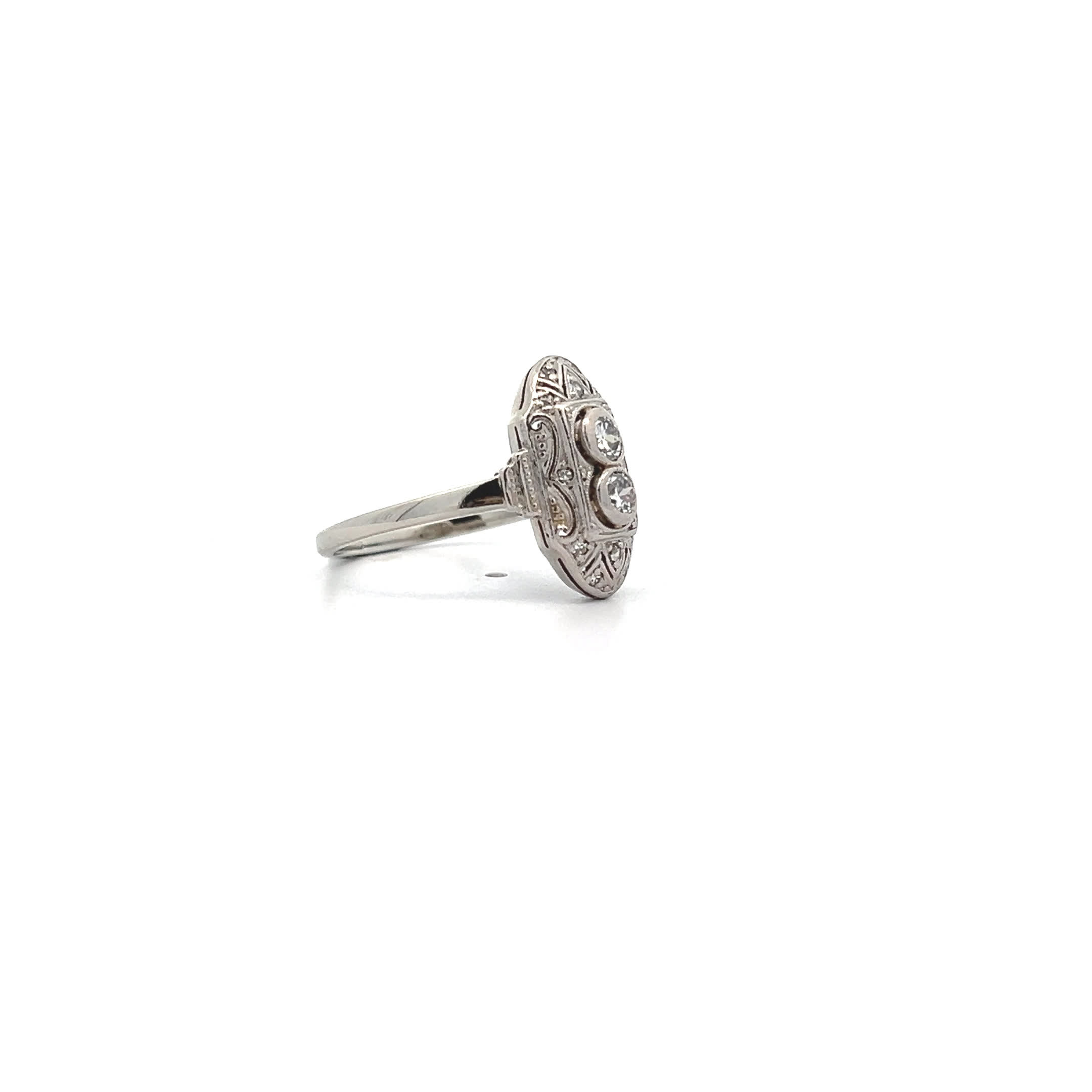 Der "Antikglanz" trägt die Seele vergangener Epochen in sich – ein seltener Schatz aus 590er Weißgold, dessen Altschliff-Diamanten wie Sterne aus einer anderen Zeit funkeln. Spüren Sie die Geschichte in seinen Facetten, die Eleganz vergangener Generationen, die nun in Ihren Händen zu neuem Leben erwacht. Ein Ring, der nicht nur schmückt, sondern Erinnerungen schafft und Träume von zeitloser Romantik wahr werden lässt.