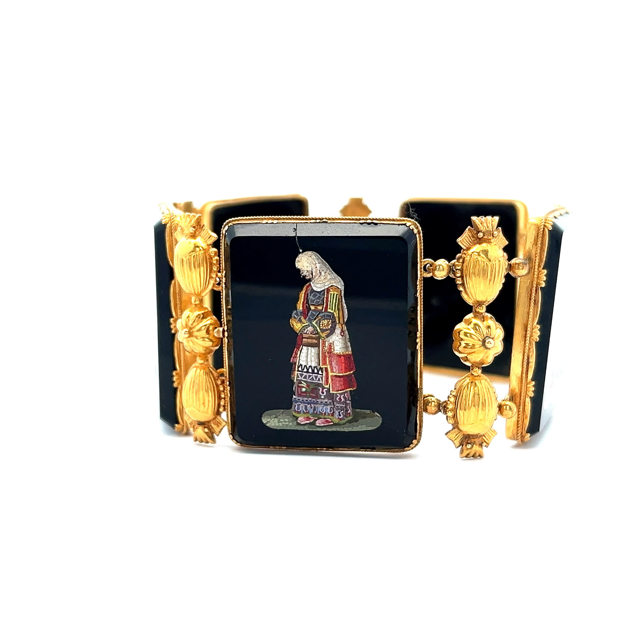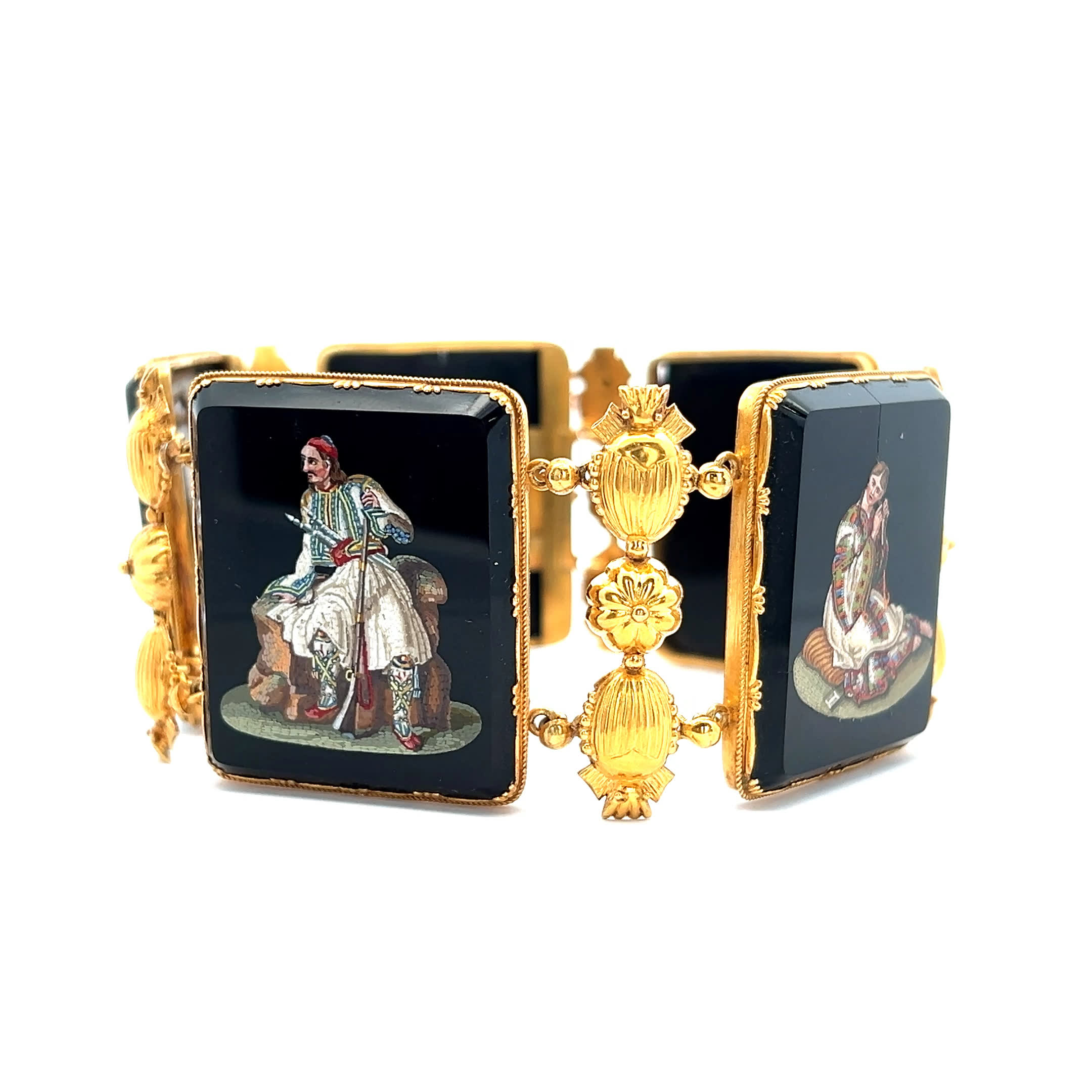 Antikes Armband 14 Karat Gelbgold mit Mikro Mosaik