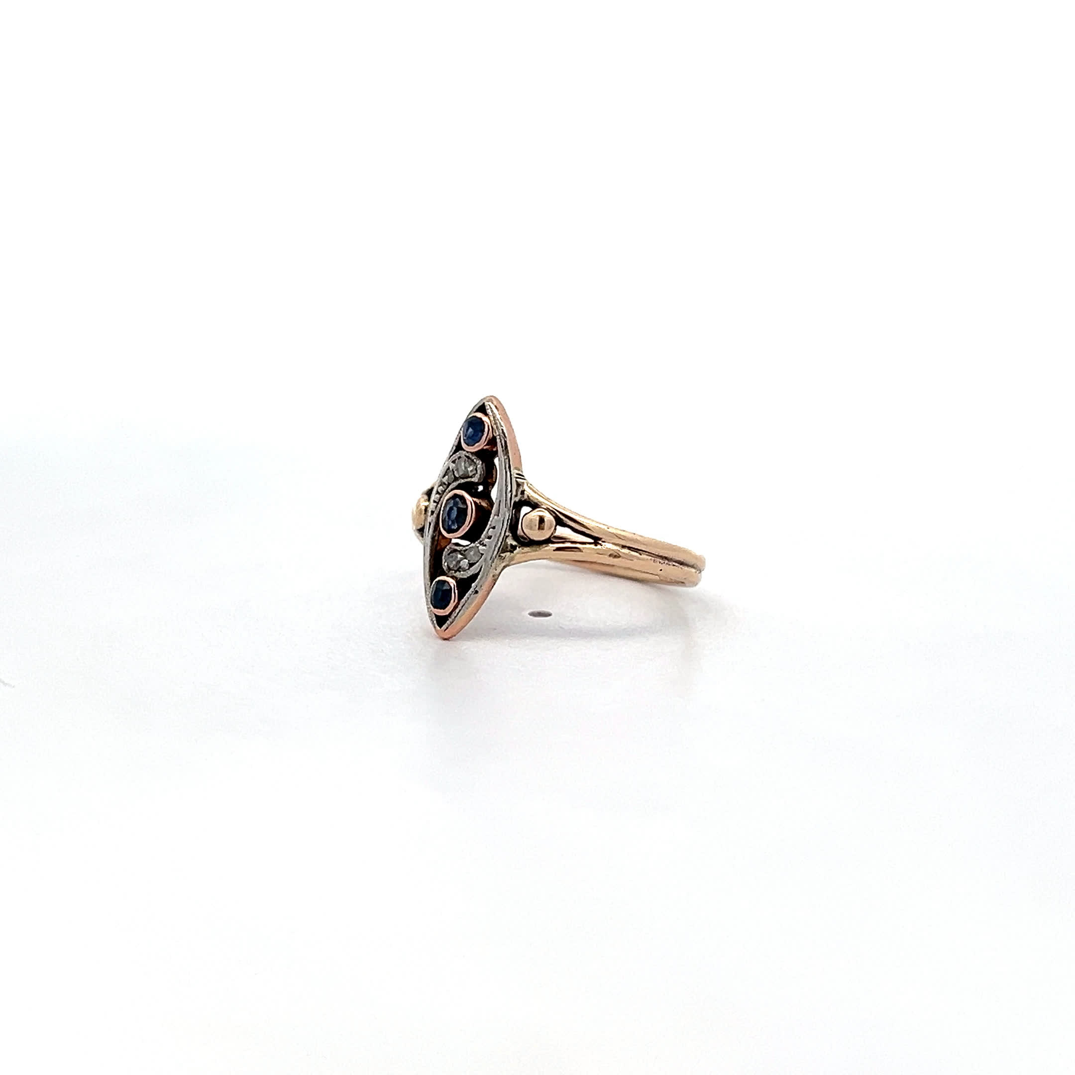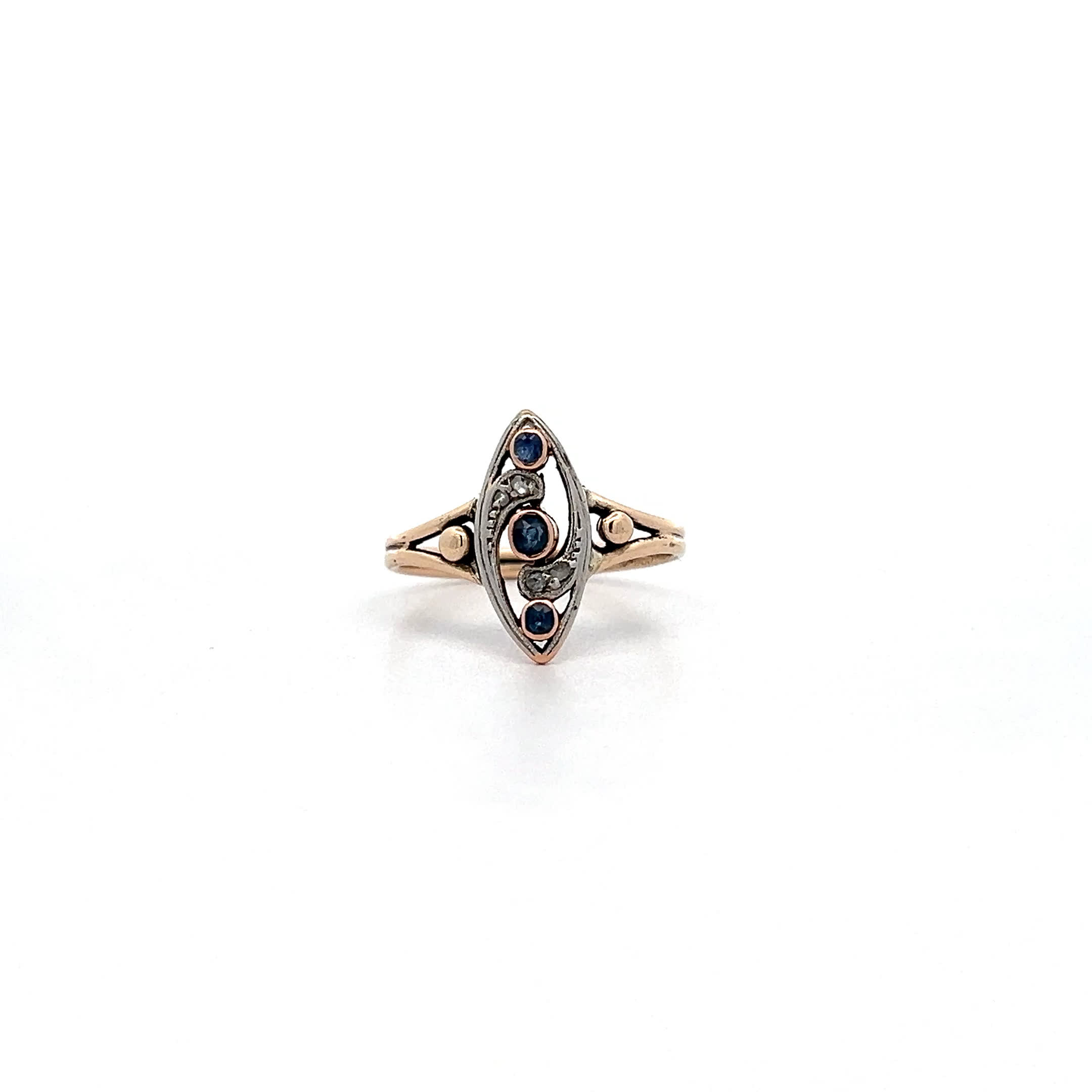 Antiker Ring aus 14kt Gelbgold mit Saphiren