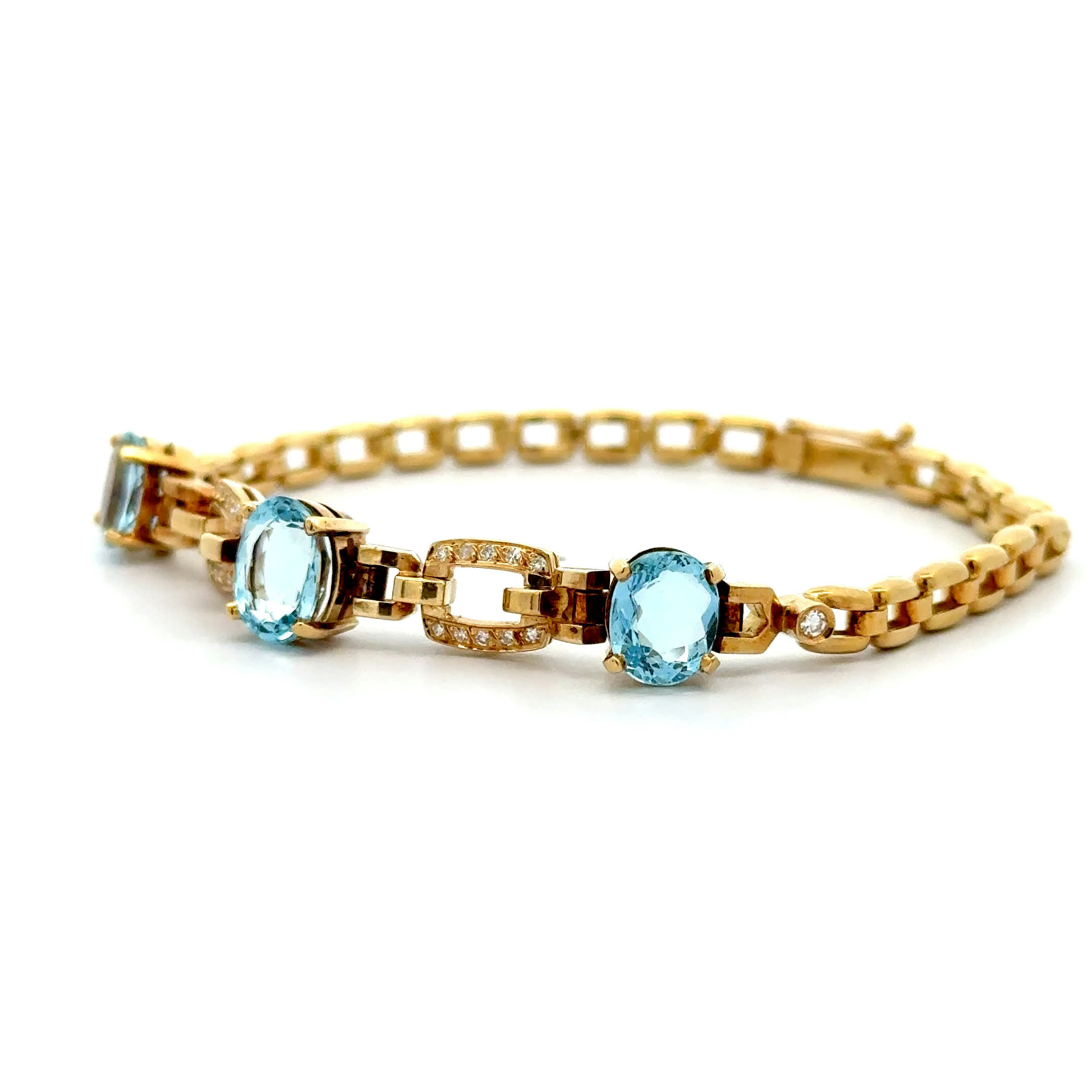 Wie Meereswellen, die sanft das Ufer berühren – so schmiegt sich "Aqua Dream" an Ihr Handgelenk und lässt Sie jeden Moment in einem Traum aus 18 Karat Gold und funkelnden Aquamarinen erleben. Die zarten Diamanten fangen das Licht ein wie Sonnenstrahlen auf kristallklarem Wasser, während das warme Gold Ihre Haut küsst und Ihnen das Gefühl schenkt, dass dieser Augenblick für die Ewigkeit bestimmt ist. Ein Armband, das nicht nur getragen wird, sondern das Ihre schönsten Erinnerungen in sich trägt und zu neuen, unvergesslichen Momenten einlädt.
