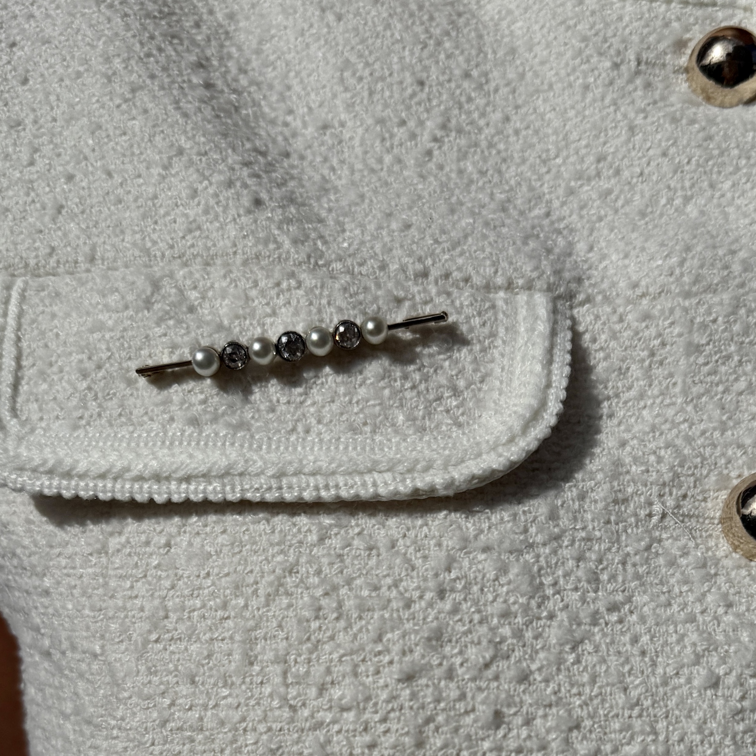 Ein Hauch von Glamour aus den goldenen Zwanzigern – diese zarte Stabbrosche trägt die Träume vergangener Tage in sich. Wie ein funkelnder Lichtstrahl vereint sie zeitlose Diamanten im romantischen Altschliff mit schimmernden Perlen zu einem Gedicht aus Gold. Sie flüstert von eleganten Soiréen und unvergesslichen Momenten, die nur darauf warten, von Ihnen neu geschrieben zu werden.