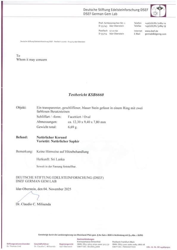 Der "Blue Symphony" Vintage Ring in 18 Karat Weißgold ist wie ein Gedicht aus Licht und Tiefe – der majestätische Saphir in seinem tiefen Blau erzählt von ewigen Momenten und unendlicher Verbundenheit. Umrahmt von funkelnden Diamanten wird er zum stummen Zeugen Ihrer kostbarsten Augenblicke, ein Schatz, der Generationen überdauert. Spüren Sie, wie er an Ihrem Finger nicht nur Eleganz verleiht, sondern Träume wahr werden lässt.