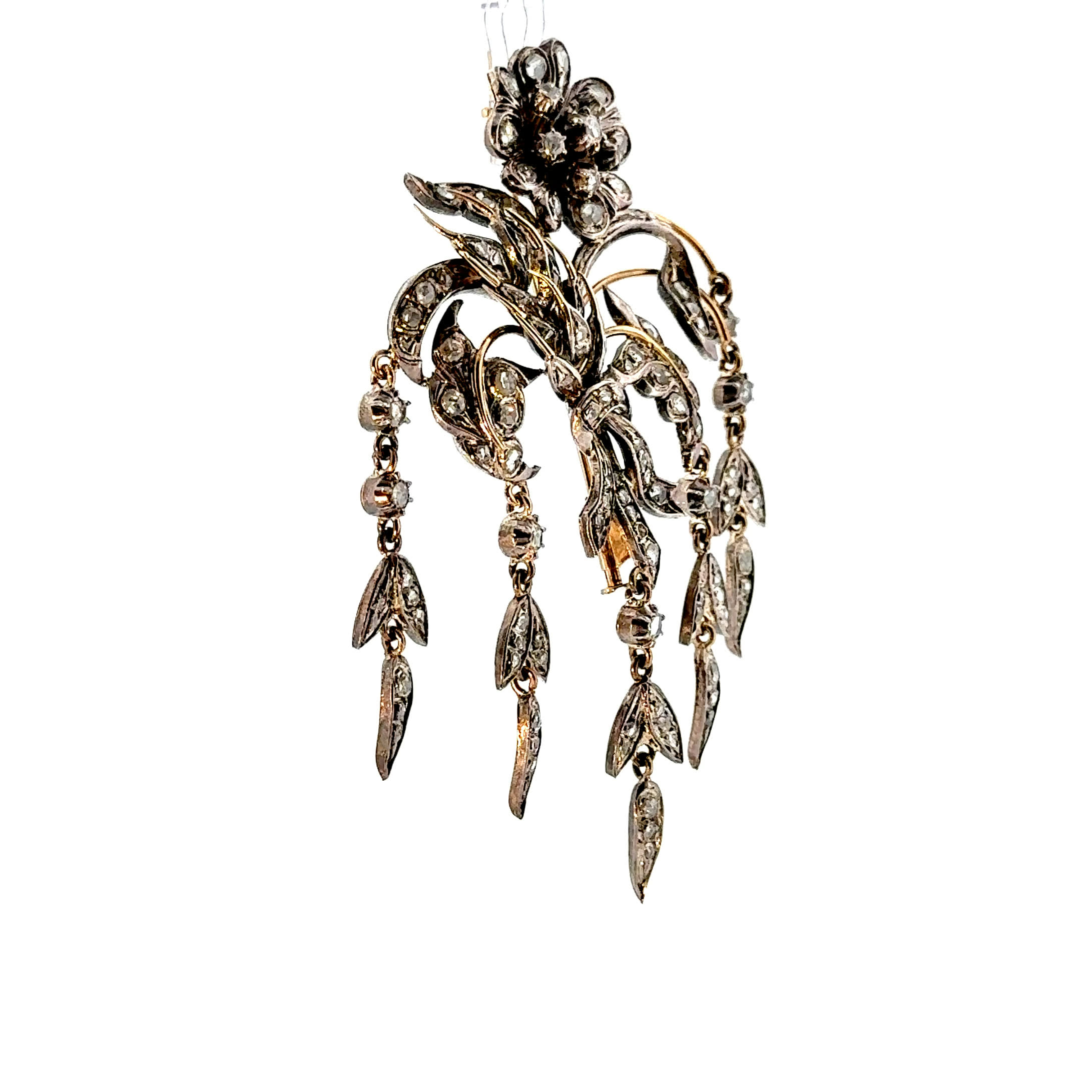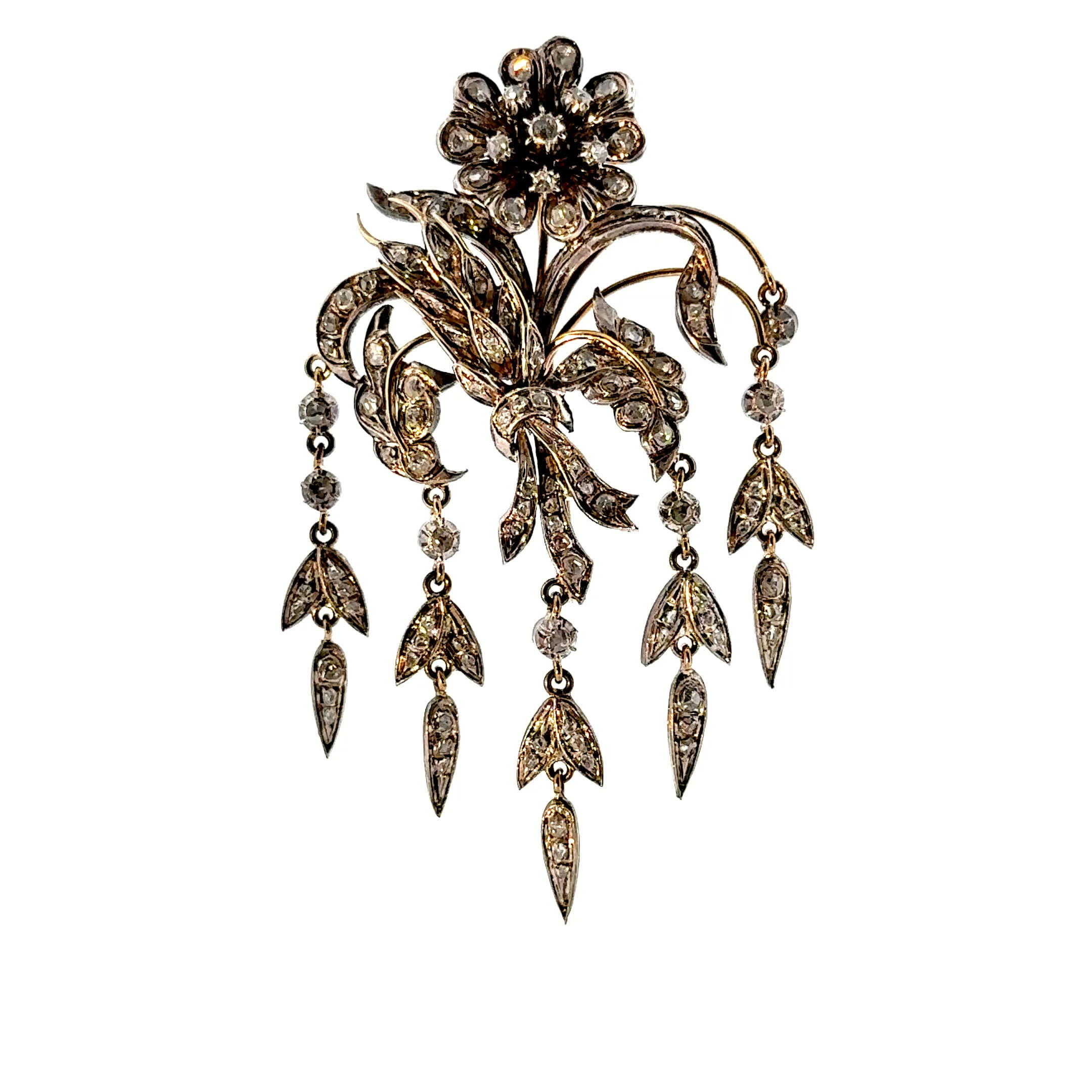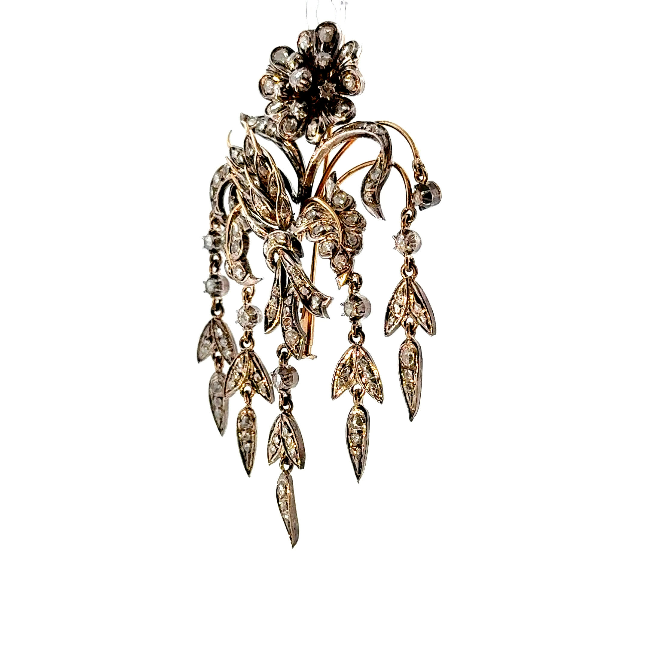 „Bouquet Éclatant" – wie ein Blumenstrauß aus purem Licht, der niemals verwelkt und dessen Diamantrosen in ewiger Schönheit erstrahlen. Diese antike Brosche aus 18 Karat Gold flüstert Geschichten vergangener Jahrhunderte und verleiht jeder Trägerin die zeitlose Eleganz einer Grande Dame. Ein Schmuckstück, das nicht nur schmückt, sondern die Seele berührt und kostbare Augenblicke in funkelnde Erinnerungen verwandelt.