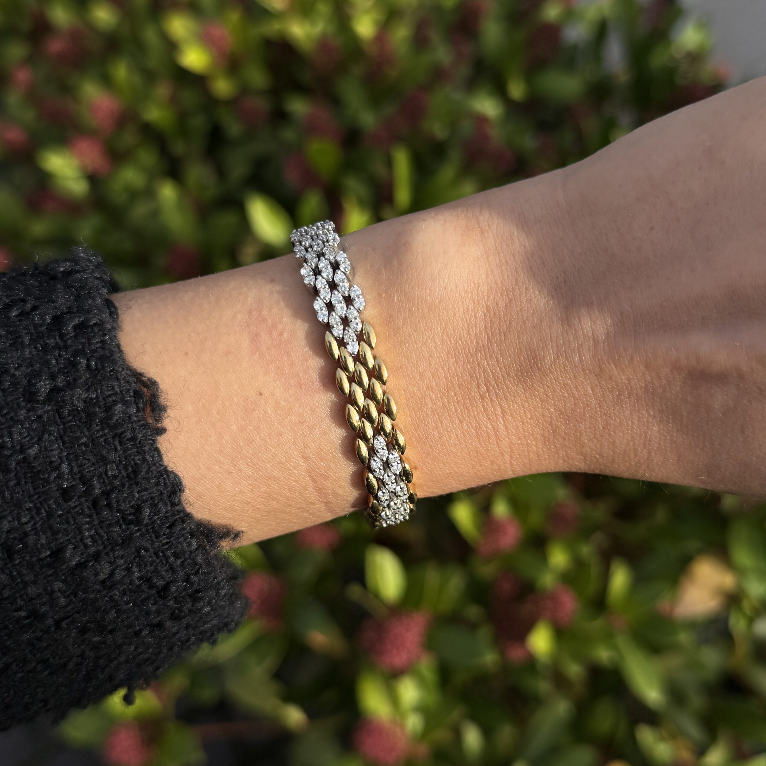 „Brillantglanz" – ein Name, der hält, was er verspricht: 110 funkelnde Brillanten tanzen in warmem 18 Karat Gelbgold um Ihr Handgelenk und verwandeln jeden Augenblick in pure Magie. Dieses seltene Vintage-Juwel flüstert Geschichten von Eleganz und lässt Sie strahlen wie den wertvollsten Schatz, der Sie sind. Ein Armband für die Momente, die das Leben golden machen – und die Erinnerung daran, dass Sie es verdienen, im Mittelpunkt zu stehen.