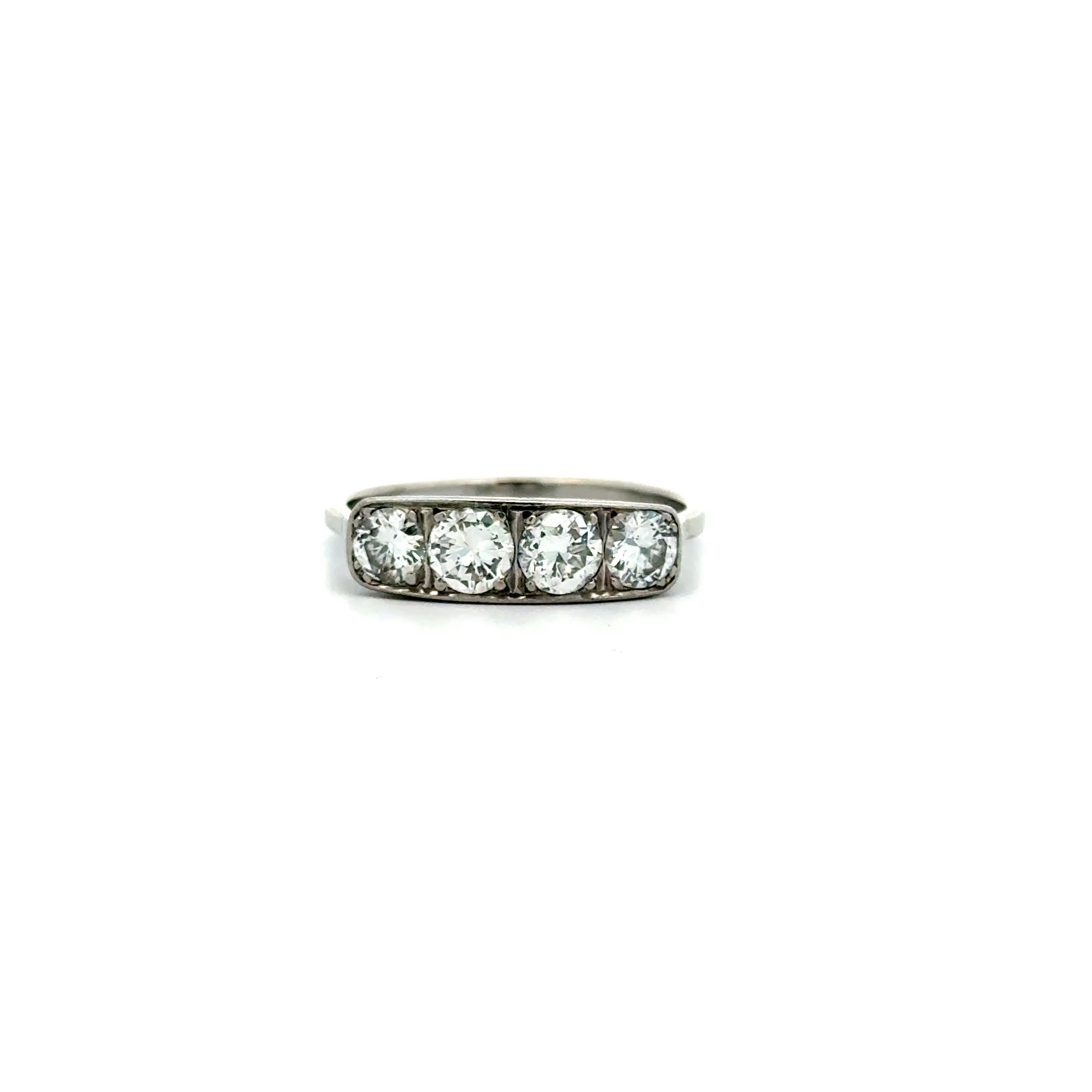 Ein Ring, der seit 1940 von ewiger Liebe träumt – vier funkelnde Brillanten vereinen sich in diesem Vintage-Meisterwerk zu einem Versprechen, das Generationen überdauert. Spüren Sie die warme Umarmung des 18-karätigem Weißgolds an Ihrem Finger und lassen Sie sich von dem magischen Glanz in unvergessliche Momente entführen. Der "Brillantzauber" flüstert Geschichten von zeitloser Romantik und macht jeden Augenblick zu einem kostbaren Diamanten Ihrer Erinnerung.