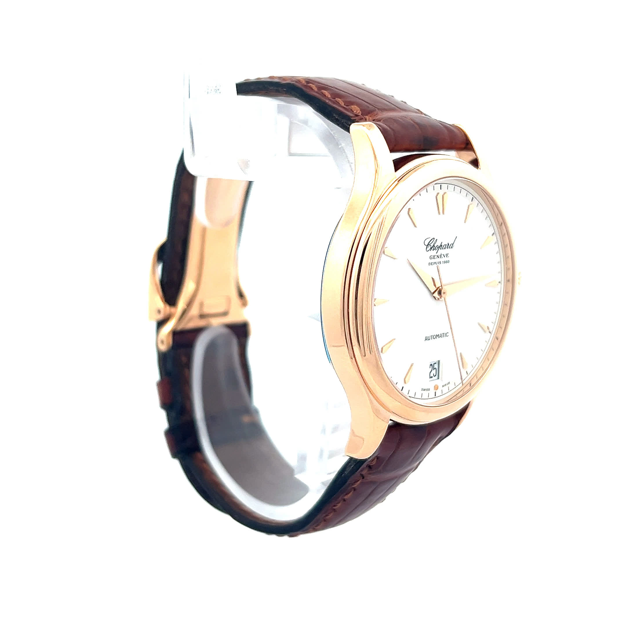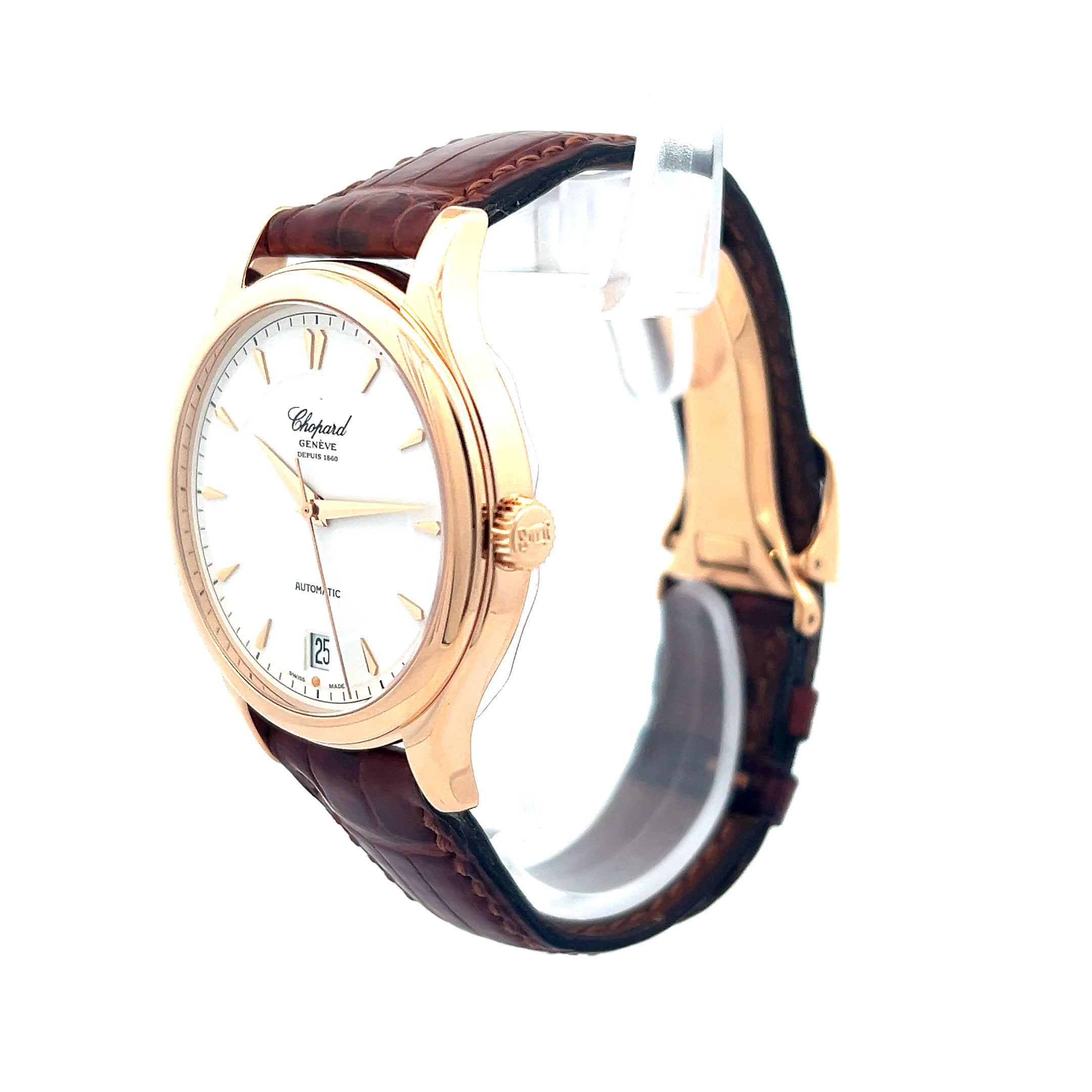 Die Chopard Classic LUC 1860 in warmem Roségold ist mehr als eine Uhr – sie ist Ihr stiller Begleiter durch die kostbarsten Augenblicke des Lebens. Jeder Herzschlag ihres automatischen Werks flüstert von Eleganz und Tradition, während das edle 18-Karat-Roségold sanft an Ihrem Handgelenk ruht wie eine Umarmung der Zeit selbst. Ein Meisterwerk, das nicht nur Stunden zählt, sondern Erinnerungen sammelt und Träume bewahrt.