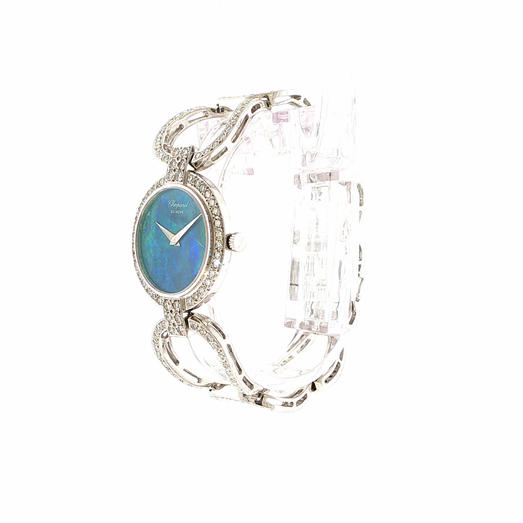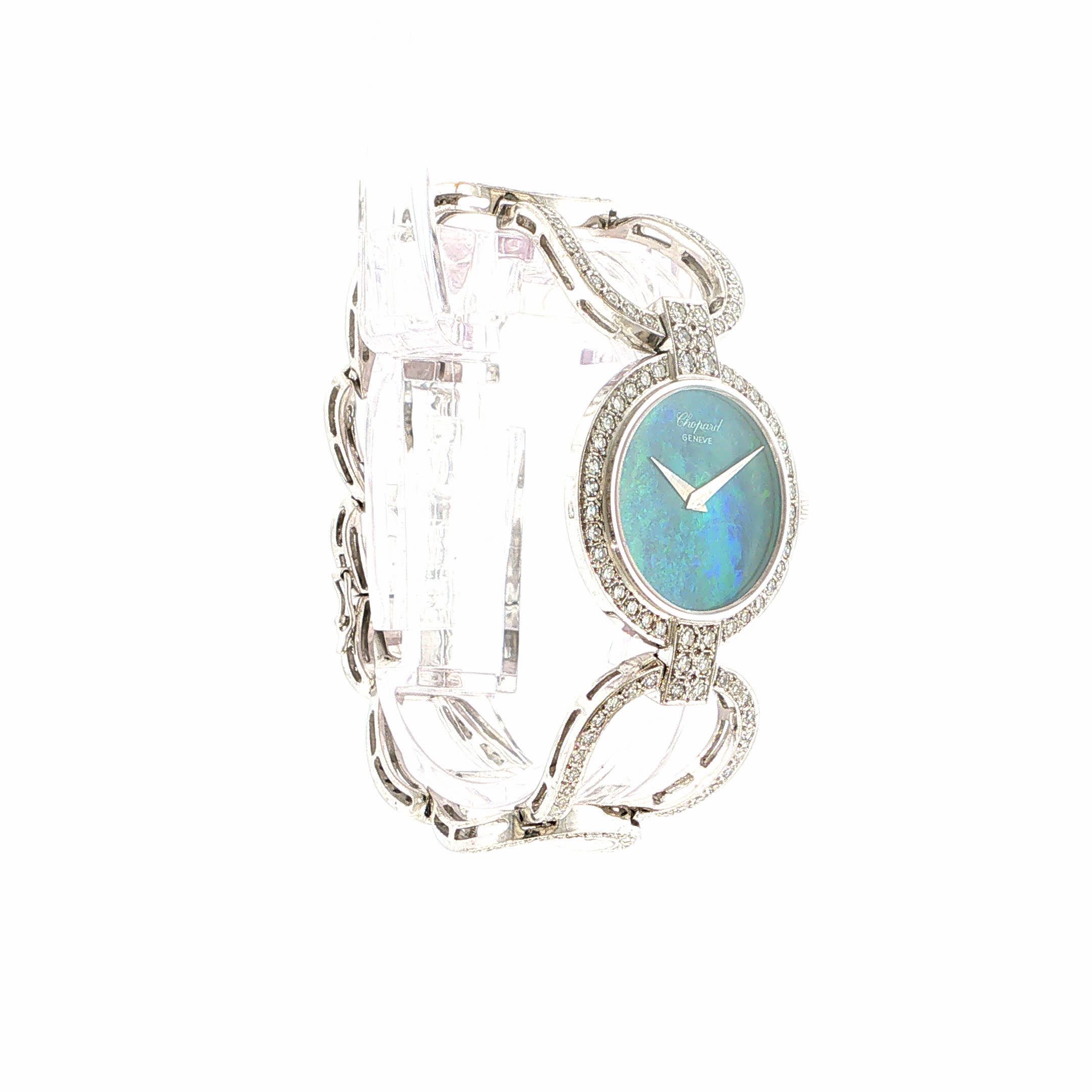 Diese Chopard aus 1970 ist mehr als eine Uhr – sie ist ein poetisches Versprechen an Ihr Handgelenk, wo schimmernder Opal und funkelnde Diamanten jeden Herzschlag in einen kostbaren Moment verwandeln. Spüren Sie, wie das warme Weißgold Ihre Haut berührt und Sie in eine Welt zeitloser Eleganz entführt, wo jede Sekunde zu einem wertvollen Erinnerungsschatz wird. Ein Schmuckstück, das nicht nur die Zeit misst, sondern Träume wahr werden lässt.