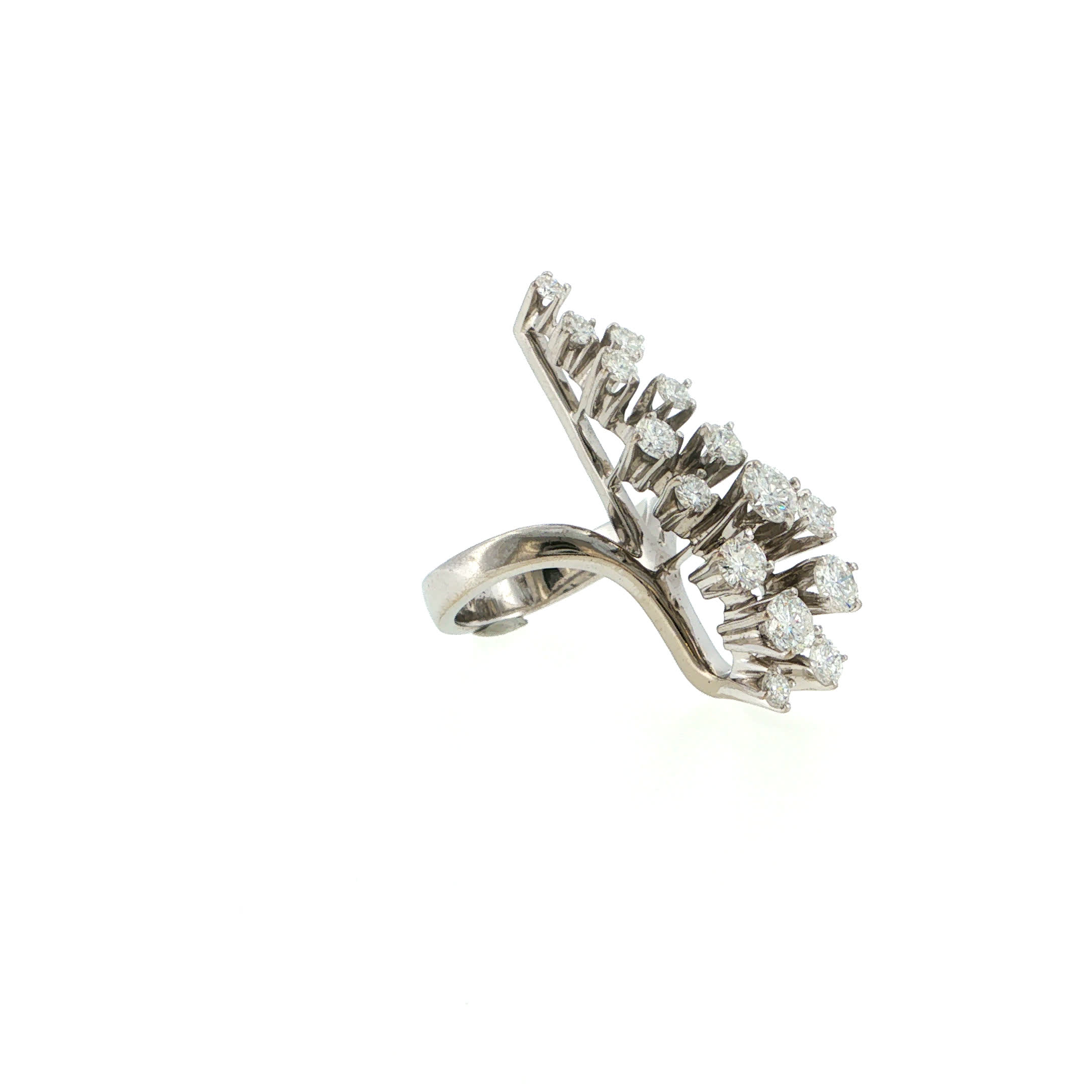 Dieser außergewöhnliche "Diamantzweig" - Vintage Ring 18 Karat Weißgold aus der exklusiven Kollektion von Juwelier Steiger ist ein Meisterwerk der Goldschmiedekunst. In kostbarem 750er Weißgold gefasst, spiegelt er höchste Qualitätsansprüche wider. Gekrönt mit Brillanten zus. 1.94 ct. Top Wesselton / Si, erzählt er von besonderen Momenten und ewiger Verbindung. Ein Symbol für Perfektion und bleibende Werte.