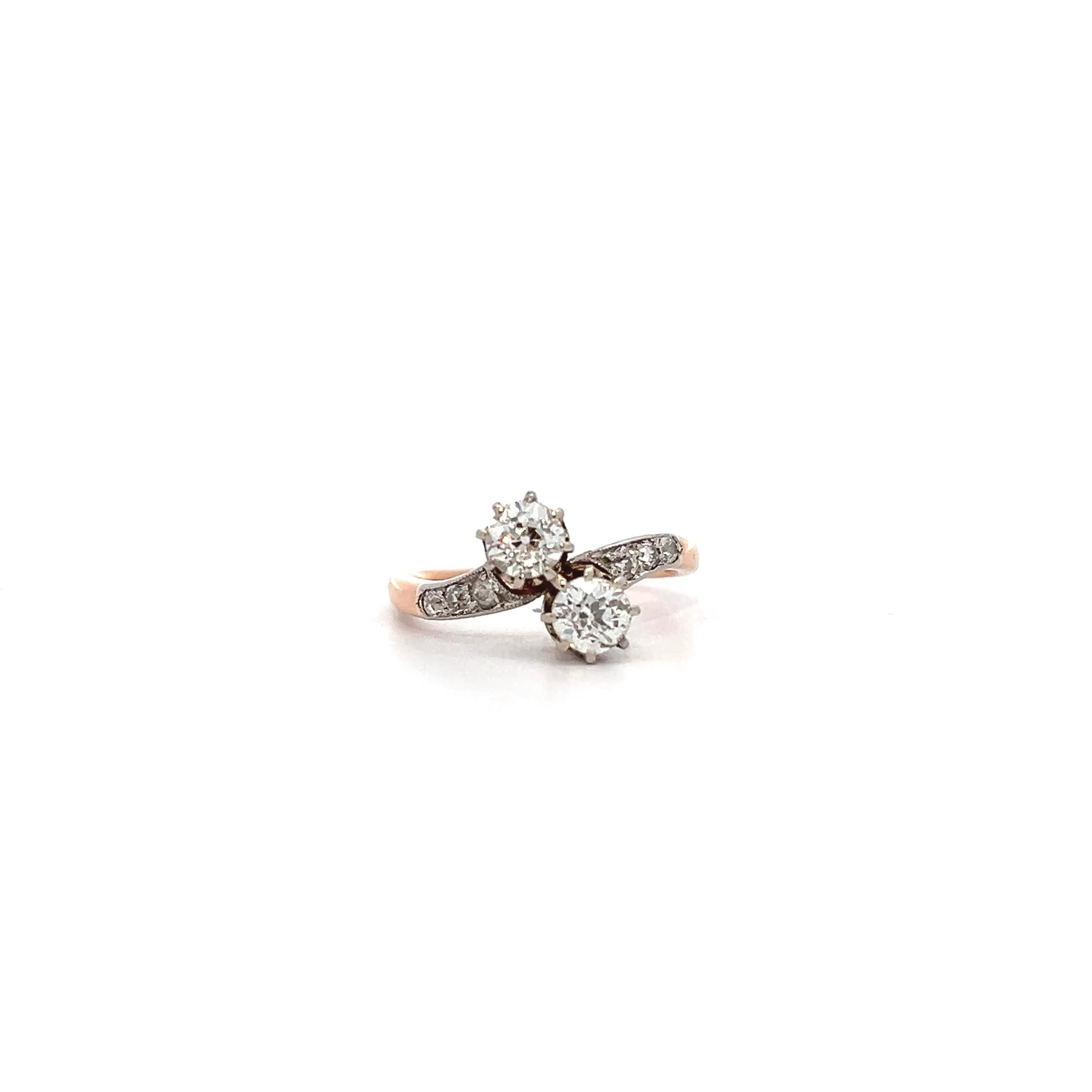 Ein Ring, der die schönsten Gegensätze des Lebens vereint – wie zwei Herzen, die sich in warmer Roségold-Umarmung finden. Die acht Altschliff-Diamanten flüstern von vergangenen Liebesgeschichten und dem Versprechen neuer, unvergesslicher Momente. Tragen Sie "Doppeltes Glück" und spüren Sie, wie Vergangenheit und Zukunft in einem funkelnden Augenblick verschmelzen.