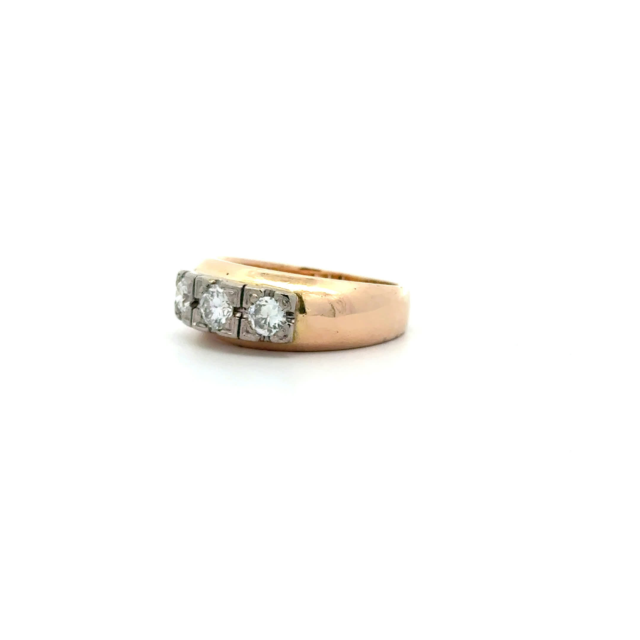 Ein Ring, der Geschichte atmet und Zukunft verspricht – drei funkelnde Diamanten im warmen Schimmer des Roségolds, wie drei kostbare Momente, die für die Ewigkeit festgehalten wurden. Sein vintage Charme flüstert von vergangener Eleganz, während sein zeitloses Design von unendlicher Liebe und unvergesslichen Augenblicken erzählt. Spüren Sie, wie dieser außergewöhnliche Ring Ihre Träume von wahrer Romantik zum Leben erweckt.