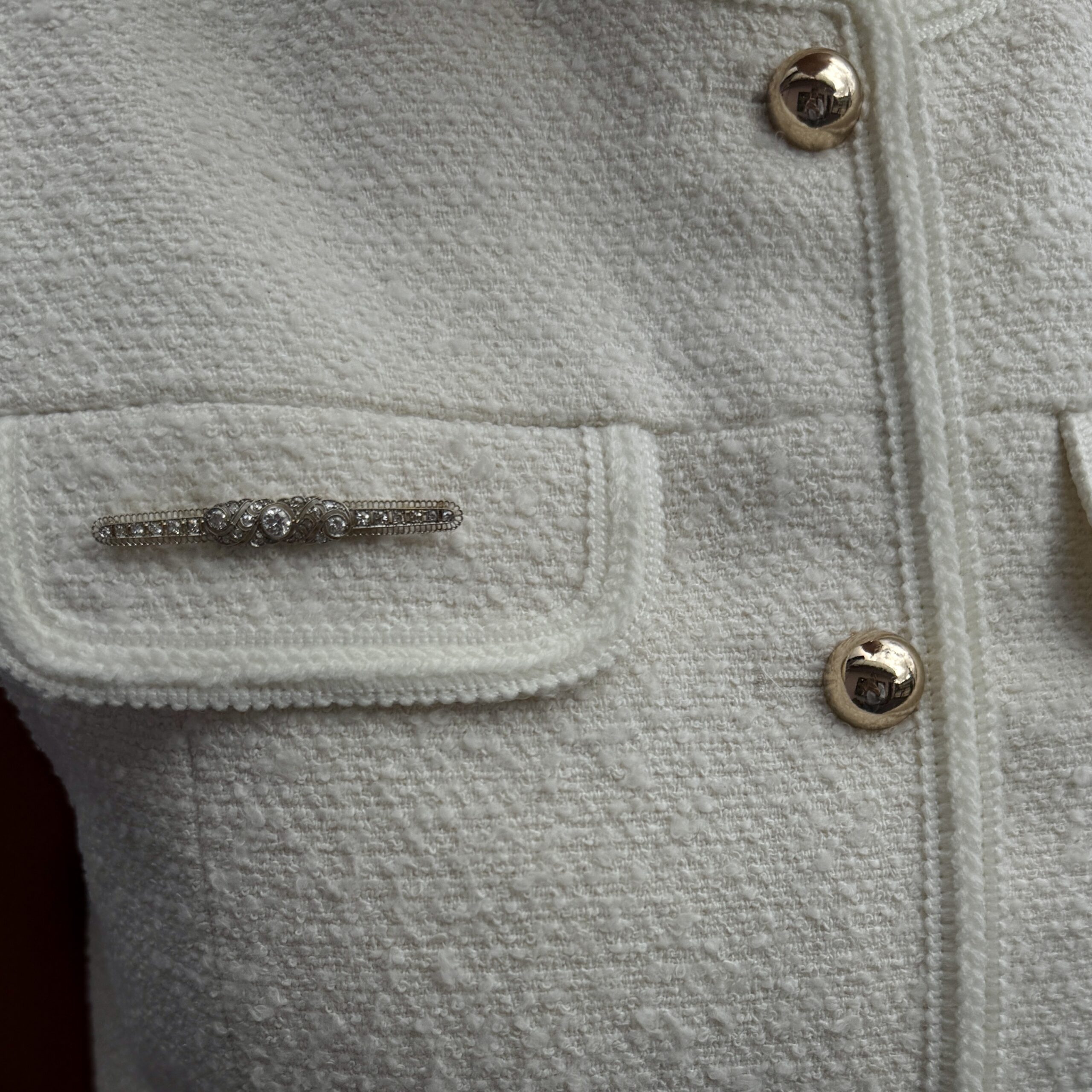 „Éclat Élancé" – ein Hauch von 1920er Eleganz, der Ihre Persönlichkeit mit dem Glamour vergangener Zeiten umhüllt. Die funkelnden Diamanten im Altschliff flüstern Geschichten von mondänen Soiréen und unvergesslichen Momenten, während das warme Gelbgold Ihre natürliche Ausstrahlung zum Leuchten bringt. Ein zeitloser Begleiter, der jeden Ihrer besonderen Augenblicke mit dem Zauber des Art Deco veredelt.