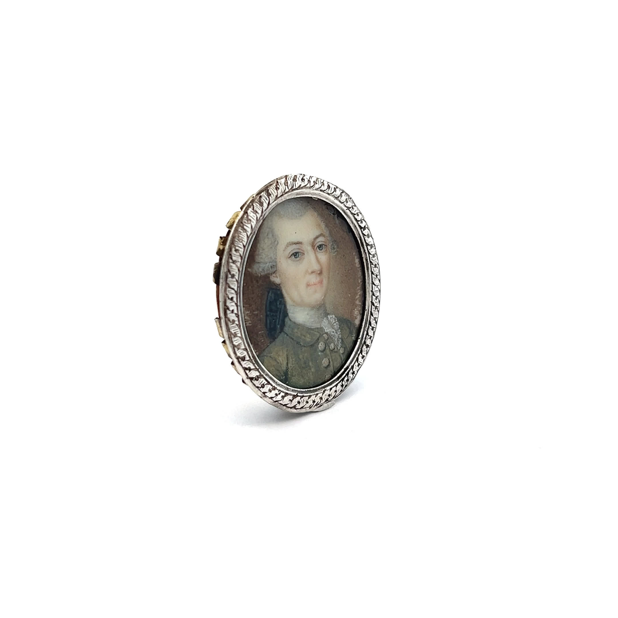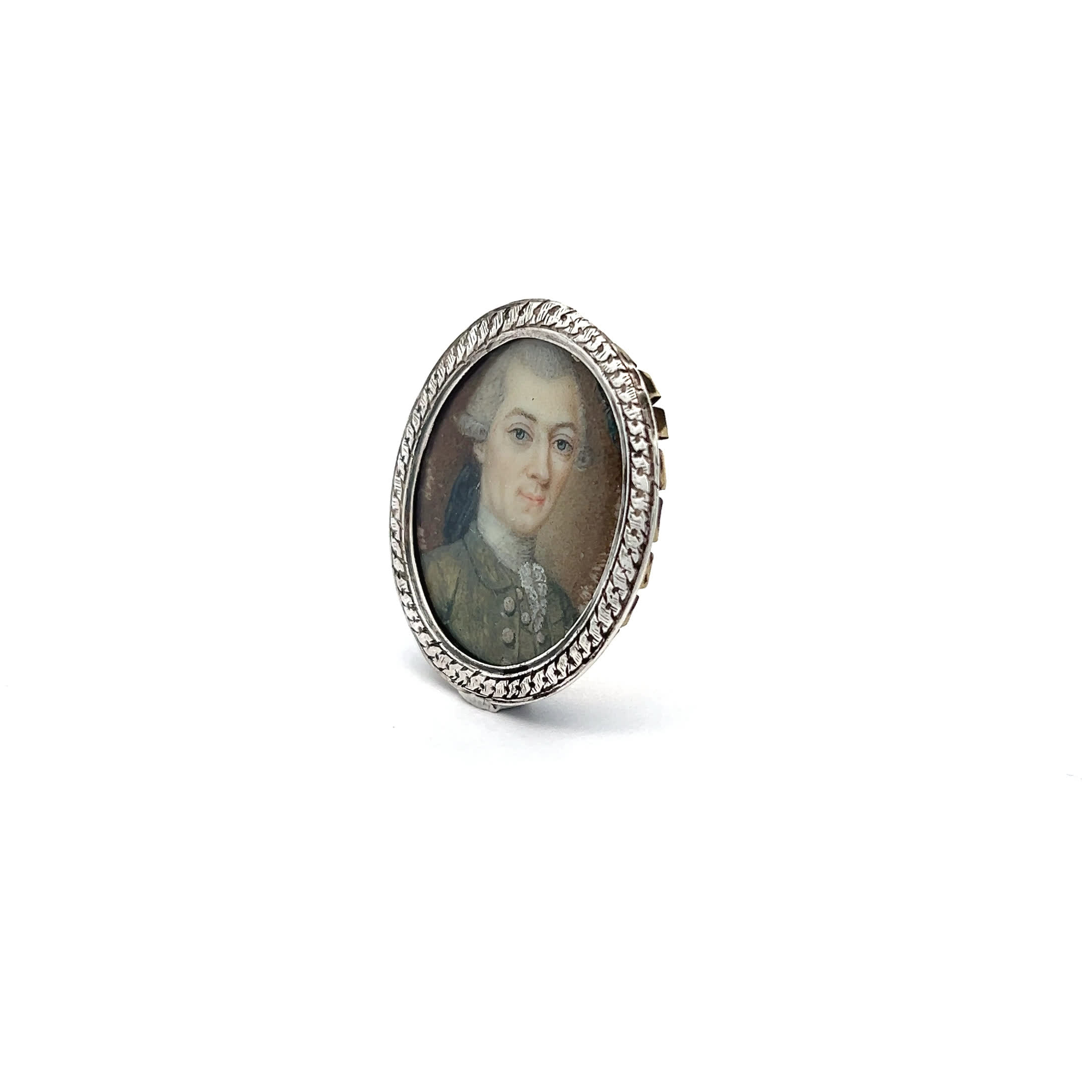 Ein antikes Portrait, das Geschichten längst vergangener Zeiten in sich trägt – wie ein kostbarer Schatz aus einer anderen Epoche, der nun darauf wartet, neue Erinnerungen zu sammeln. In vergoldetem Silber gefasst, wird dieses "Erinnerungsbild" zum stillen Begleiter Ihrer intimsten Momente, ein Schmuckstück, das die Sehnsucht nach Zeitlosigkeit und die Schönheit vergänglicher Augenblicke in sich vereint. Tragen Sie nicht nur eine Brosche, sondern ein Stück Geschichte, das Ihre eigene Eleganz mit der Poesie vergangener Jahrhunderte verschmelzen lässt.