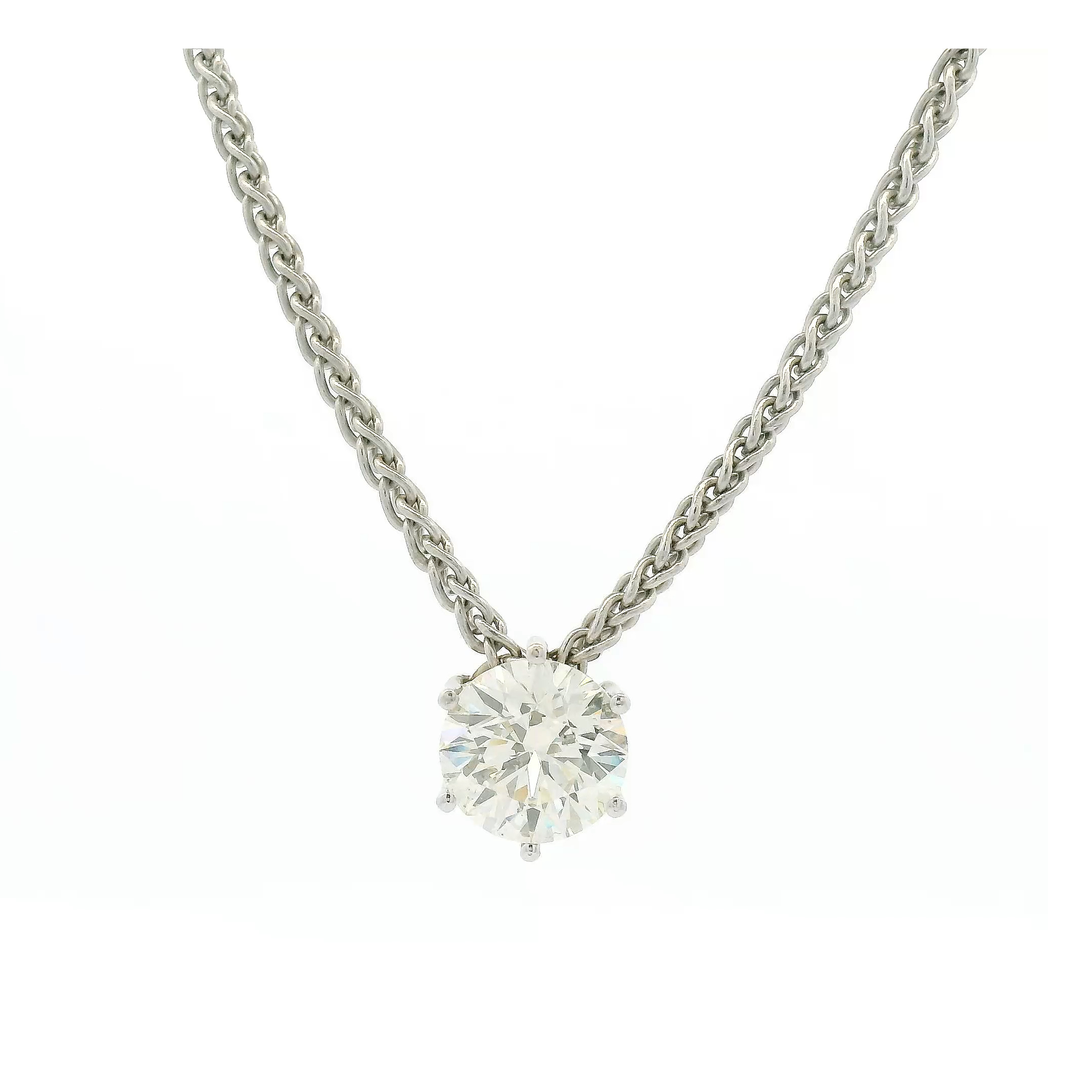 Erleben Sie zeitlose Eleganz mit unserem exklusiven Solitär-Collier. Der atemberaubende Diamant mit einem Gewicht von 4,01 Karat fängt das Licht aus jedem Winkel ein und strahlt in brillanter Klarheit. Gefasst in einer hochwertigen Krappenfassung, kommt der Stein perfekt zur Geltung und wird von einer edlen Weißgoldkette getragen, die die reine Schönheit des Diamanten unterstreicht. Dieses Collier ist nicht nur ein Schmuckstück, sondern ein Statement von Luxus, Klasse und unvergleichlicher Raffinesse – ideal für besondere Anlässe oder als Investition in bleibende Werte.