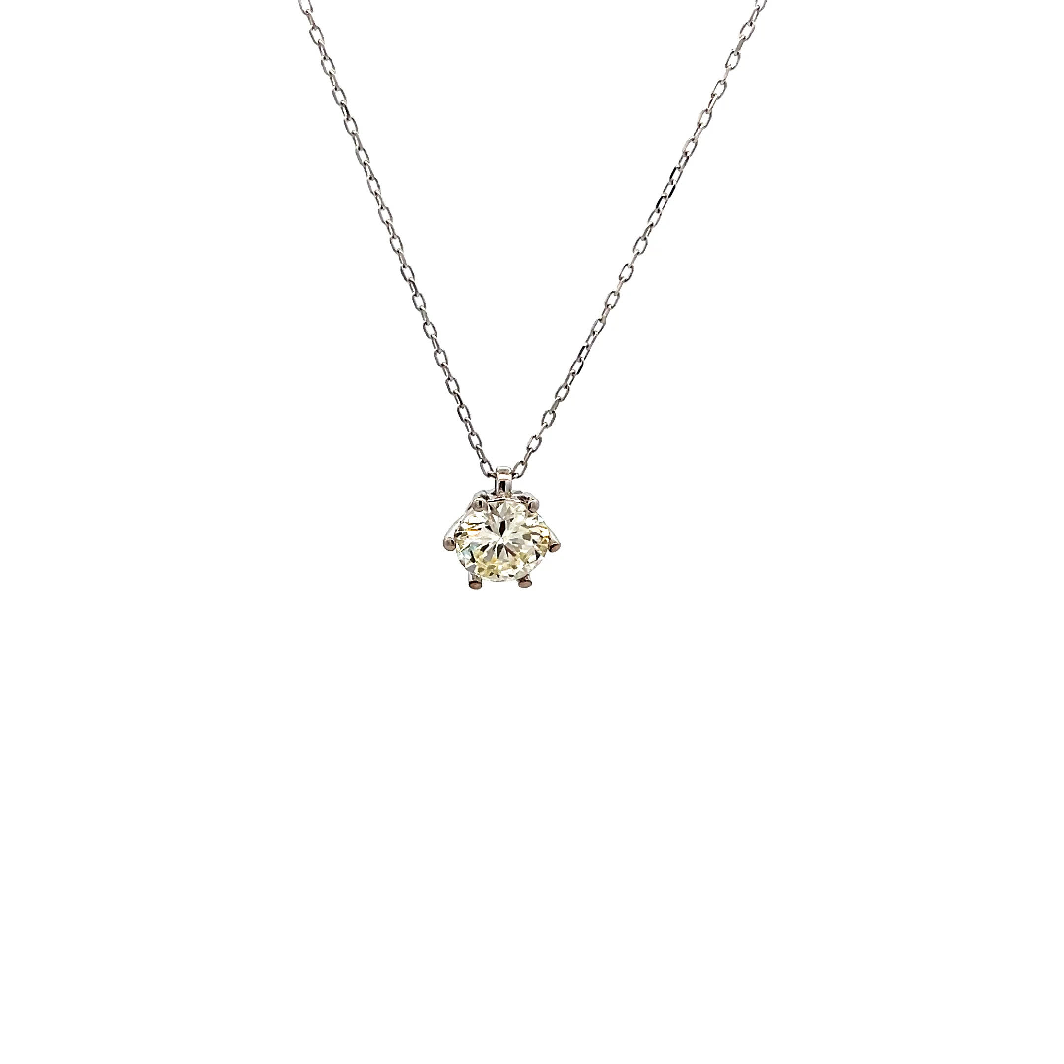 Ein Brillant von 0,69 Carat ruht wie ein gefangener Stern in zartem Weißgold und verwandelt jeden Herzschlag in einen Moment purer Eleganz. Das sanfte Funkeln begleitet Sie durch die schönsten Augenblicke Ihres Lebens – ob bei einem ersten Kuss oder dem wichtigsten "Ja" Ihres Lebens. Ewiges Licht trägt seinen Namen zu Recht: Es illuminiert nicht nur Ihr Dekolleté, sondern lässt Ihre Seele erstrahlen.