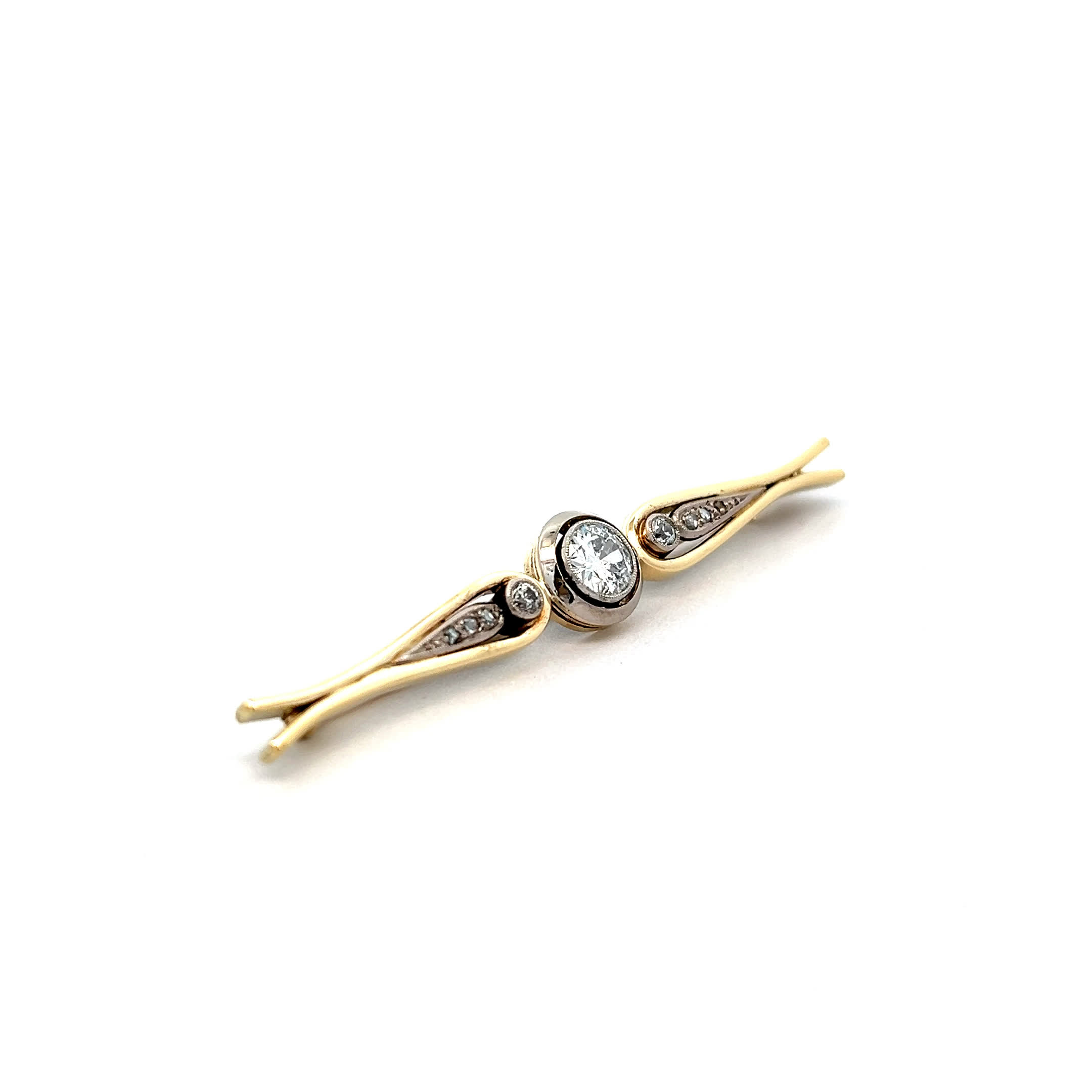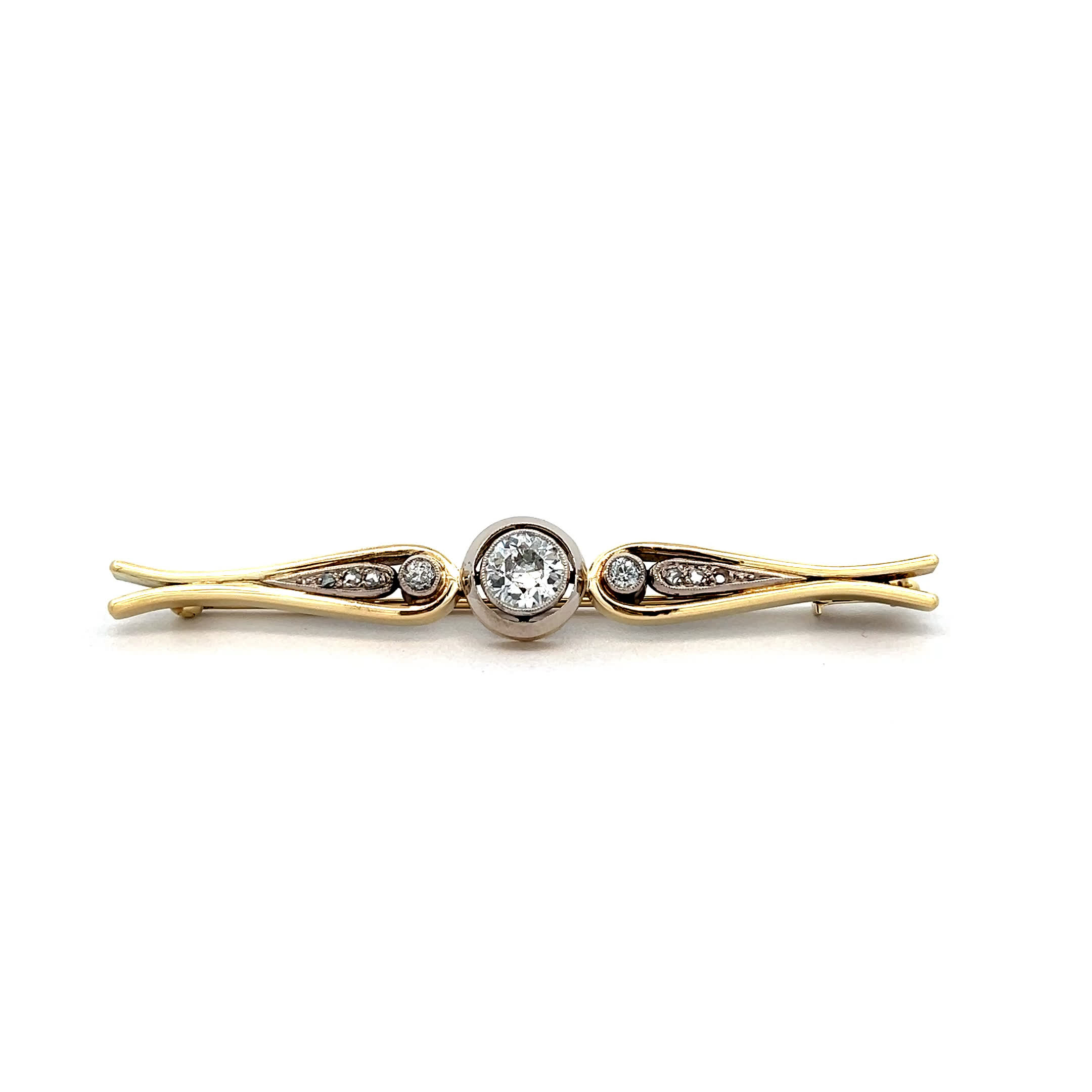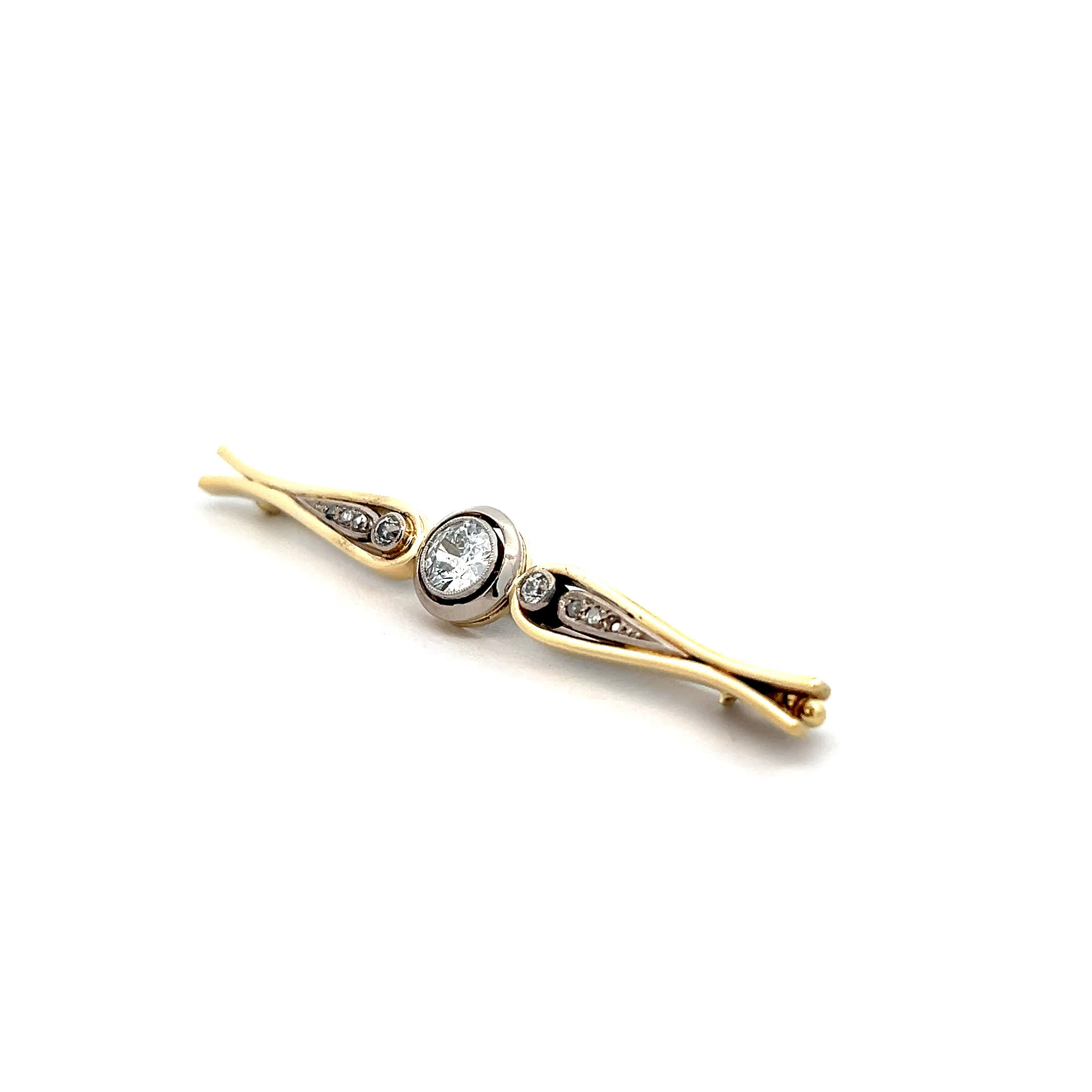 "Ewiges Strahlen" - Wunderschöne Vintage Stabbrosche in 14 Karat Gelbgold Wie ein Lichtstrahl aus vergangenen Zeiten berührt diese exquisite Vintage-Stabbrosche Ihr Herz mit ihrer zeitlosen Anmut. Die funkelnden Altschliff-Diamanten flüstern Geschichten von eleganten Soireen und kostbaren Augenblicken, während das warme Gelbgold Ihre Seele mit seiner sanften Ausstrahlung umhüllt. Ein Schmuckstück, das nicht nur Ihren Look vollendet, sondern Sie mit der Magie vergangener Epochen verbindet und jeden Ihrer Auftritte zu einem unvergesslichen Moment macht.