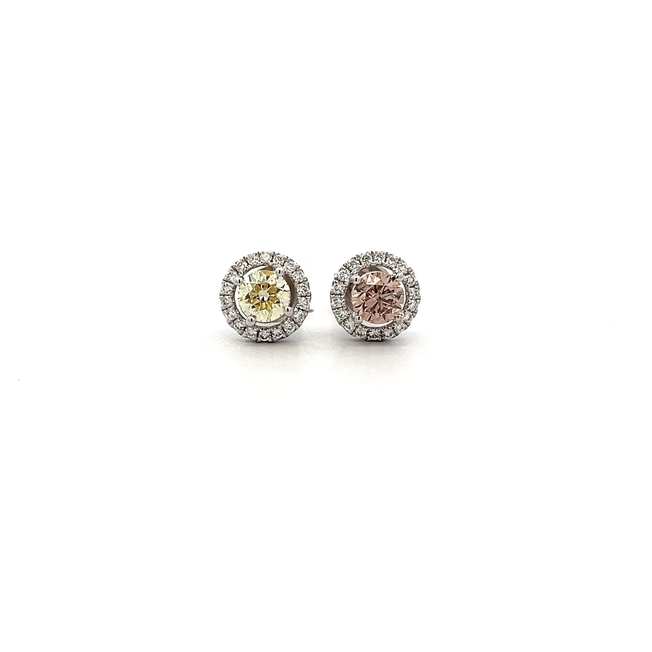 Moderne Ohrstecker mit Brillanten zus. 1,27ct in fancy yellow & fancy light brown