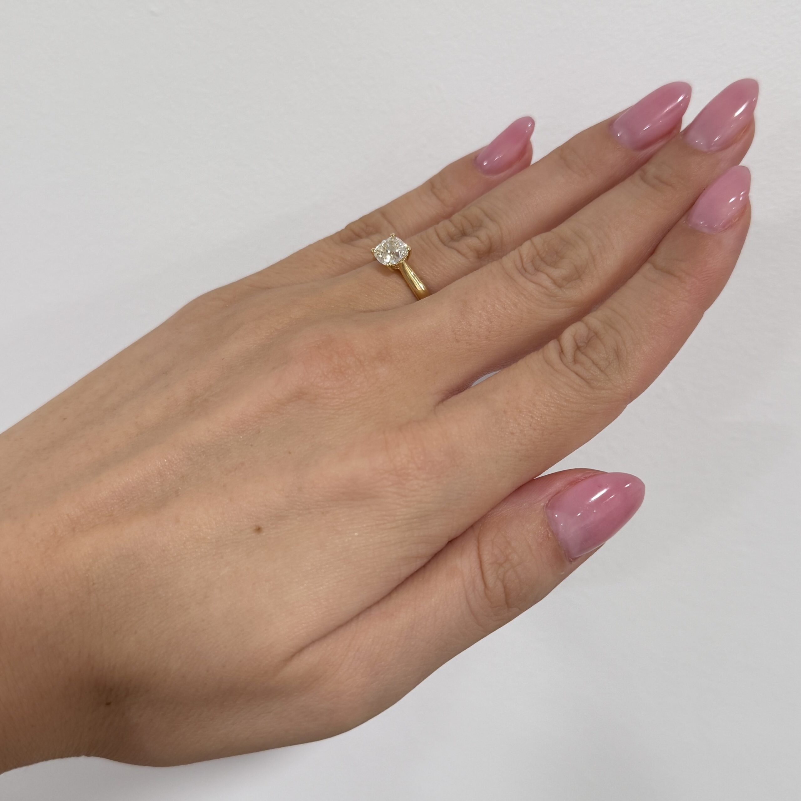 Ein Ring, der Versprechen trägt und Herzen für die Ewigkeit verbindet – der 1,21 Karat Altschliff-Diamant im warmen 750er Gelbgold strahlt mit der zeitlosen Kraft wahrer Liebe. Seine sanfte Eleganz flüstert von unvergänglichen Momenten und wird zum strahlenden Zeugnis Ihrer für immer währenden Verbindung. Lassen Sie dieses Meisterwerk aus unserer Werkstatt zum Symbol Ihrer schönsten Träume werden.