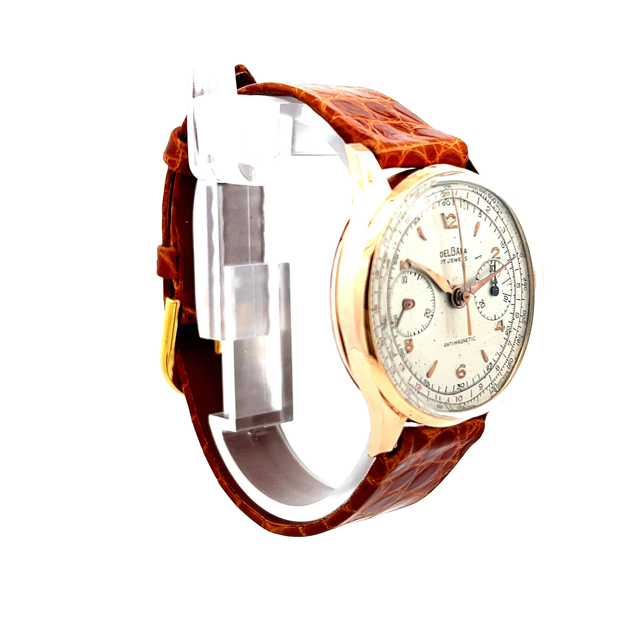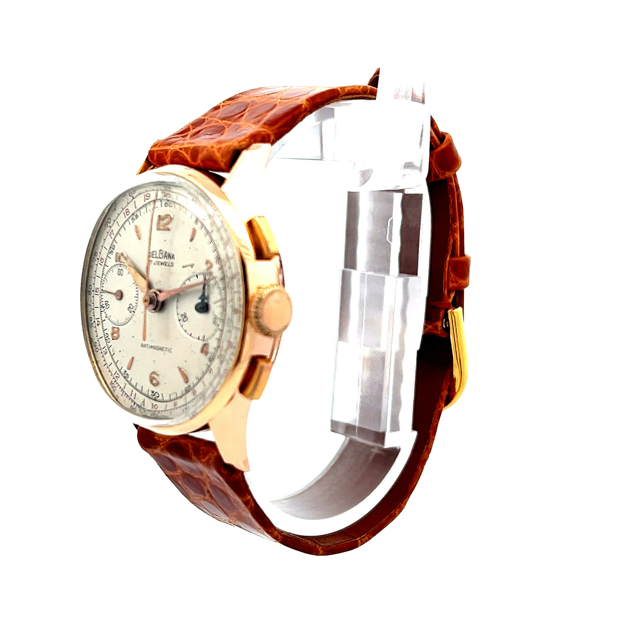Die "Golden Chrono" aus den 1950ern ist mehr als eine Uhr – sie ist ein goldener Begleiter durch die kostbarsten Augenblicke des Lebens. Ihr warmes 18-Karat-Gelbgold und das edle weiße Zifferblatt erzählen von einer Zeit, in der jede Sekunde noch bewusst gelebt wurde. Mit jedem Tick ihres Handaufzug-Herzens schenkt sie ihrem Träger das Gefühl von zeitloser Eleganz und der besonderen Magie vergangener Epochen.