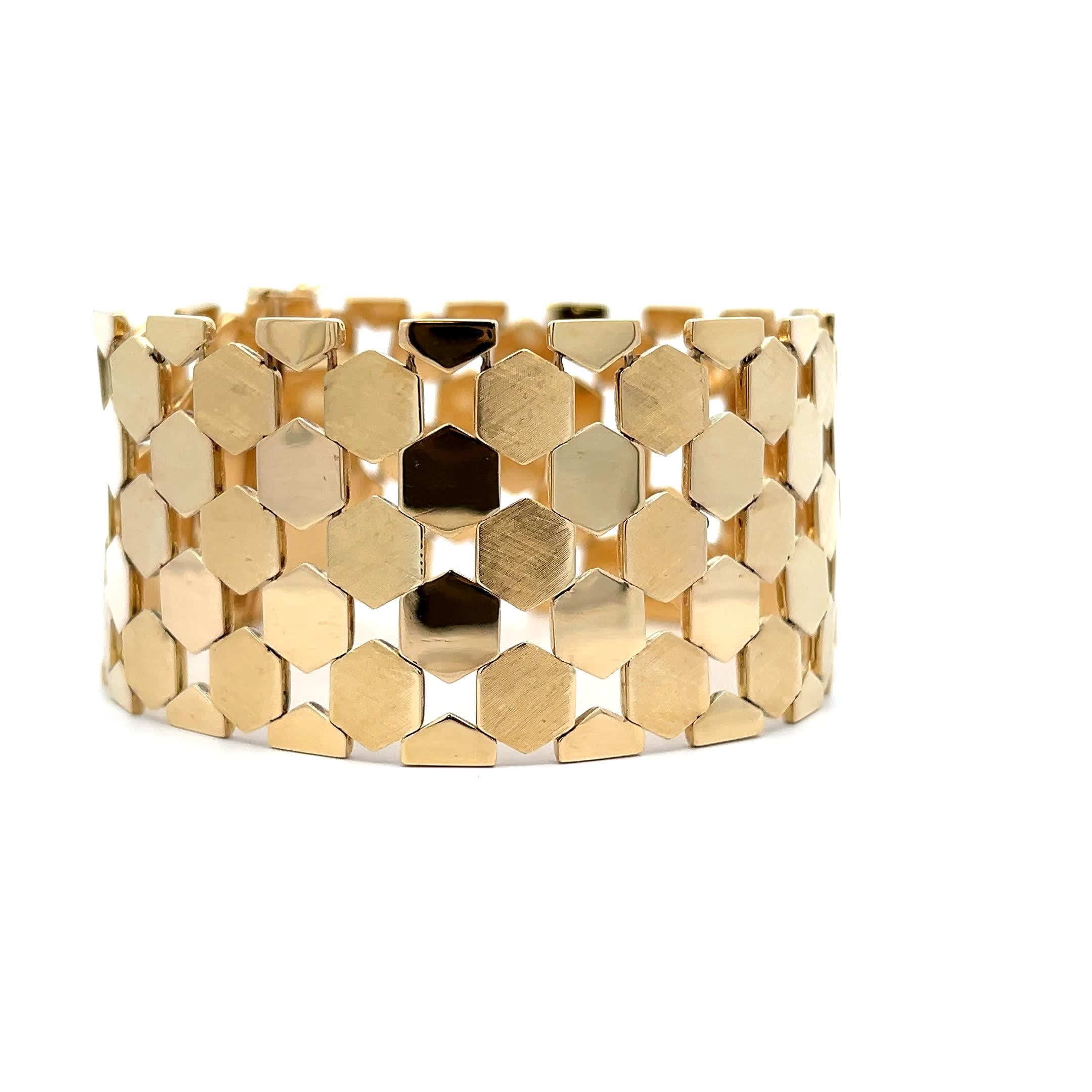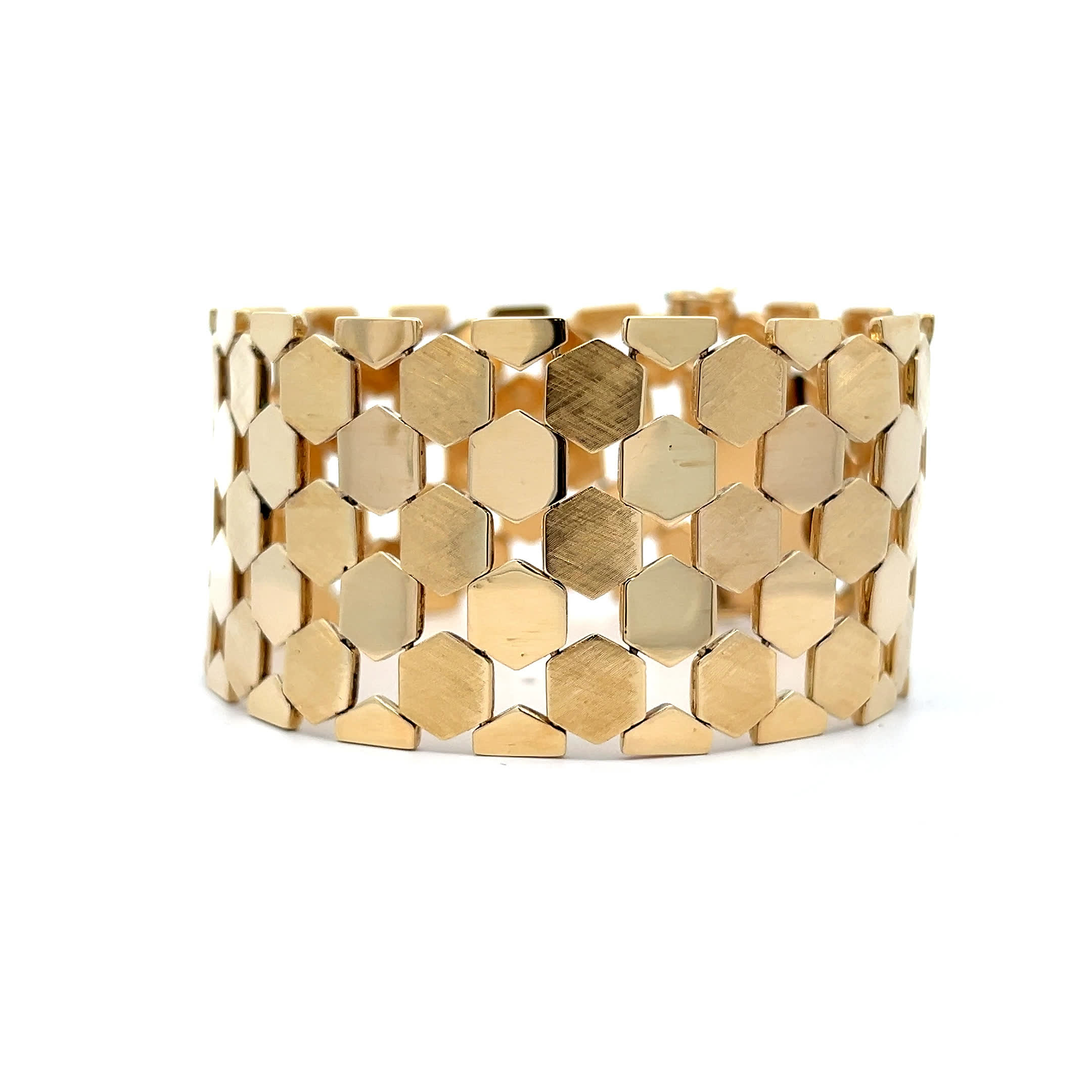 Ein vintage Armband, das Geschichten von goldenen Zeiten erzählt – "Golden Elegance" verwandelt jeden Moment in eine kostbare Erinnerung. Spüren Sie, wie das warme 14 Karat Gelbgold Ihre Haut liebkost und Ihnen das Gefühl gibt, etwas ganz Besonderes zu tragen. Diese zeitlose Schönheit begleitet Sie durch die schönsten Augenblicke Ihres Lebens und lässt Ihr Herz vor Stolz und Eleganz höher schlagen.