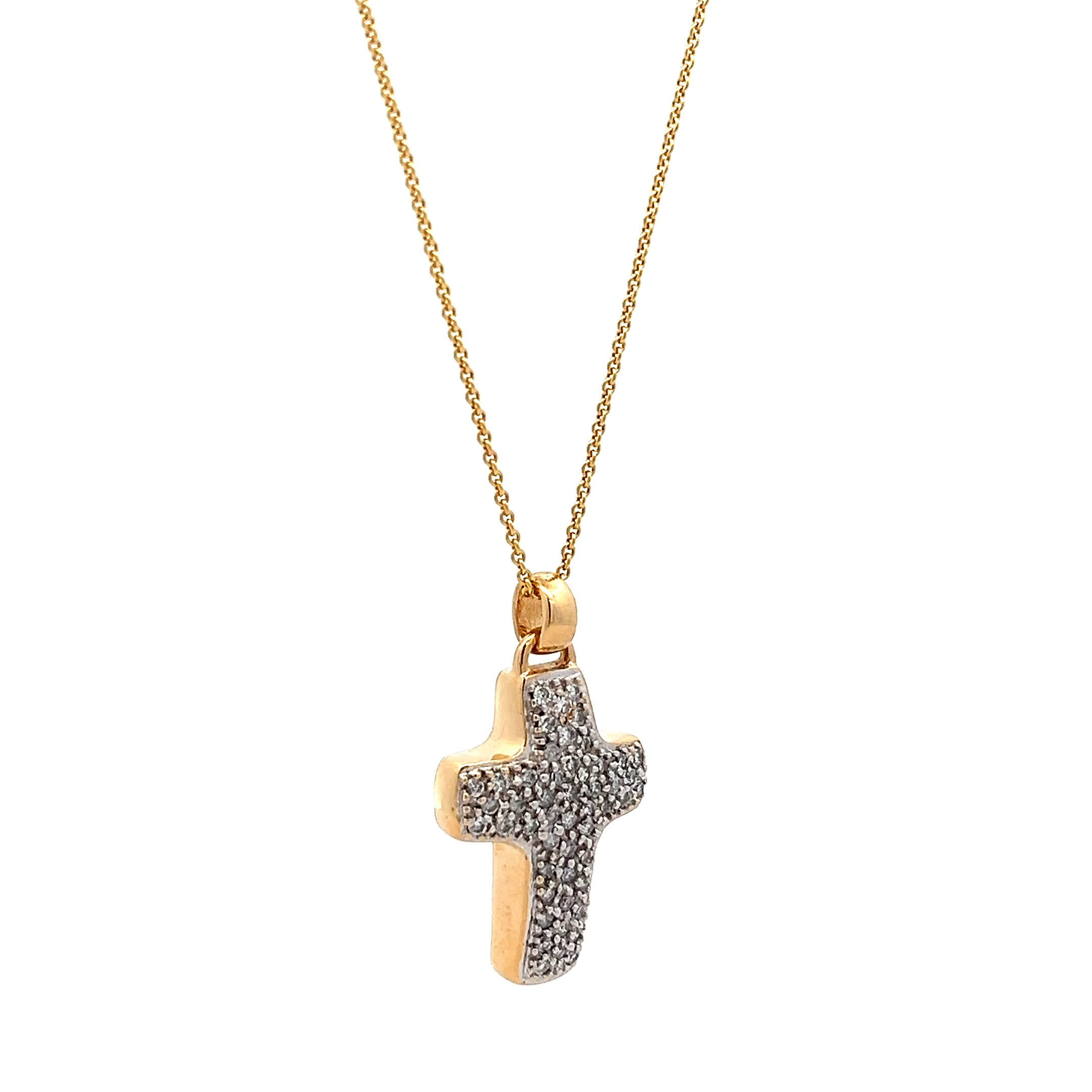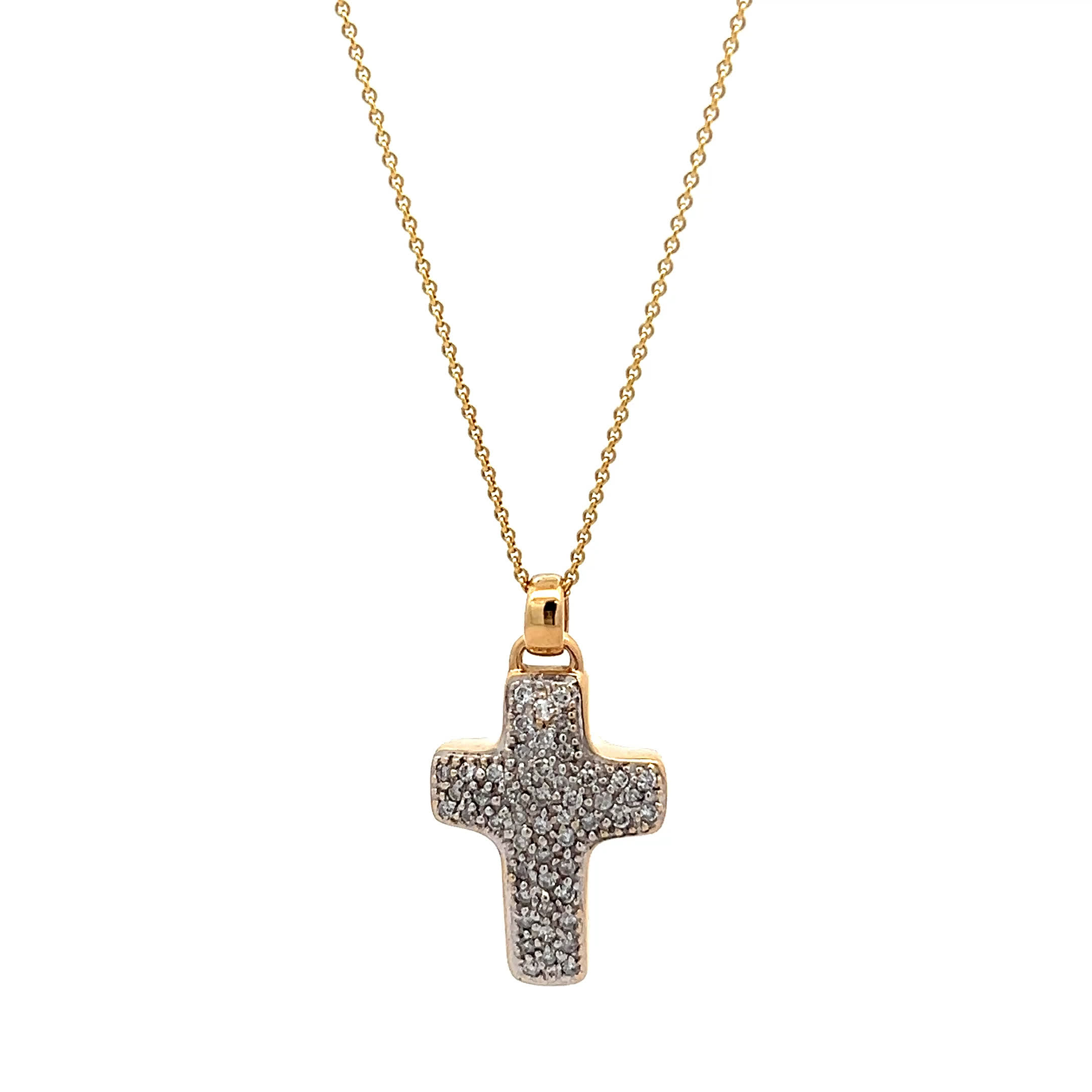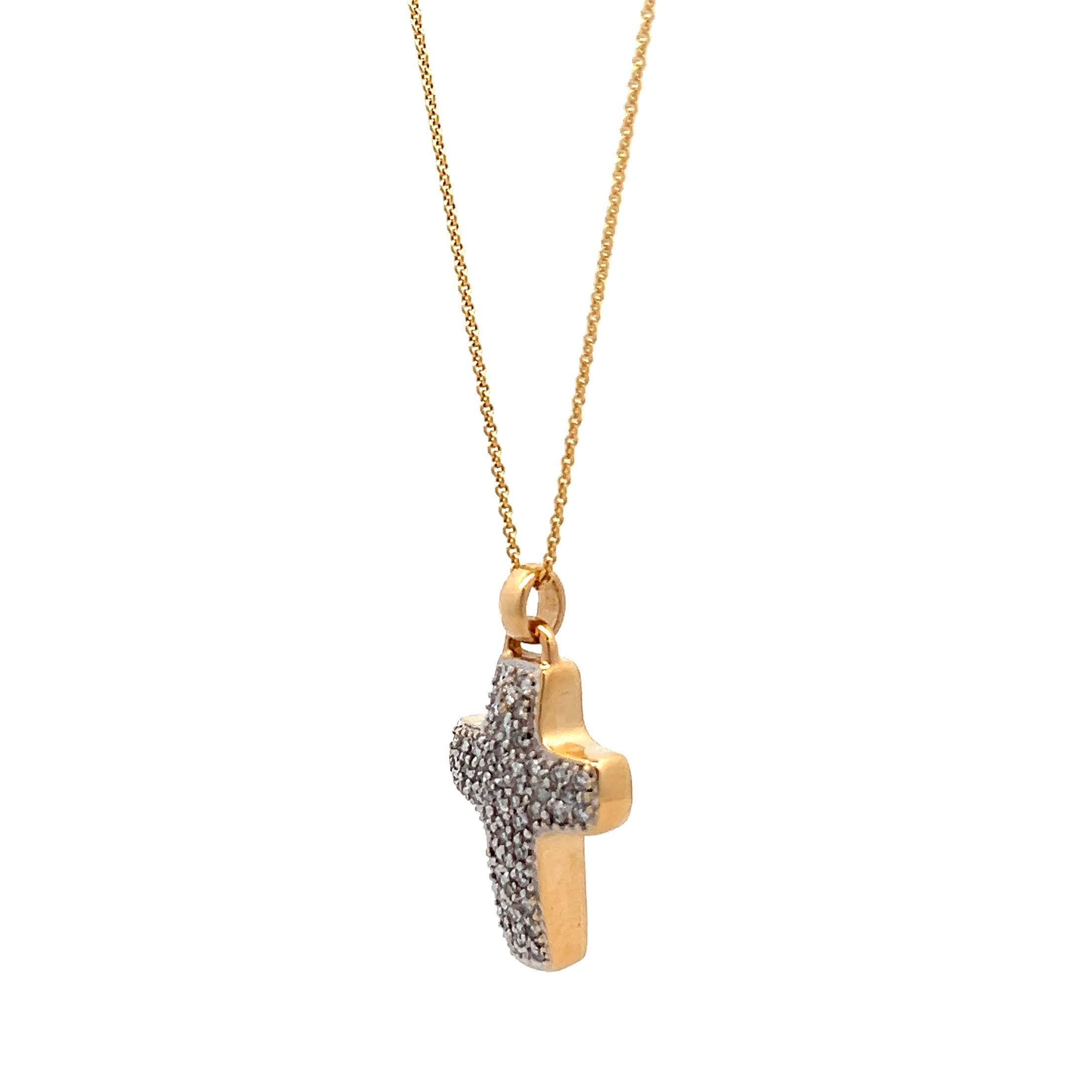 Ein goldenes Kreuz, das mehr ist als Schmuck – es ist Ihr stiller Begleiter durch alle Höhen und Tiefen des Lebens. Die funkelnden Brillanten fangen das Licht ein wie kleine Sterne der Hoffnung, während das warme Gold Ihre Haut liebkost und Ihnen Kraft und Geborgenheit schenkt. „Golden Faith" verwandelt jeden Moment in eine Erinnerung an das, was wirklich zählt – Glaube, Liebe und die kostbaren Augenblicke, die das Leben lebenswert machen.