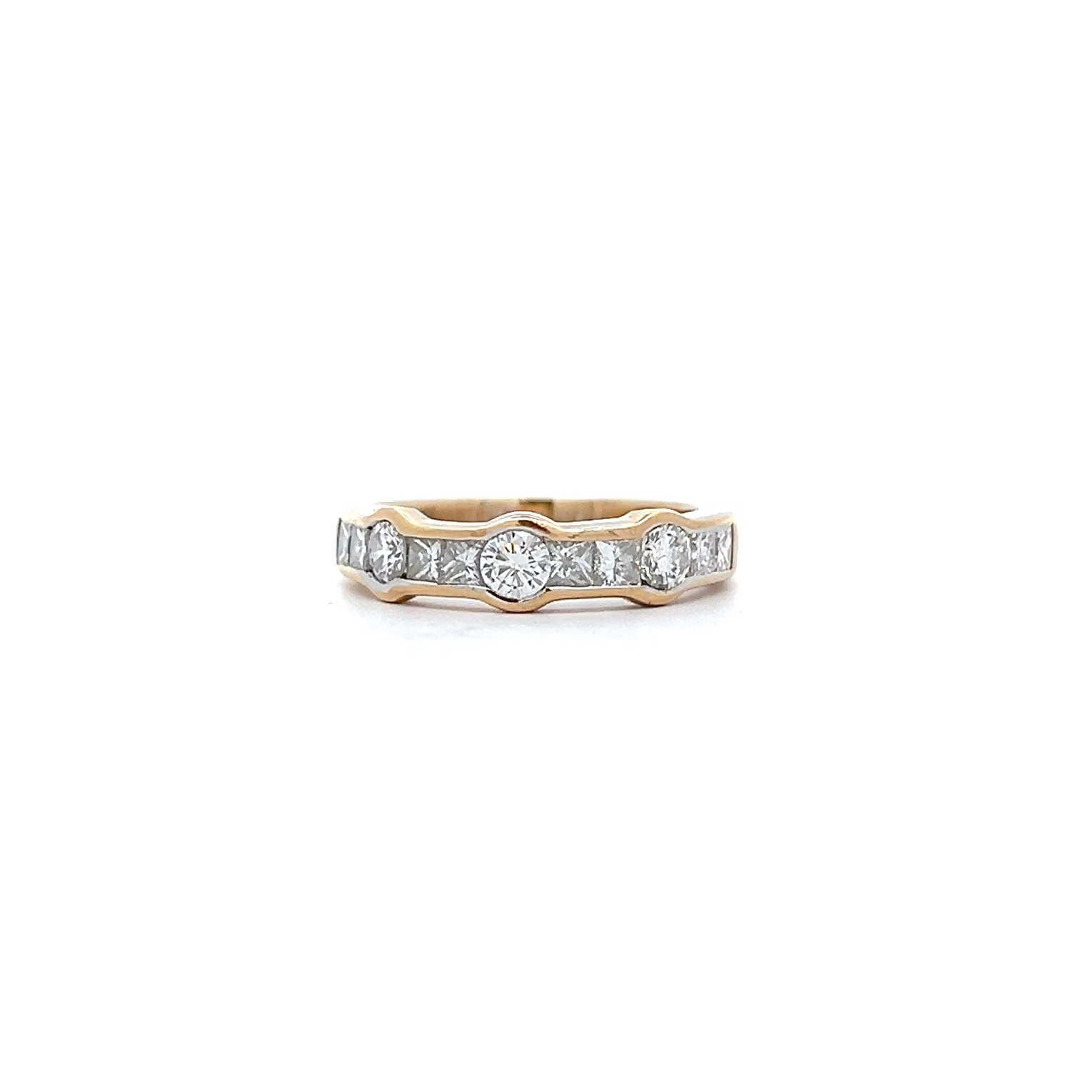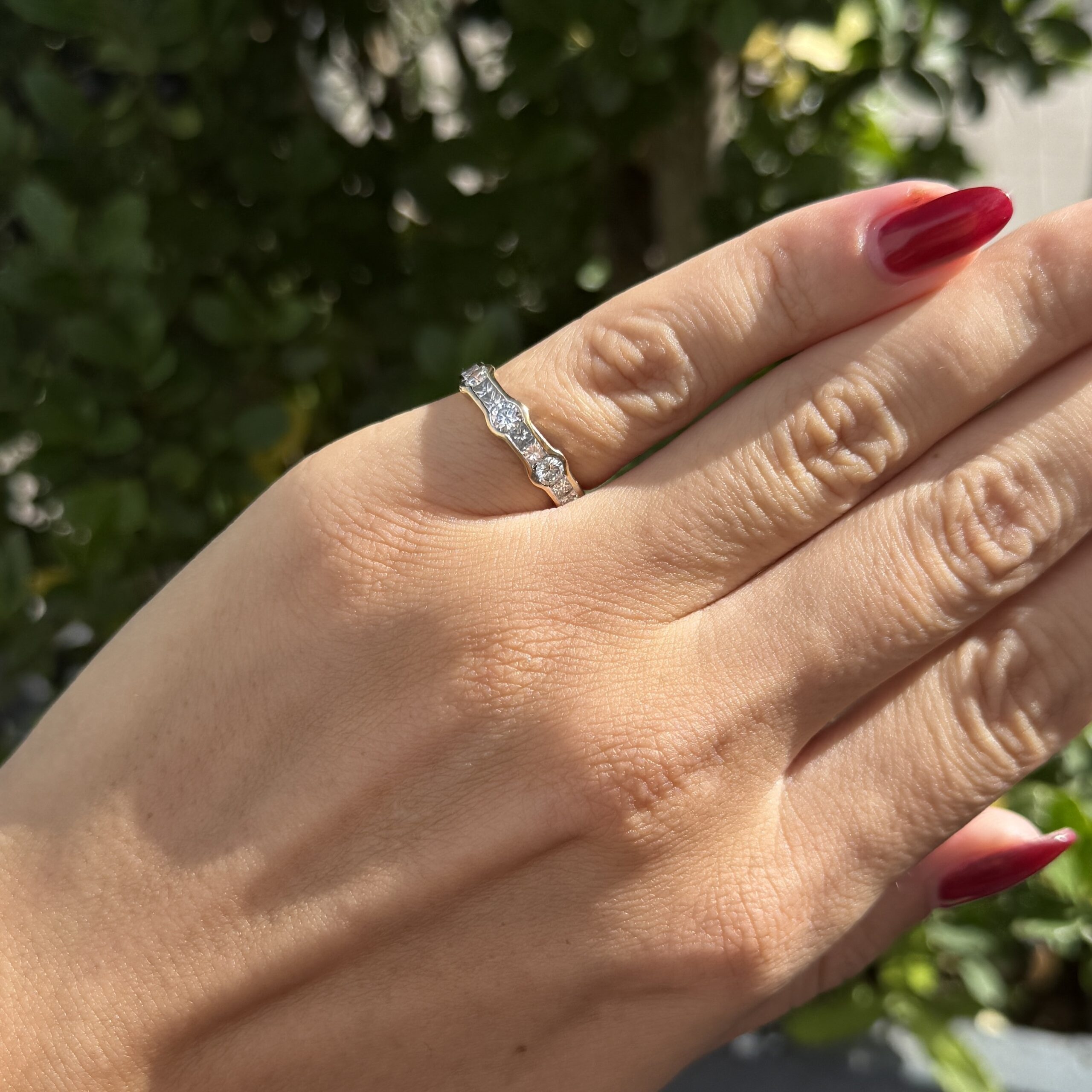 Ein Ring, der goldene Augenblicke für die Ewigkeit einfängt – drei strahlende Brillanten und acht funkelnde Princess-Cut-Diamanten verwandeln jeden Moment in pure Magie. Wenn warmes Gelbgold auf Ihre Haut trifft, spüren Sie nicht nur seine edle Schwere, sondern auch die Gewissheit, dass manche Erinnerungen niemals verblassen. Dieser Ring ist Ihr stiller Begleiter durch die schönsten Kapitel Ihres Lebens.