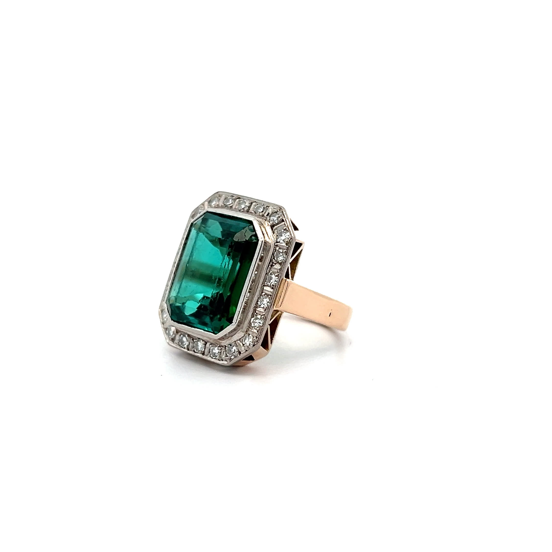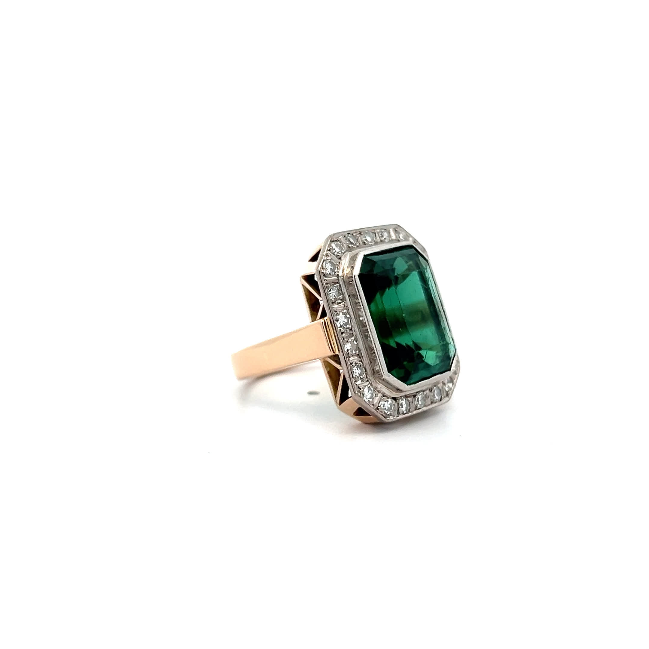 Dieser außergewöhnliche "Green Light" - Vintage Ring in 14kt Gelbgold mit Chrysopras und Diamanten aus der exklusiven Kollektion von Juwelier Steiger ist ein Meisterwerk der Goldschmiedekunst. In kostbarem 585er Gelbgold gefasst, spiegelt er höchste Qualitätsansprüche wider. Gekrönt mit 8/8 Diamanten, erzählt er von besonderen Momenten und ewiger Verbindung. Ein Symbol für Perfektion und bleibende Werte.