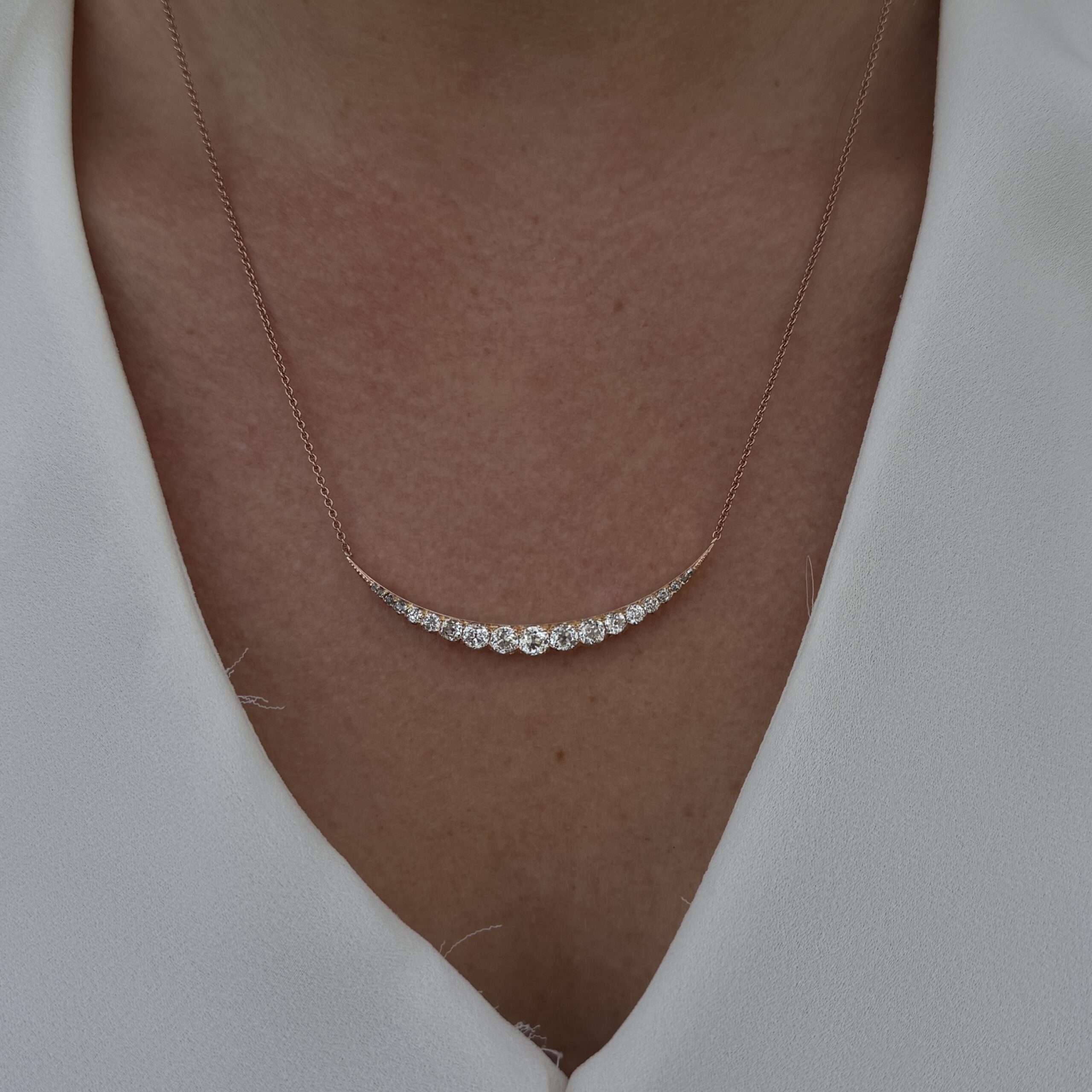 Ein Hauch vergangener Zeit, eingefangen in warmem Roségold: Dieses Collier trägt die stille Eleganz klassischer Handwerkskunst in sich. Die funkelnden Altschliff-Diamanten spiegeln Erinnerungen an besondere Augenblicke wider – ein Stück, das nicht nur schmückt, sondern bewegt.