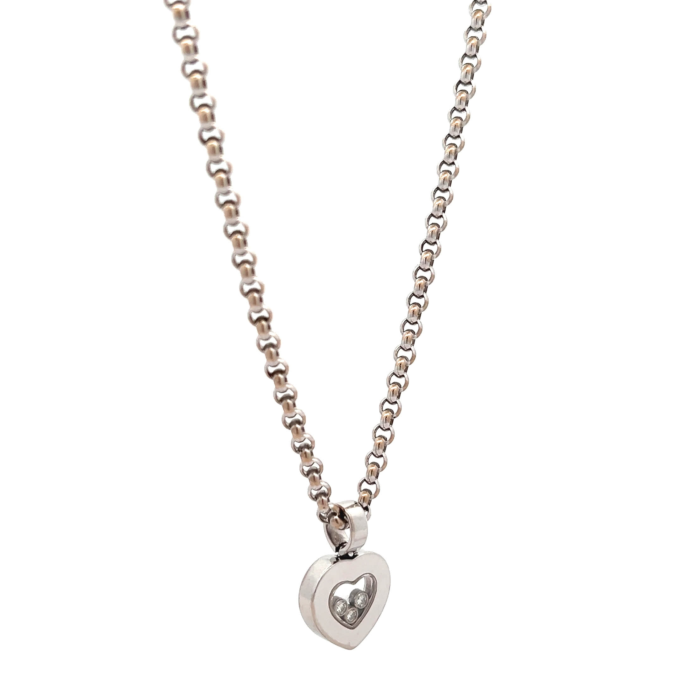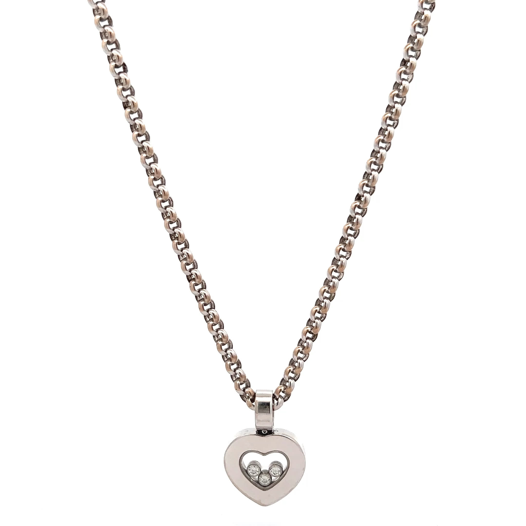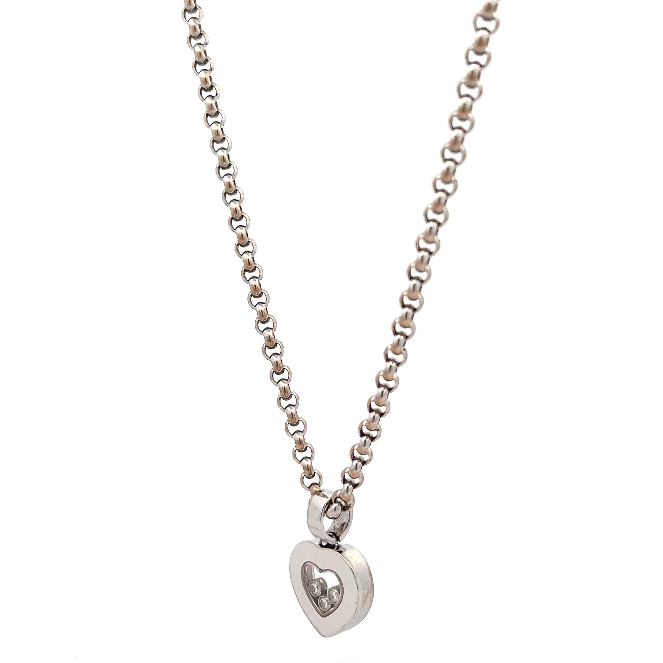 Diese zauberhafte Chopard "Happy Diamonds" Kette in 18kt Weißgold verwandelt jeden Herzschlag in pure Poesie – drei tanzende Brillanten im zarten Herzanhänger fangen das Licht Ihrer schönsten Momente ein. Spüren Sie, wie sich Glück und Eleganz um Ihren Hals legen und jeden Tag zu einem besonderen Ereignis machen. Ein Schmuckstück, das nicht nur getragen wird, sondern das Ihre Seele zum Strahlen bringt.