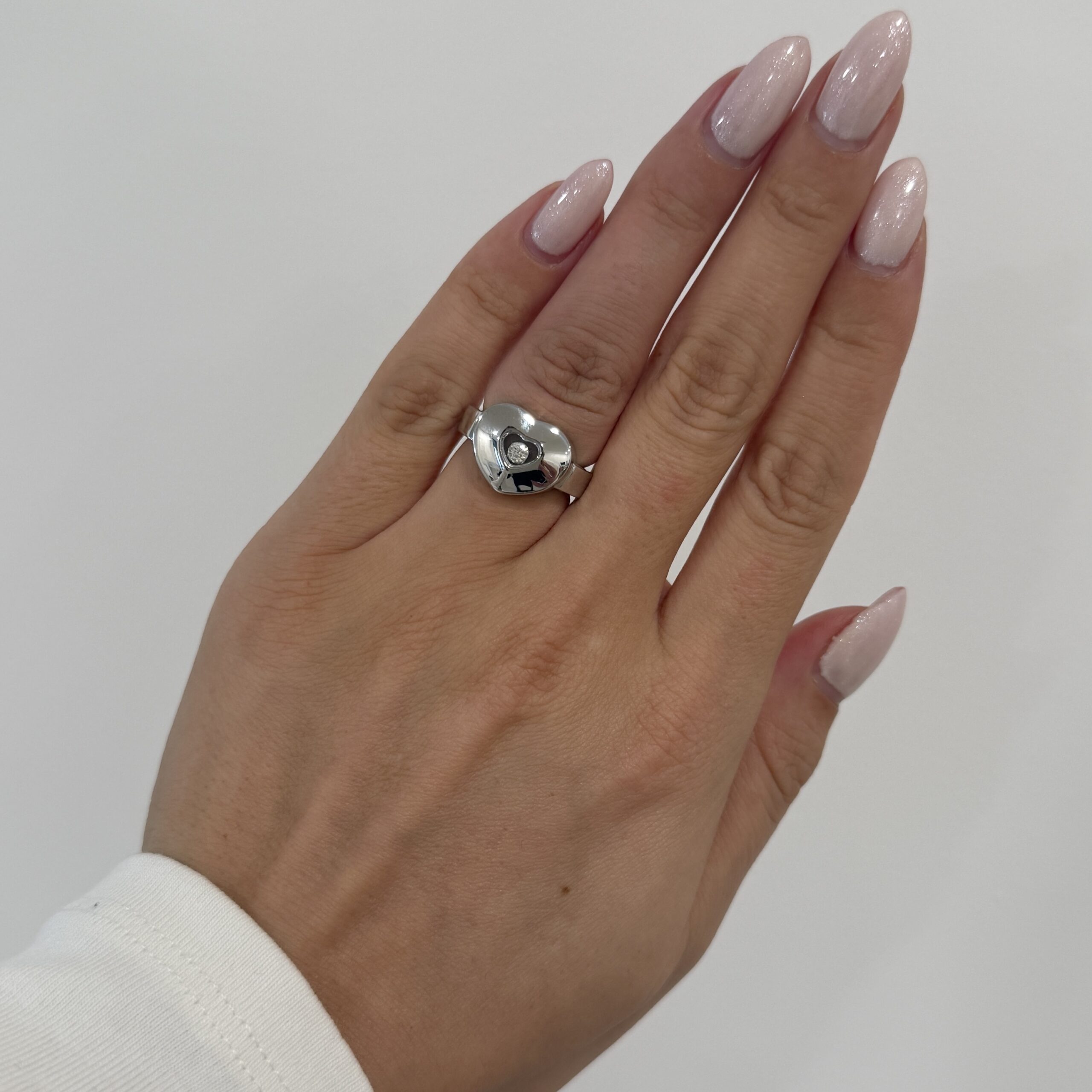 Ein tanzender Brillant im zarten Weißgold – der "Happy Heart" Ring von Chopard verwandelt jeden Herzschlag in ein kleines Wunder. Wie ein gefangener Stern bewegt sich der Diamant sanft mit Ihnen und flüstert von Momenten voller Leichtigkeit und pure Lebensfreude. Ein Schmuckstück, das nicht nur getragen wird, sondern das Herz zum Lächeln bringt und kostbare Erinnerungen für die Ewigkeit schafft.