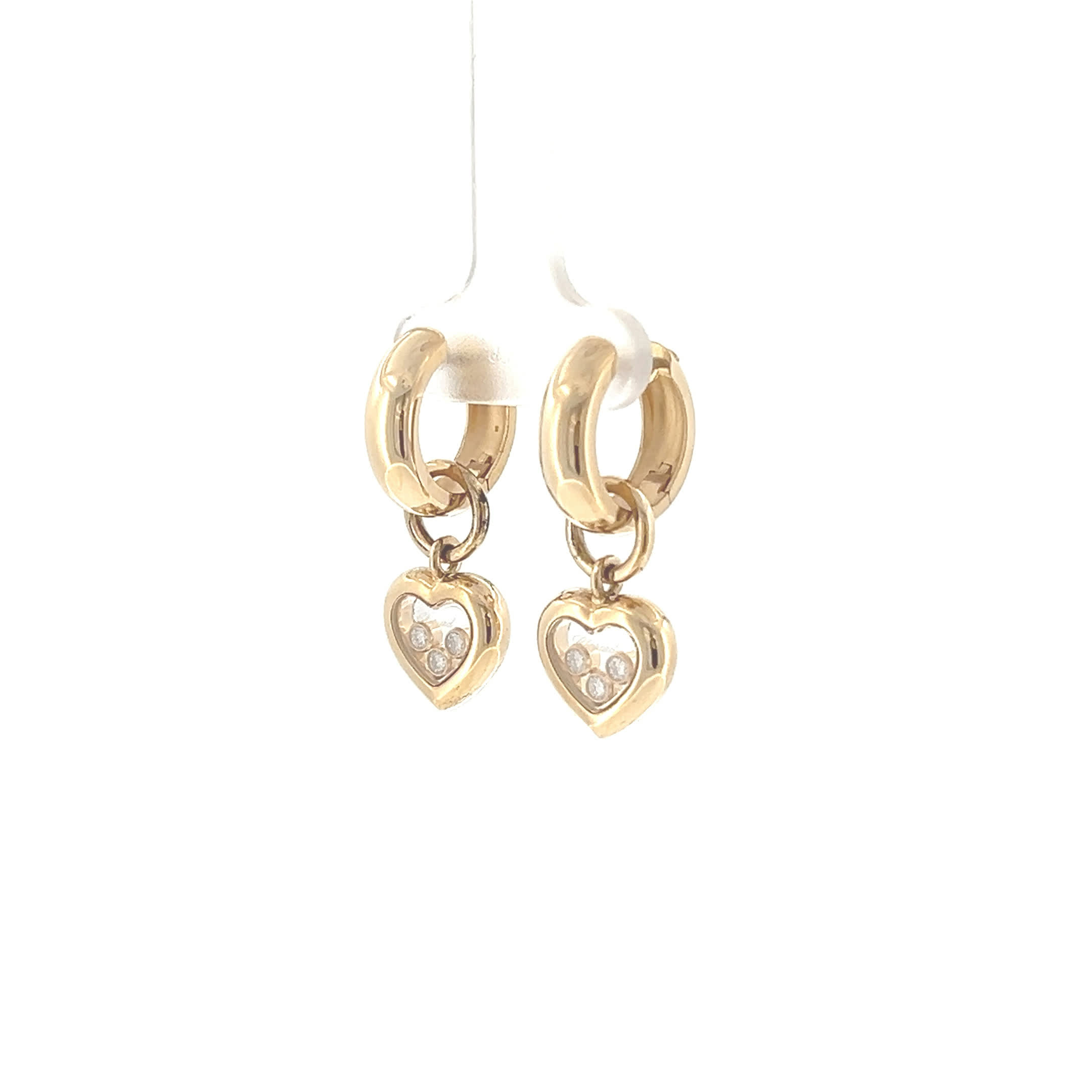 Diese vintage Chopard "Happy Hearts" Creolen verwandeln jeden Moment in pure Magie – wenn die beweglichen Diamanten sanft tanzen und Ihr Lächeln zum Strahlen bringen. Ein Schmuckstück, das nicht nur getragen wird, sondern das Leben feiert und jede Bewegung in einen Augenblick zeitloser Eleganz verwandelt. Die warme Umarmung des 18-Karat Gelbgoldes und das verspielte Funkeln der Brillanten werden zu Ihrem ganz persönlichen Glücksmoment am Ohr.