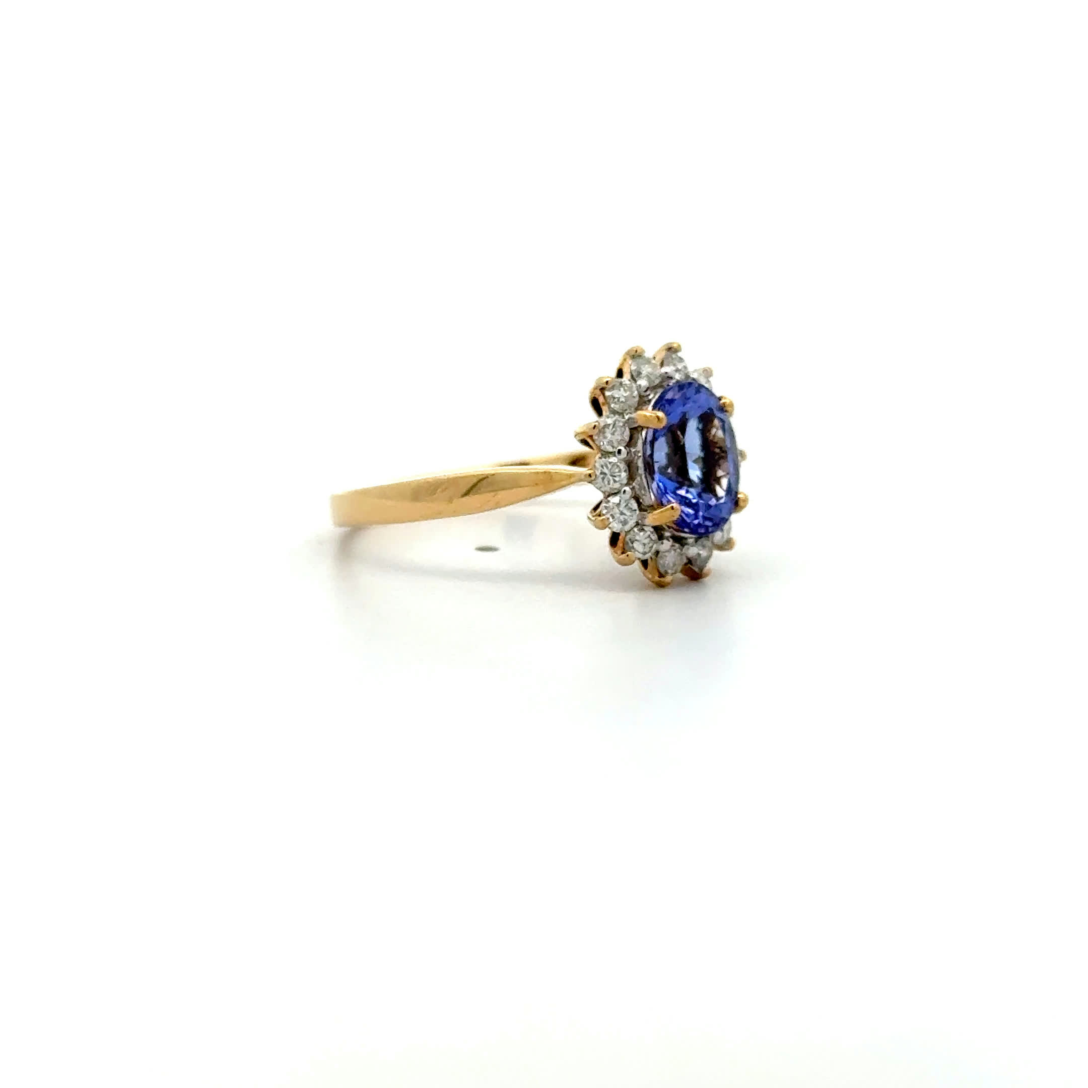 Die "Himmelsblüte" trägt die Poesie vergangener Zeiten in sich – ein Vintage-Entourage Ring, dessen tiefblauer Tansanit wie ein Stück Nachthimmel zwischen funkelnden Diamanten ruht. In warmen 18 Karat Gelbgold gefasst, wird dieser seltene Schatz zum stummen Zeugen großer Gefühle und unvergesslicher Augenblicke. Ein Ring, der nicht nur getragen, sondern gelebt wird – voller Geschichten, die noch geschrieben werden wollen.