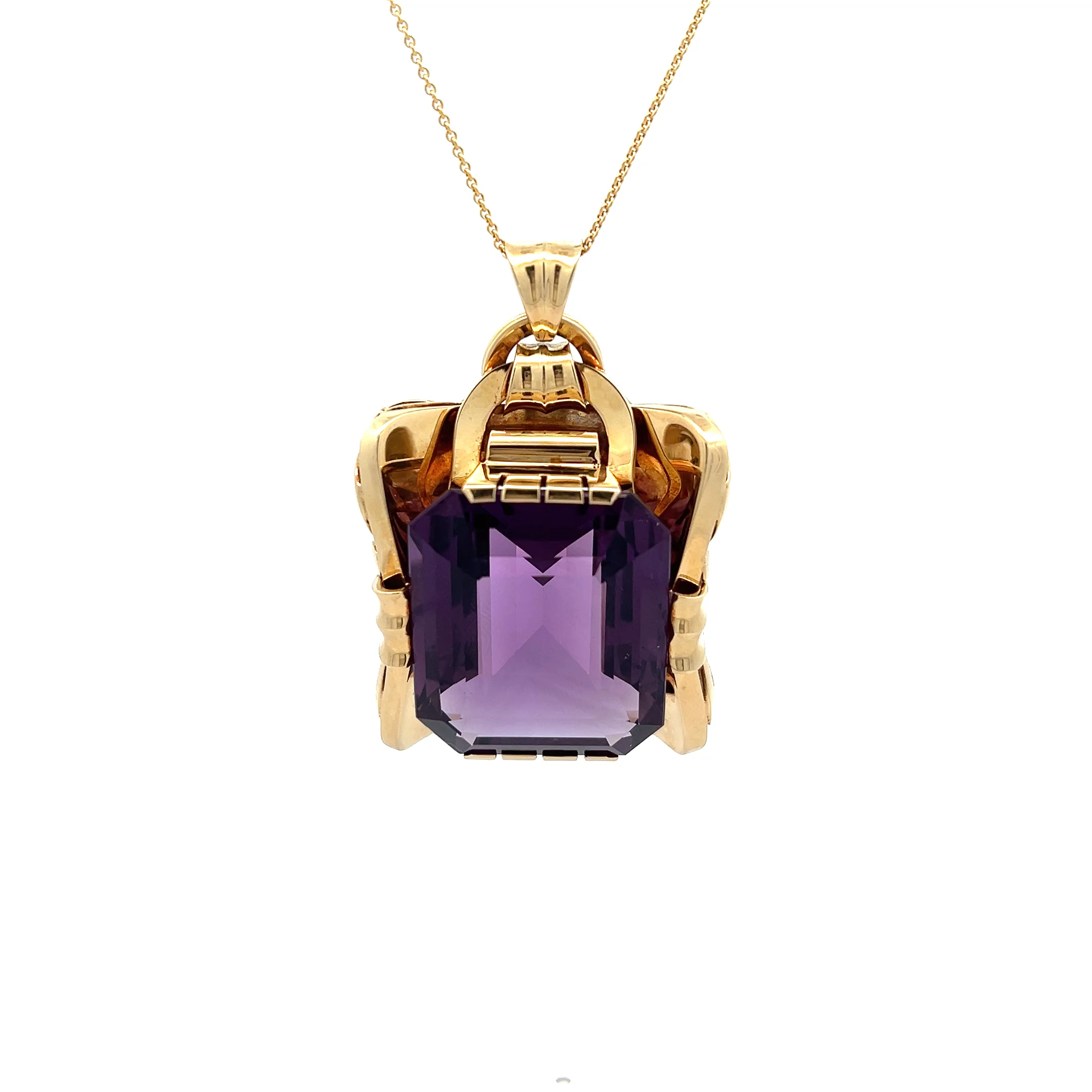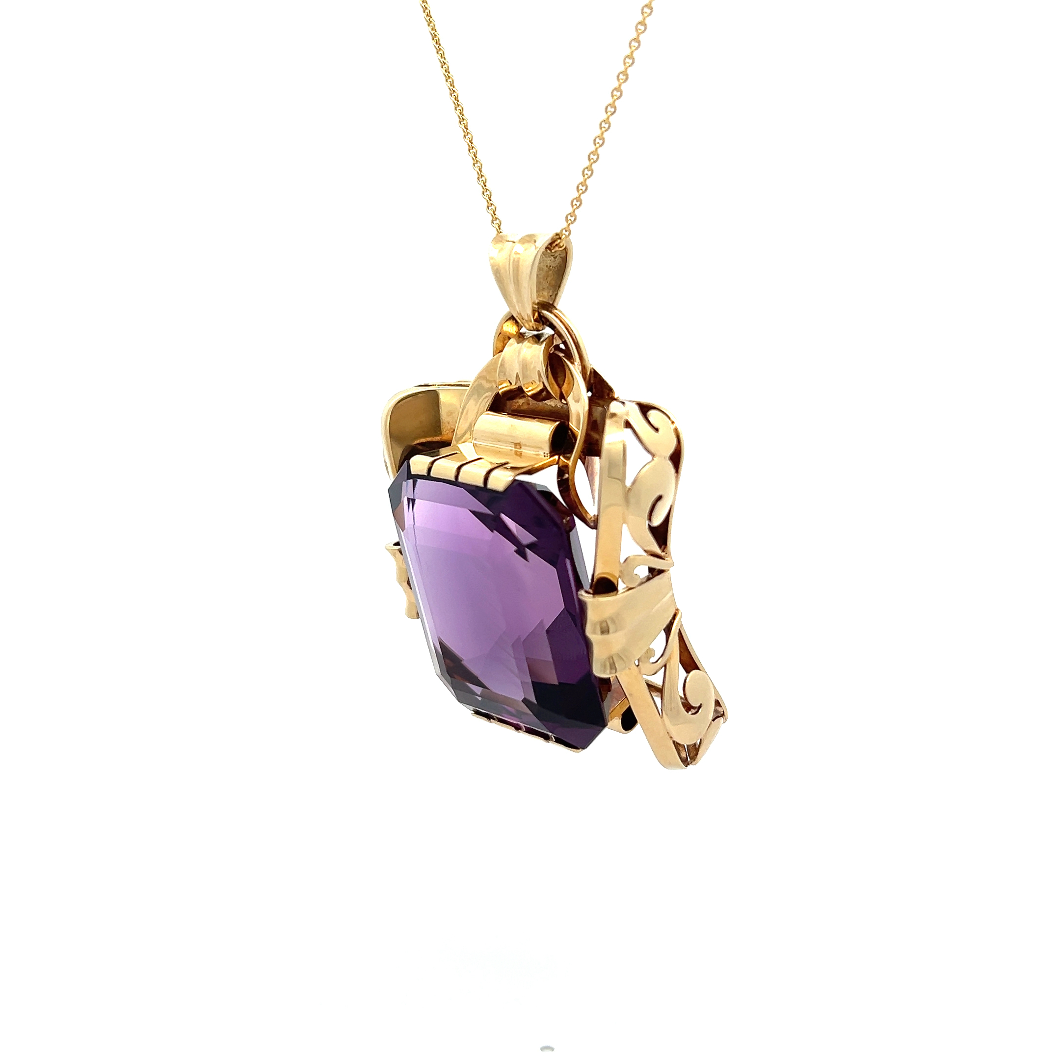 Der "Imperial Violet" aus den goldenen 50er Jahren trägt die königliche Macht des Amethysts in sich – ein Schmuckstück, das Sie zur Herrscherin Ihrer eigenen Geschichte macht. Wenn das warme Gelbgold Ihre Haut berührt und der tiefviolette Stein im Licht tanzt, erwachen Erinnerungen an glamouröse Ballnächte und unvergessliche Begegnungen. Ein Anhänger, der nicht nur getragen, sondern gelebt wird – voller Anmut, Würde und jener seltenen Magie, die nur wahre Vintage-Schätze besitzen.