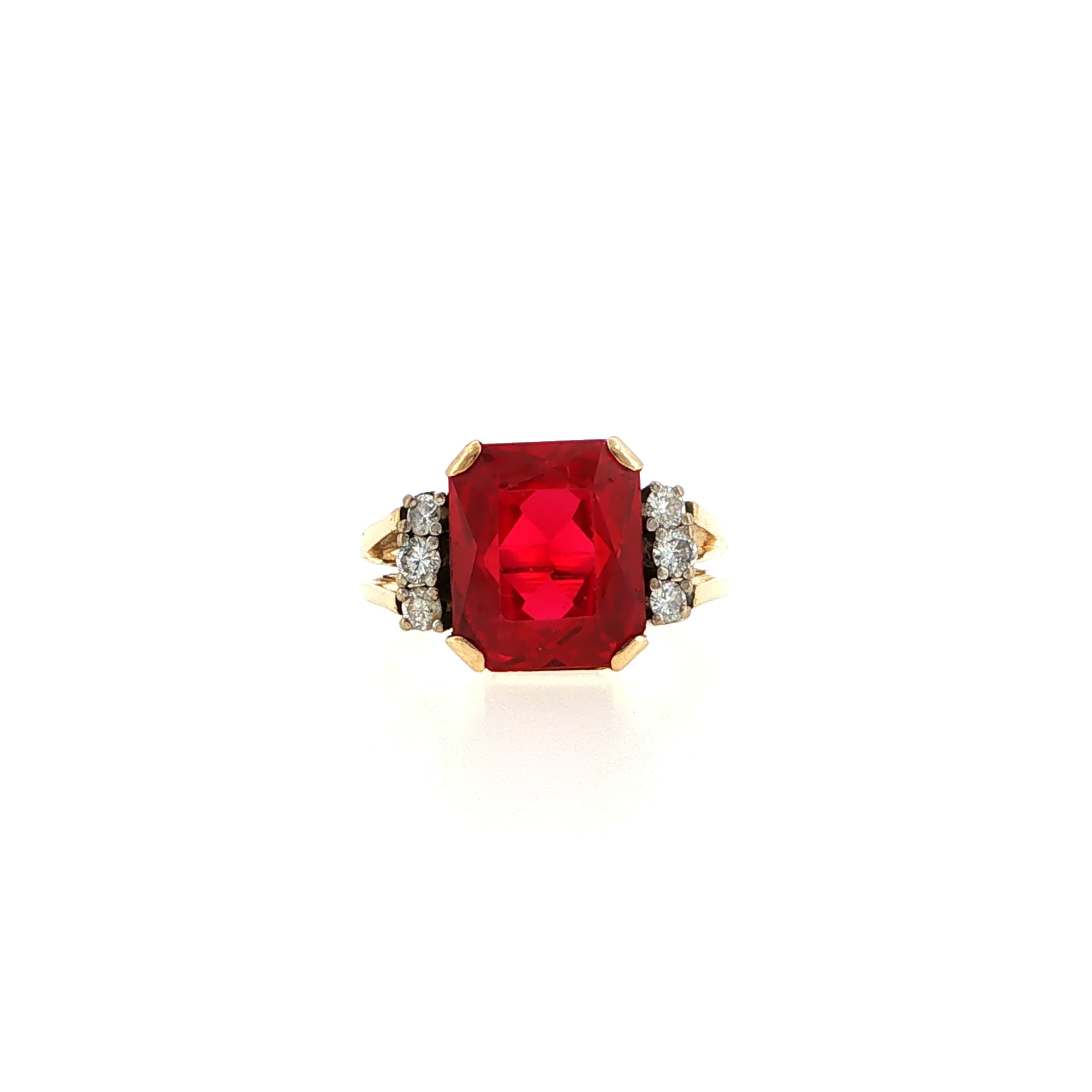 Dieser außergewöhnliche "Intensive Red" - Vintage Ring 14 Karat Gold mit Rubin ist ein Meisterwerk der Goldschmiedekunst aus der exklusiven Kollektion von Juwelier Steiger. In kostbarem 585er Gelbgold gefasst, spiegelt er höchste Qualitätsansprüche wider. Gekrönt mit 6 brillanten Si / G zus. 0.30 ct. , erzählt er von besonderen Momenten und ewiger Verbindung. Ein Symbol für Perfektion und bleibende Werte.