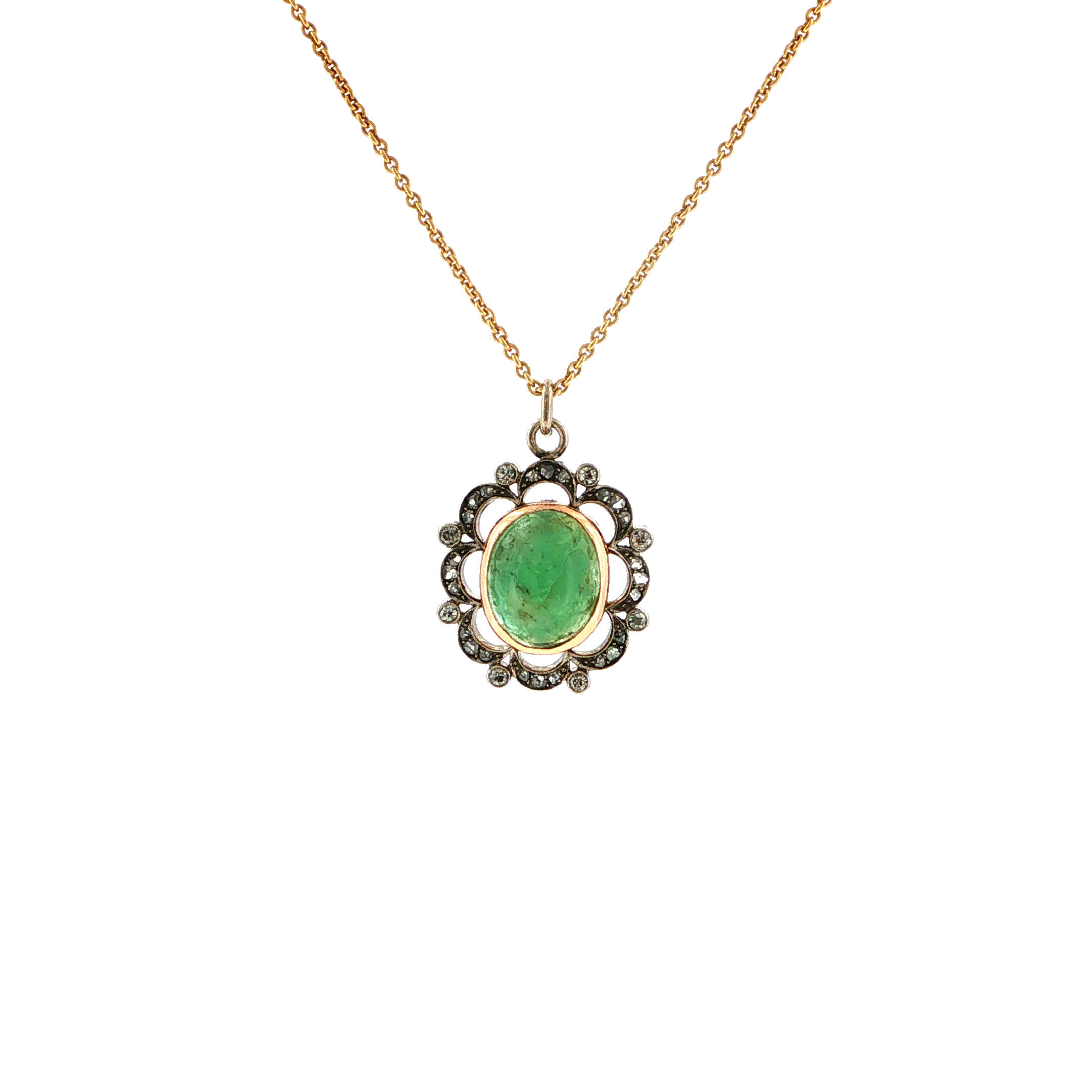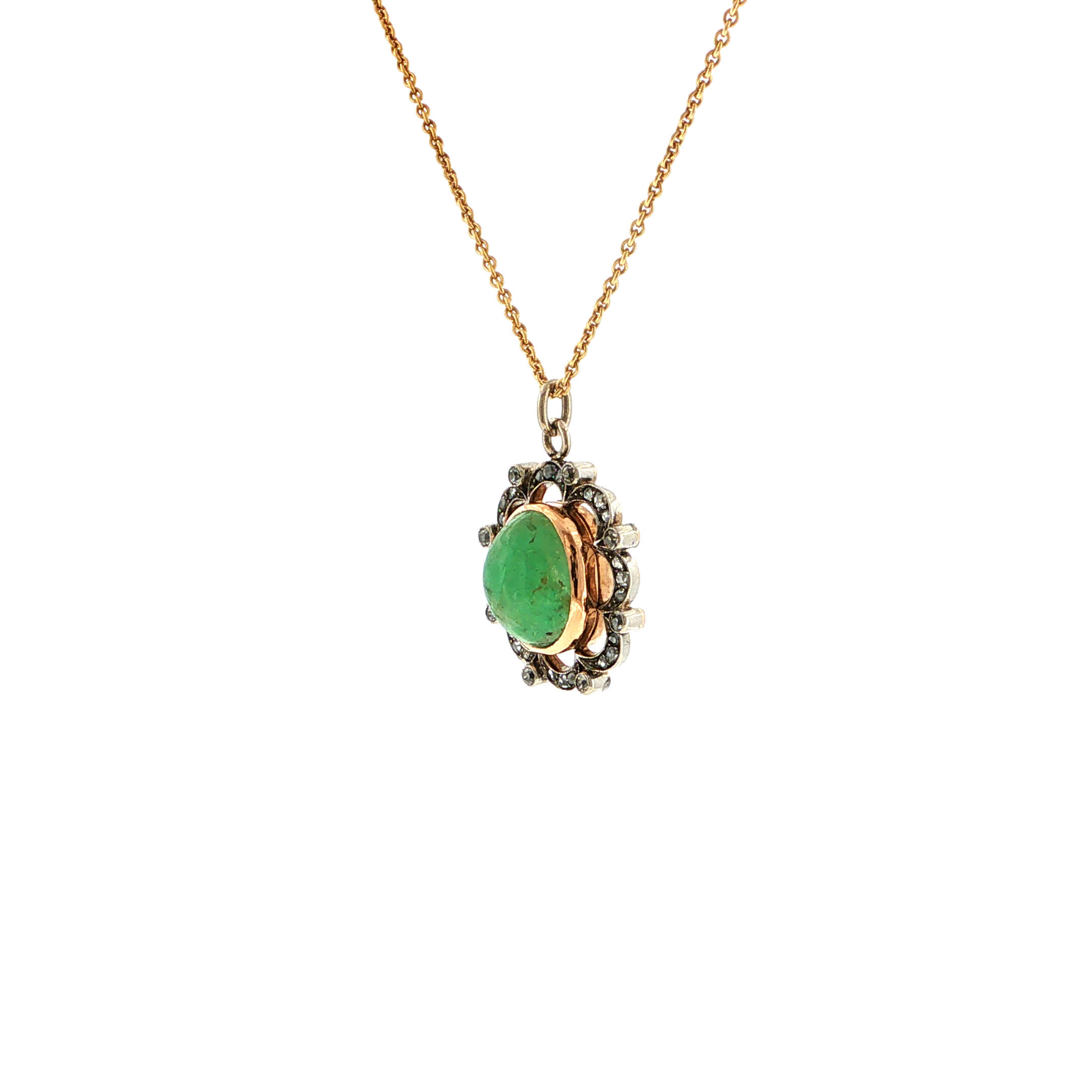 Ein grüner Traum aus vergangenen Zeiten – der "Jardin Vert" Anhänger trägt die Geheimnisse französischer Gärten in seinem jadegrünen Herzen. Wie ein kostbarer Schatz aus einer anderen Epoche schmiegt sich die zarte Roségold-Fassung mit funkelnden Diamantrosen um den seidigen Jade-Cabochon und flüstert von romantischen Momenten und zeitloser Weiblichkeit. Ein Schmuckstück, das nicht nur getragen, sondern erlebt wird – für die Frau, die Eleganz und Geschichte zu schätzen weiß.