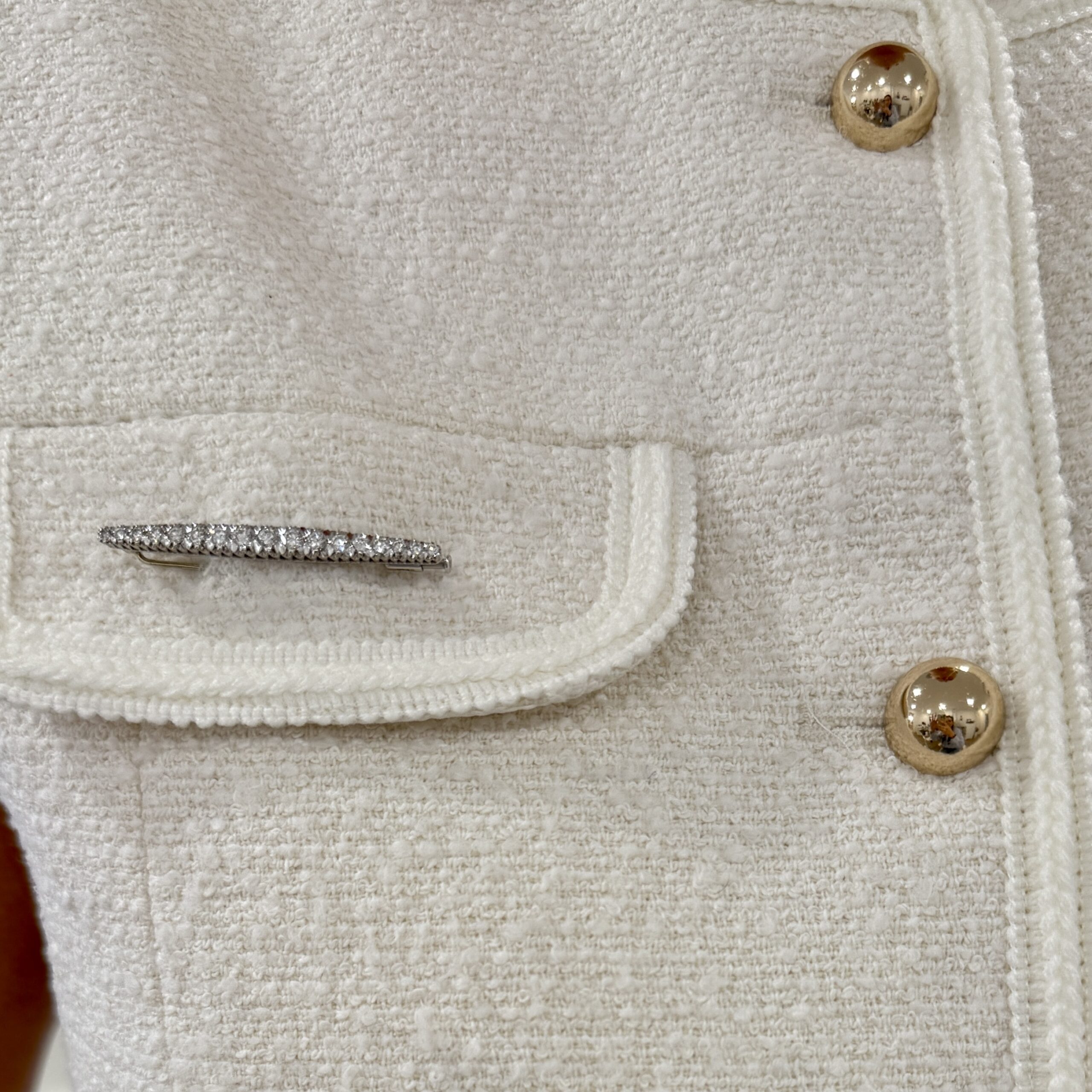 Die "Ligne de Lumière" aus den goldenen Sechzigern ist mehr als eine Brosche – sie ist ein Versprechen an die Ewigkeit. Wenn 0,40 Karat feinste Brillanten auf 750er Weißgold tanzen, entstehen Momente, die das Herz berühren und Erinnerungen für Generationen schaffen. Ein funkelnder Begleiter für Ihre kostbarsten Augenblicke, der jede Begegnung zu etwas Besonderem macht.