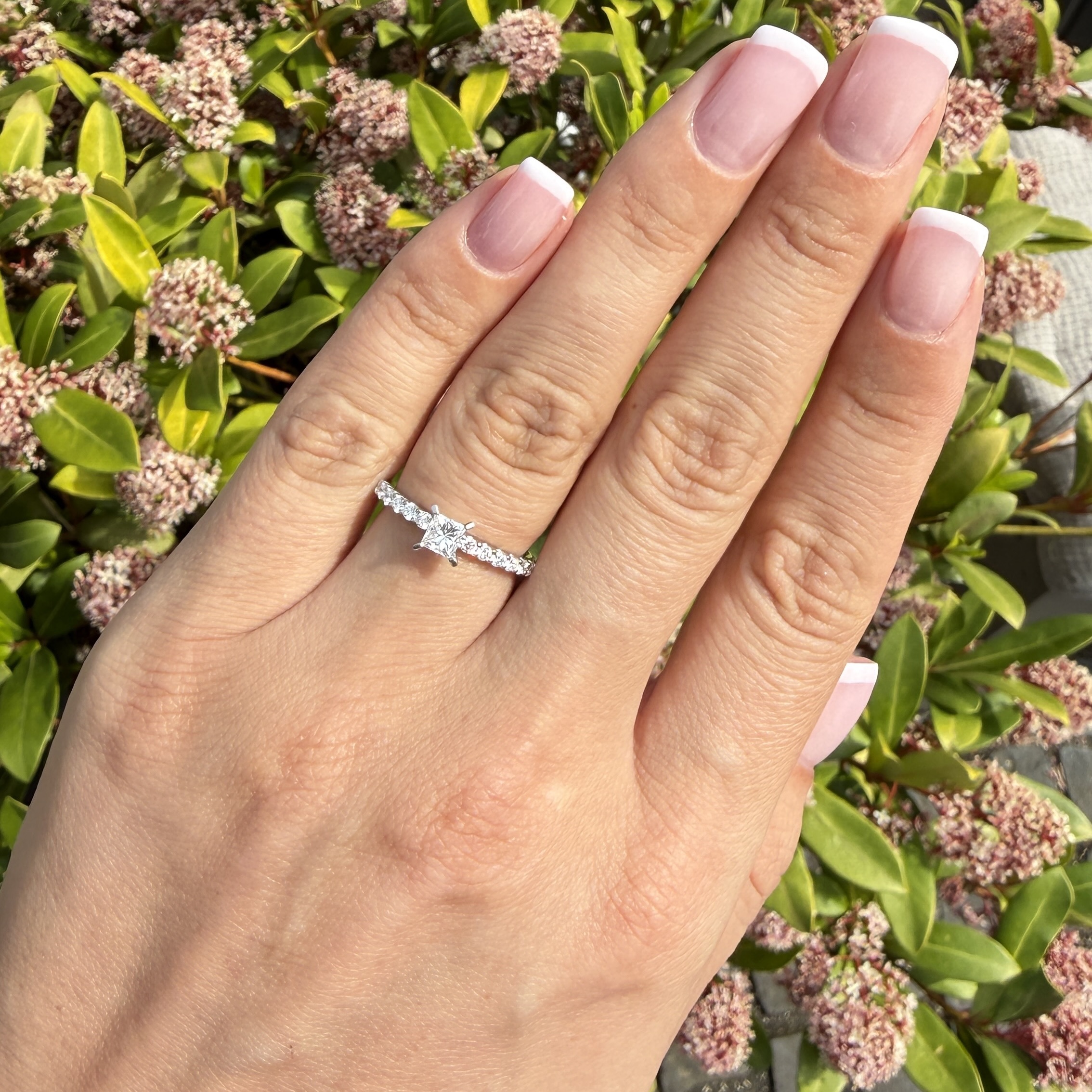 Der „Modern Princess" trägt die Magie unvergesslicher Augenblicke in sich – ein funkelnder Diamant im edlen Princess Cut, der wie ein Versprechen an Ihre Fingerspitze schmiegt. Zwölf zarte Brillanten tanzen entlang der Schiene und flüstern von ewiger Liebe, während das kostbare 18 Karat Weißgold Ihre Träume in zeitlose Eleganz hüllt. Ein Ring, der nicht nur getragen wird, sondern das Herz berührt und jede Geste zu einem strahlenden Moment werden lässt.