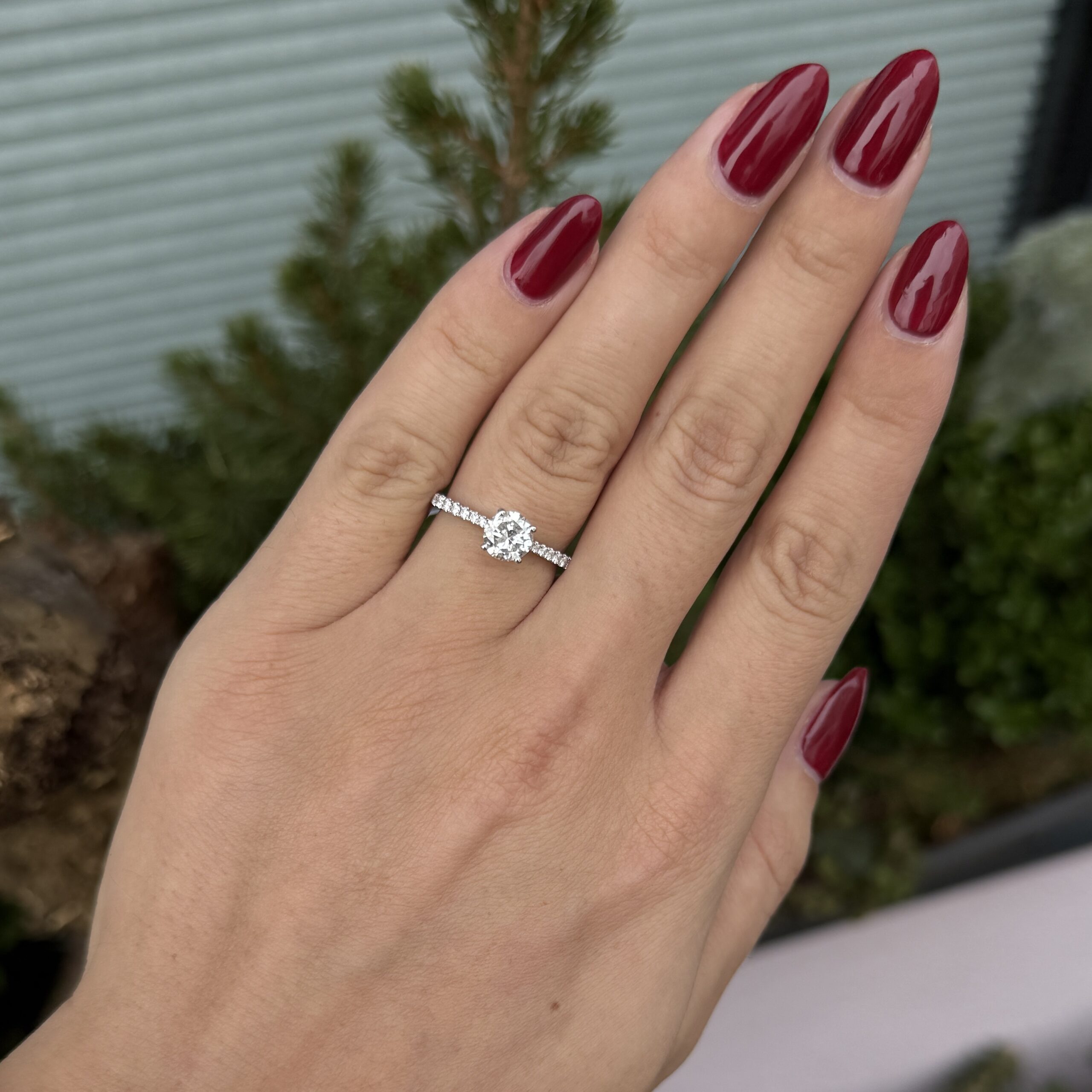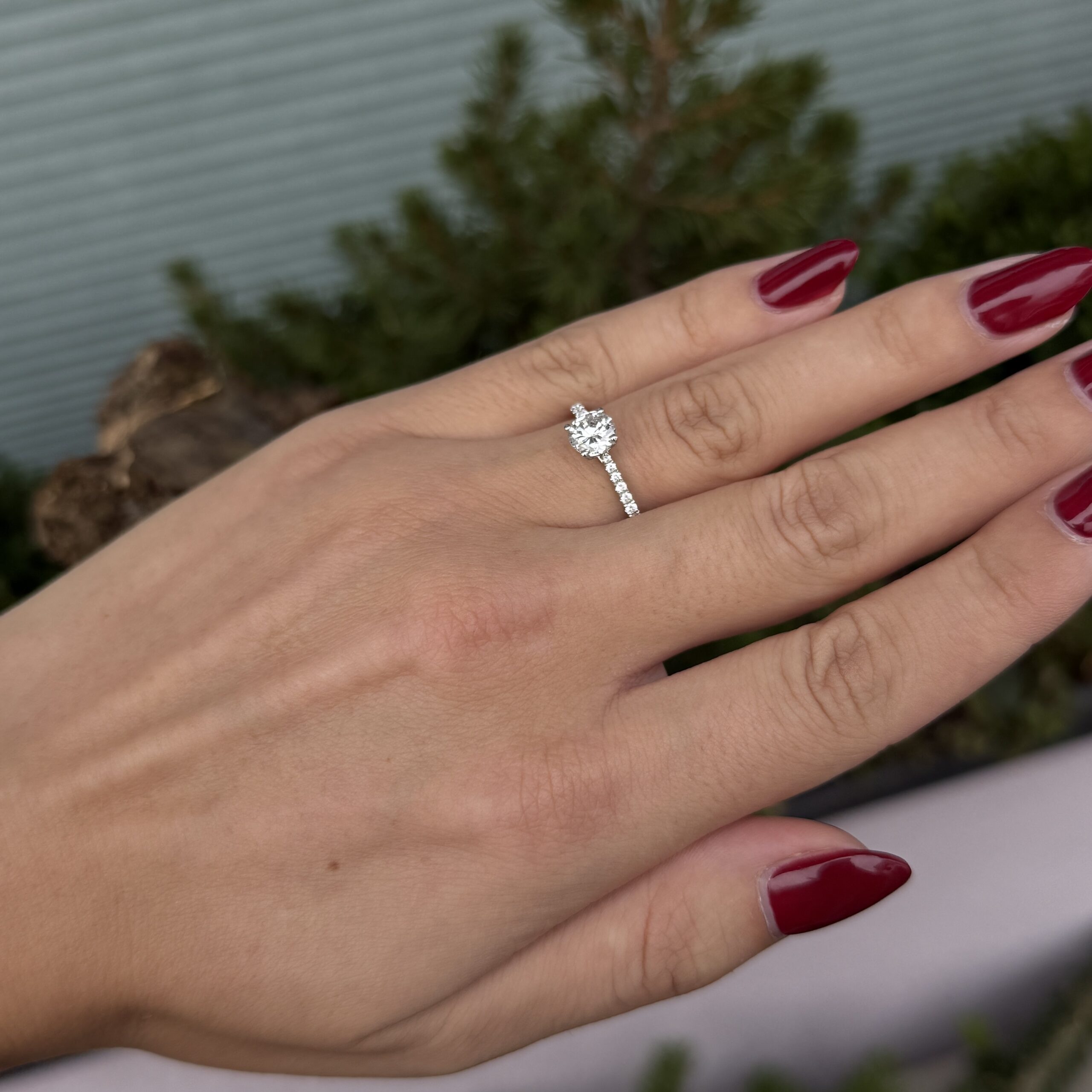 Ein Ring, der Träume Wirklichkeit werden lässt – "My Dream" in kostbarem 18 Karat Weißgold umhüllt einen strahlenden 0,99 Karat Brillanten wie ein Versprechen der Ewigkeit. Seine funkelnden Begleiter erzählen von unvergesslichen Momenten, die das Herz für immer berühren, während sein elegantes Design jeden Blick verzaubert und jede Berührung zu einer zärtlichen Erinnerung macht.