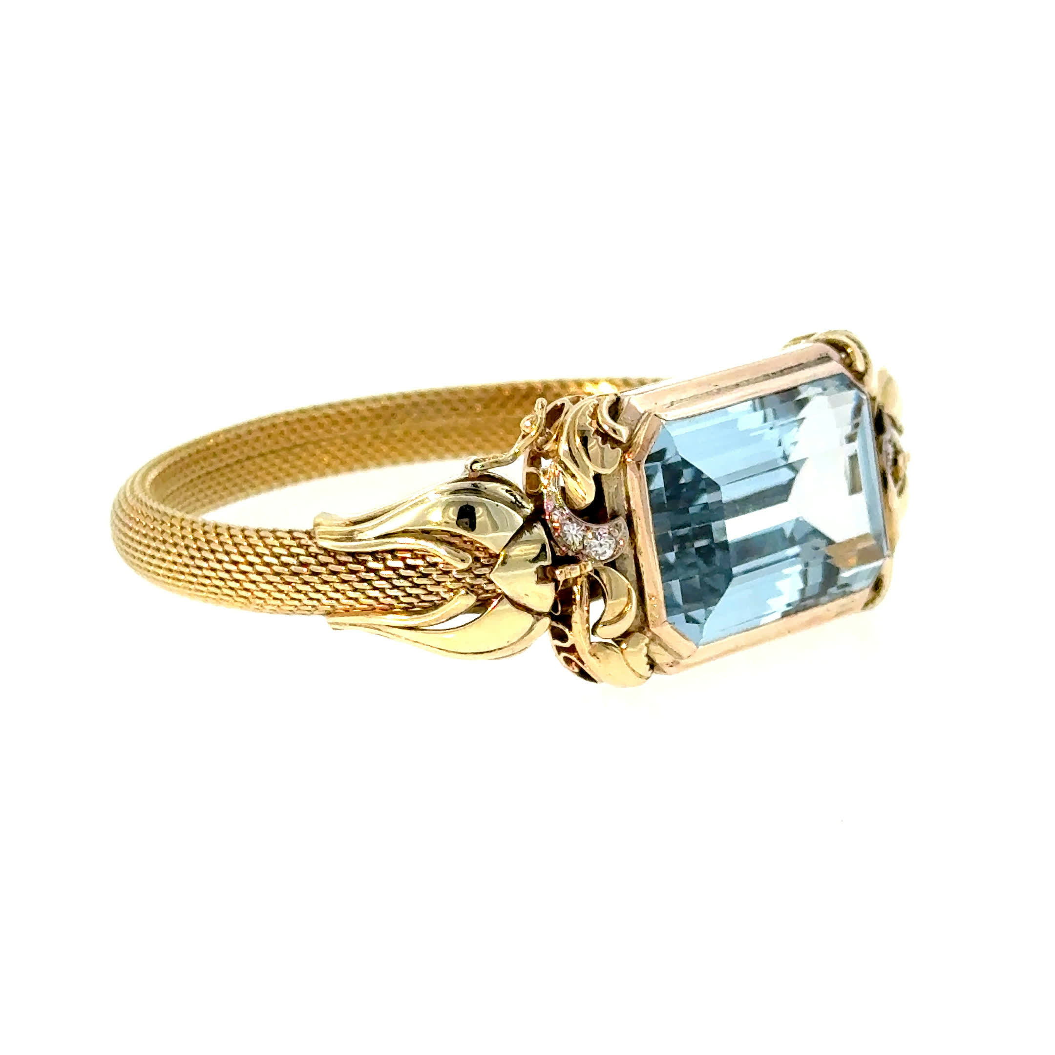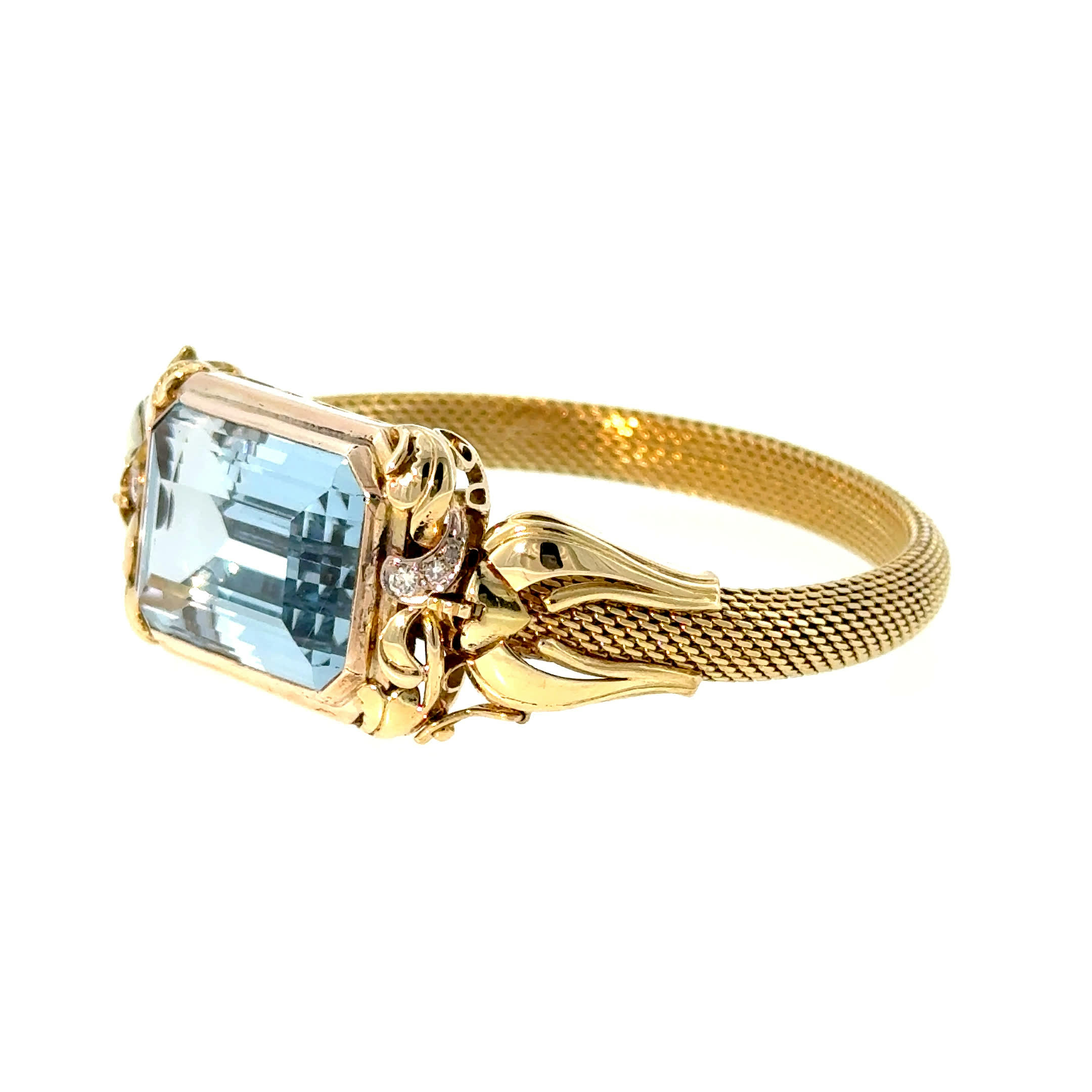 Tauchen Sie ein in die Tiefe des Ozeans – dieses bezaubernde Vintage-Armband aus den 60er Jahren trägt die Seele des Meeres in seinem leuchtenden Aquamarin. Wie ein kostbarer Schatz aus versunkenen Welten schmiegt es sich an Ihr Handgelenk und verwandelt jeden Moment in pure Poesie. Ein Schmuckstück, das nicht nur verzaubert, sondern als elegante Brosche auch Ihre kühnsten Träume von zeitloser Schönheit wahr werden lässt.