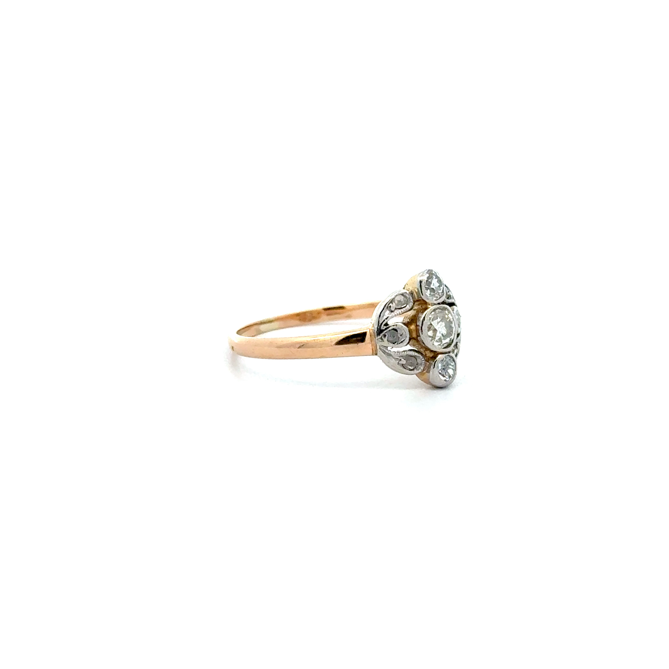Ein Hauch von 1920 – dieser antike Goldring trägt die Geheimnisse vergangener Zeiten in sich und wartet darauf, neue Liebesgeschichten zu schreiben. Seine getönten Diamanten im Altschliff funkeln wie warme Sterne einer längst vergangenen Epoche und verleihen jedem Moment eine zeitlose Romantik. Ein Schmuckstück, das nicht nur schmückt, sondern die Seele berührt und Träume von ewiger Eleganz wahr werden lässt.