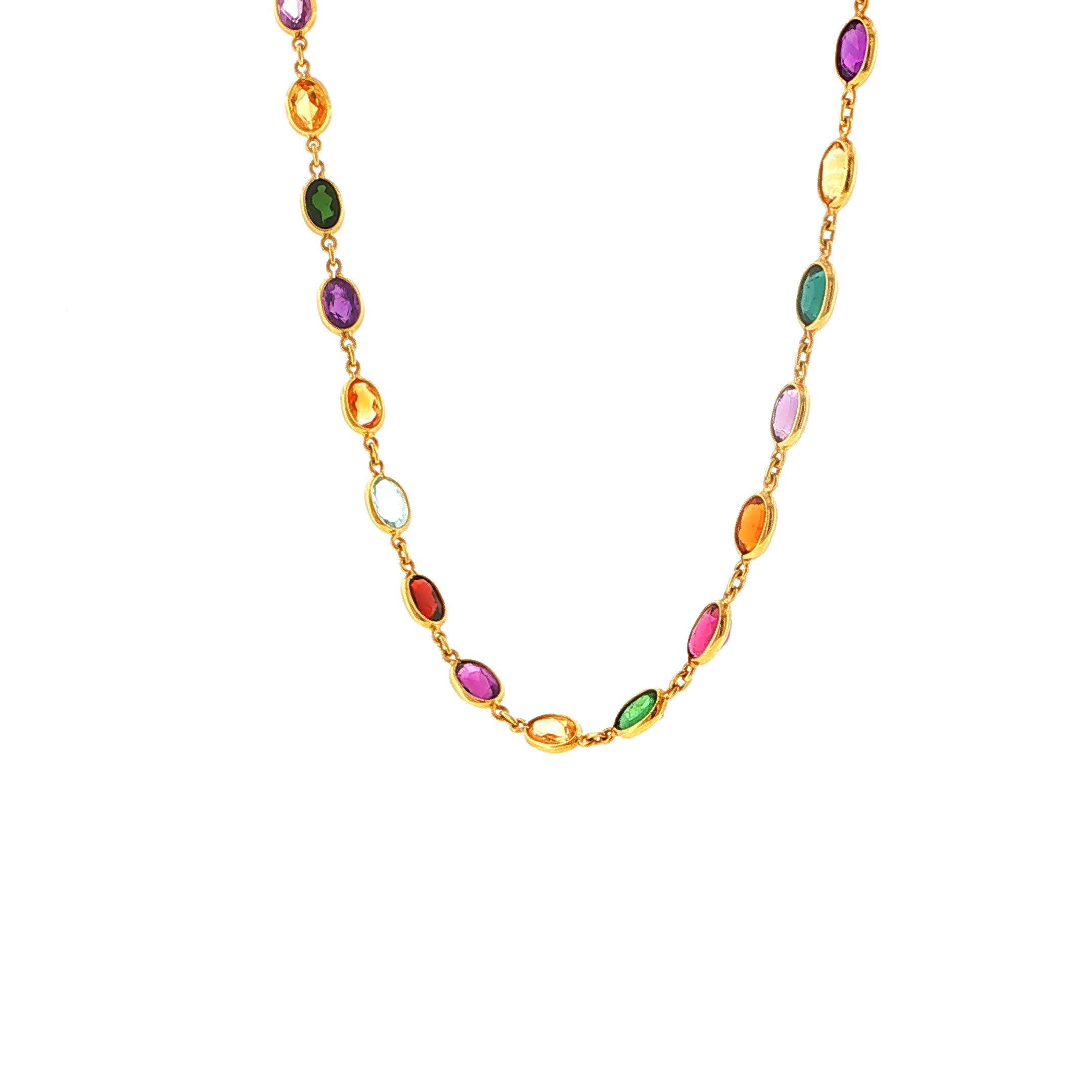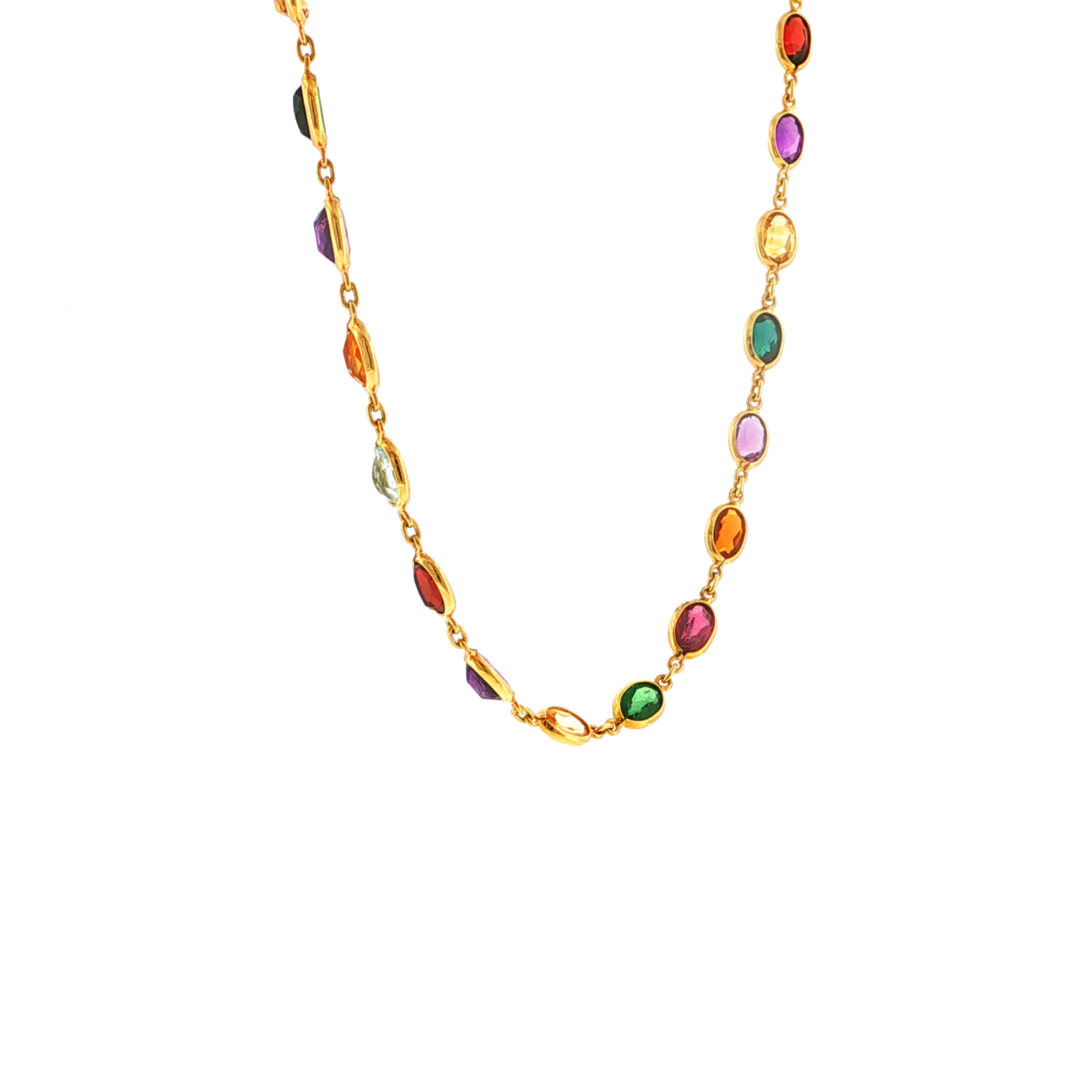 Wie ein Regenbogen nach dem Sturm legt sich dieses zauberhafte Vintage-Collier um Ihren Hals und verwandelt jeden Moment in pure Magie. Die kostbaren Edelsteine in warmem 18 Karat Gold gefasst flüstern Geschichten von Hoffnung und neuen Anfängen, während sie Ihr Dekolleté in ein Meer aus schimmernden Farben tauchen. Ein Schmuckstück, das nicht nur getragen wird – es wird gelebt, gefühlt und für immer im Herzen bewahrt.