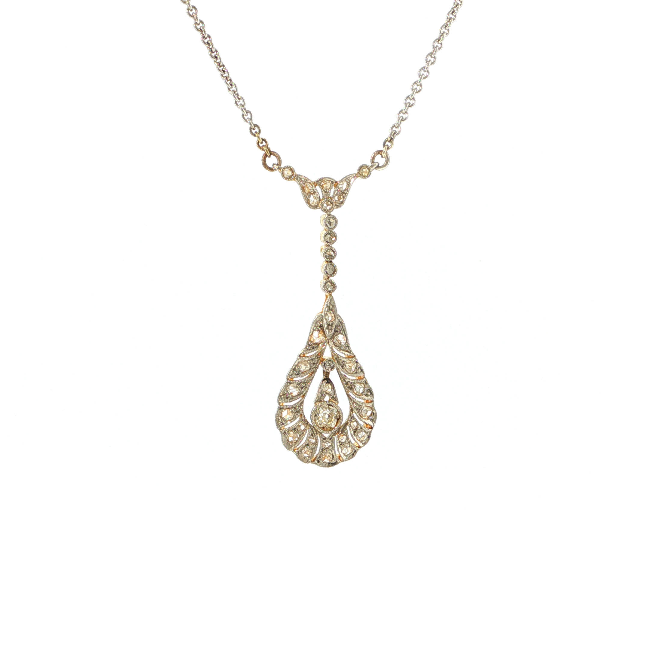 Dieses zauberhafte Vintage-Collier aus vergangenen Zeiten trägt die Seele unzähliger kostbarer Momente in sich – wenn Altschliff-Diamanten wie Sterne am Himmel funkeln und jeder Blick eine Geschichte von Eleganz und zeitloser Romantik erzählt. Ein Schmuckstück, das nicht nur getragen wird, sondern das Herz berührt und jeden Augenblick in pure Magie verwandelt.