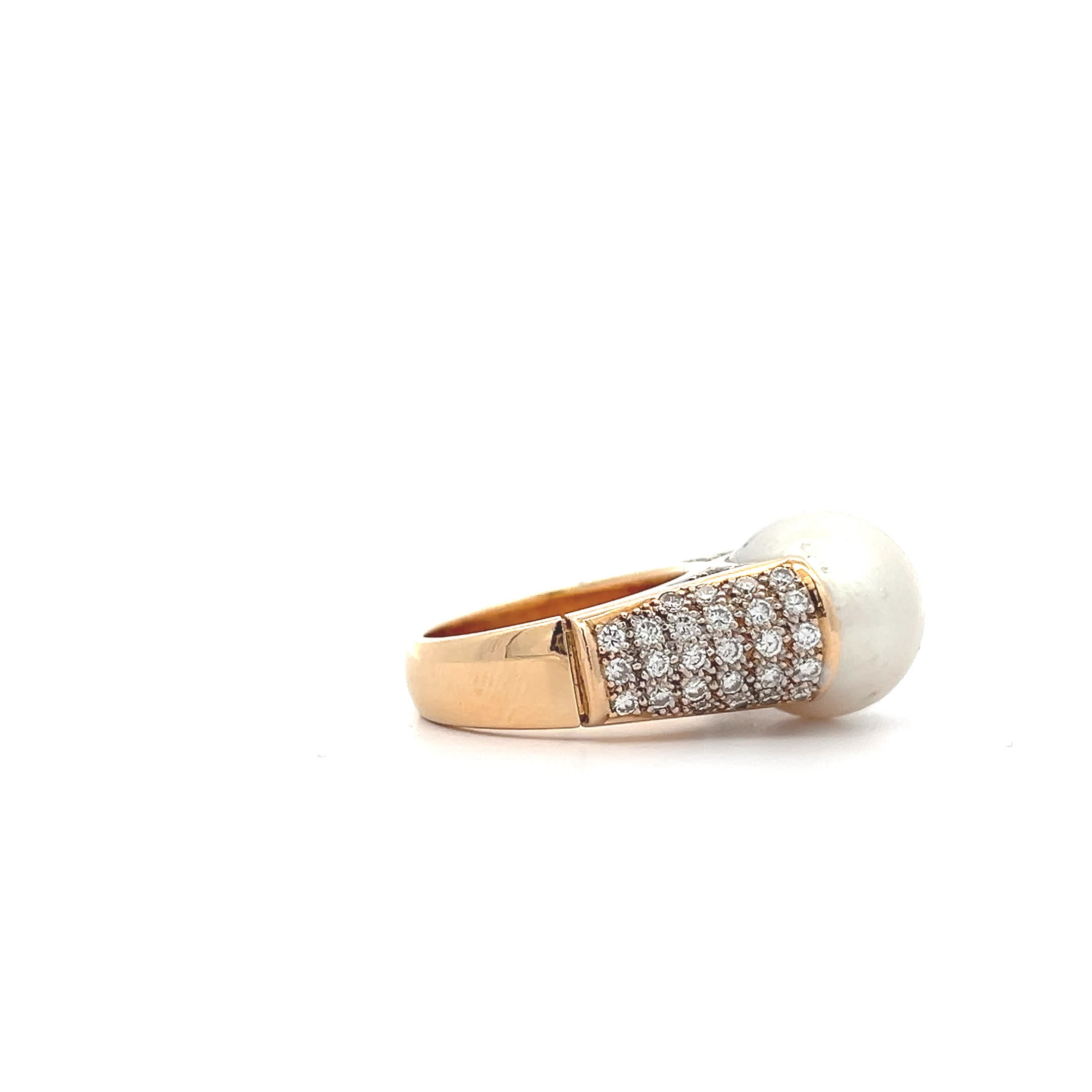 Ein Ring, der Generationen von Träumen in sich trägt – die sanfte Perle ruht wie ein Mondschein zwischen funkelnden Brillanten und erzählt von unvergesslichen Momenten voller Zärtlichkeit. In warmem Gelbgold gefasst, wird dieser Vintage-Schatz zum stillen Begleiter Ihrer kostbarsten Erinnerungen. Spüren Sie, wie Eleganz und Zeitlosigkeit an Ihrem Finger zu einem Gefühl von unendlicher Schönheit verschmelzen.
