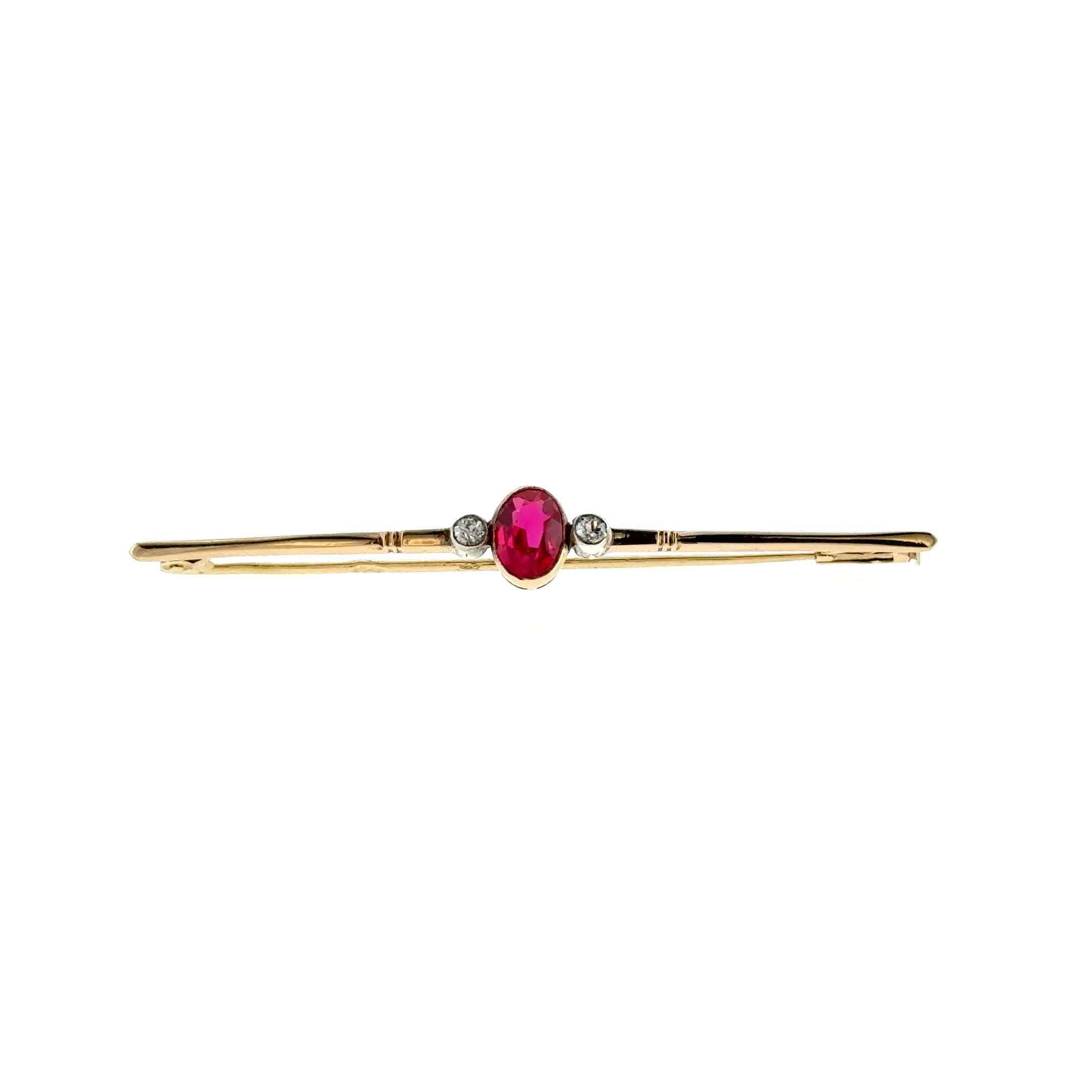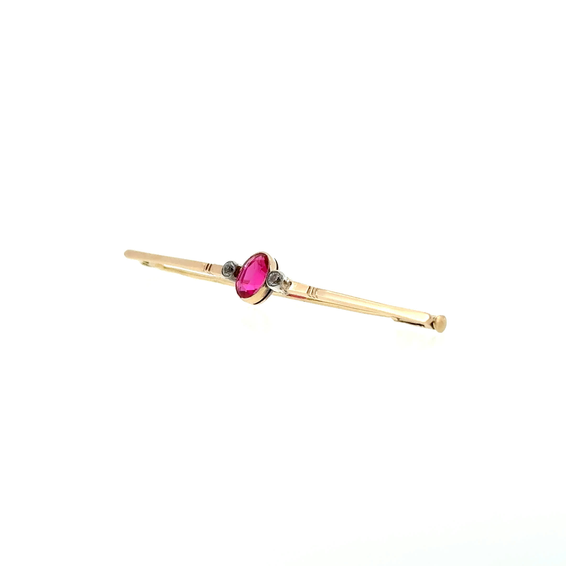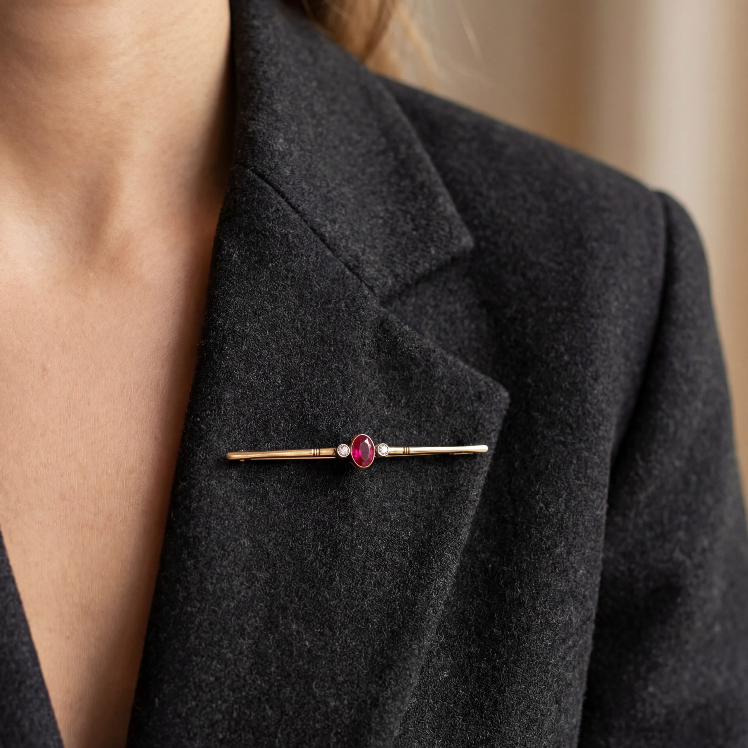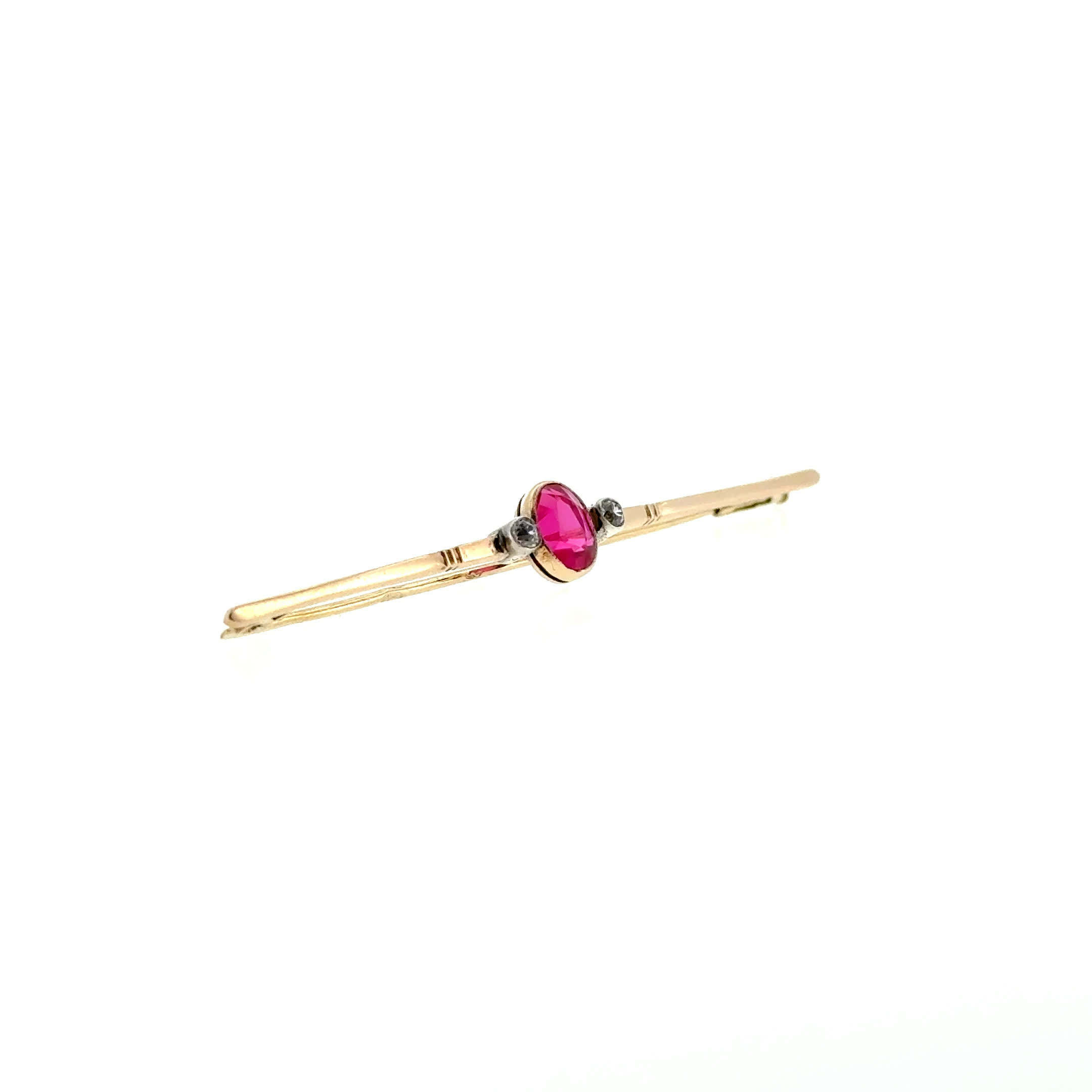 Die "Petit Élégance" flüstert Geschichten vergangener Zeiten, wenn funkelnde Altschliff-Diamanten auf den samtigen Glanz des synthetischen Rubins treffen – ein Kuss aus 585er Gelbgold, der Eleganz und Romantik in einem zauberhaften Moment vereint. Zart wie ein Geheimnis, kraftvoll wie eine Erinnerung, verwandelt diese Vintage-Nadel jeden Augenblick in pure Poesie. Ein Schmuckstück, das nicht nur getragen wird, sondern das Herz berührt und die Seele zum Strahlen bringt.