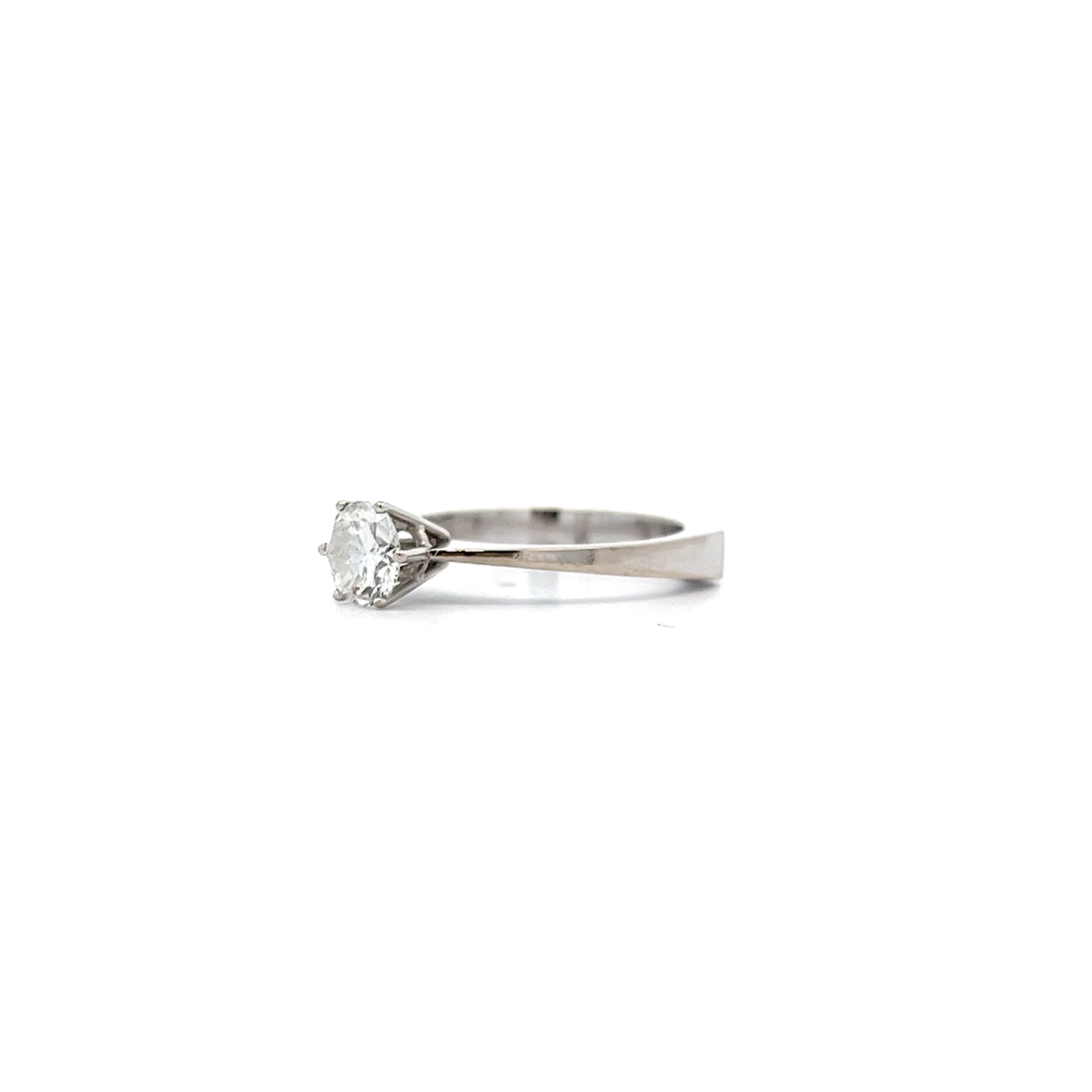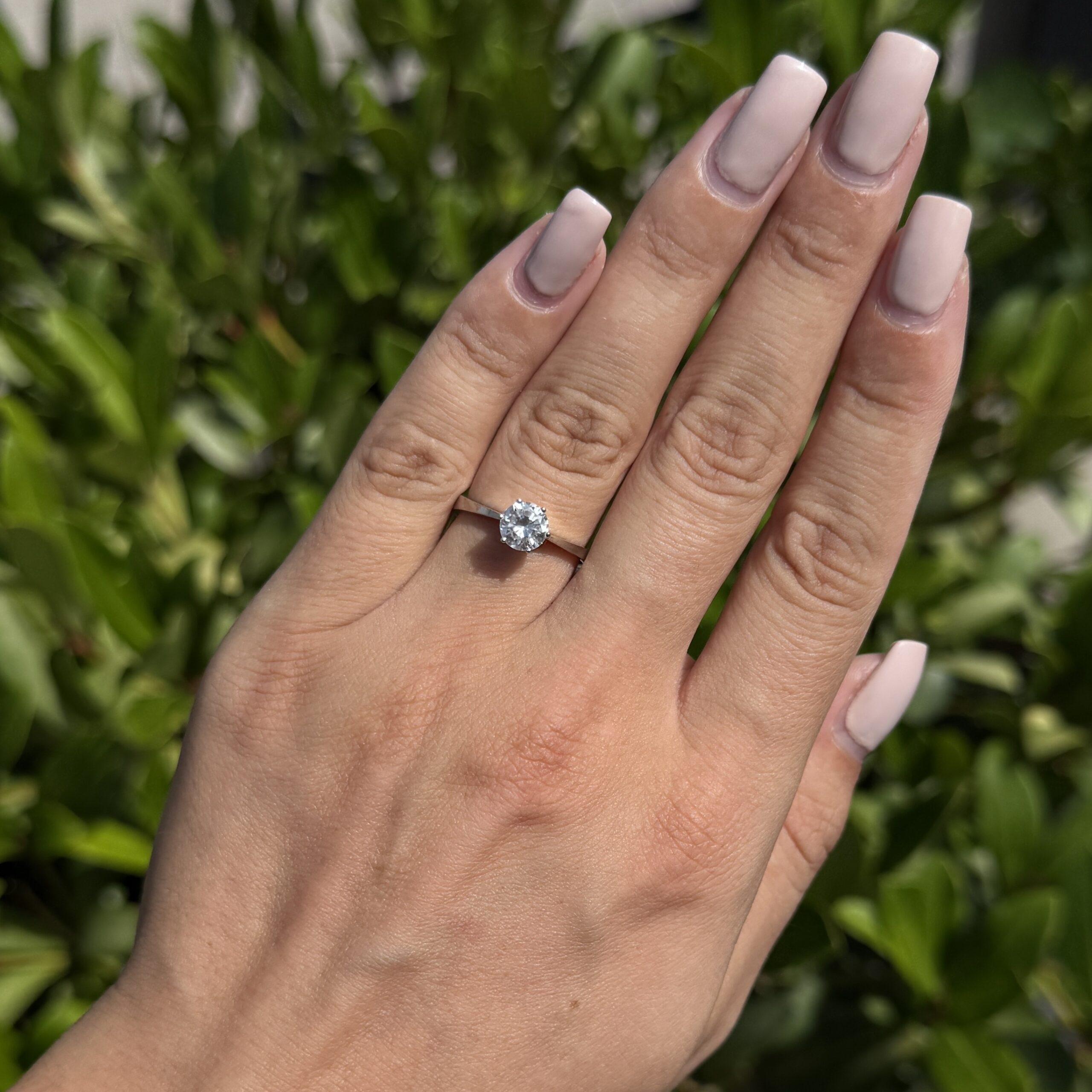Ein einzelner Diamant, gefasst in kühles Weißgold – schlicht, doch voller Ausdruck. Mit 0,91 Carat trägt dieser Solitär nicht nur Licht, sondern auch Bedeutung. Er steht für einen Moment, der bleibt, für ein Gefühl, das klar und ehrlich ist.