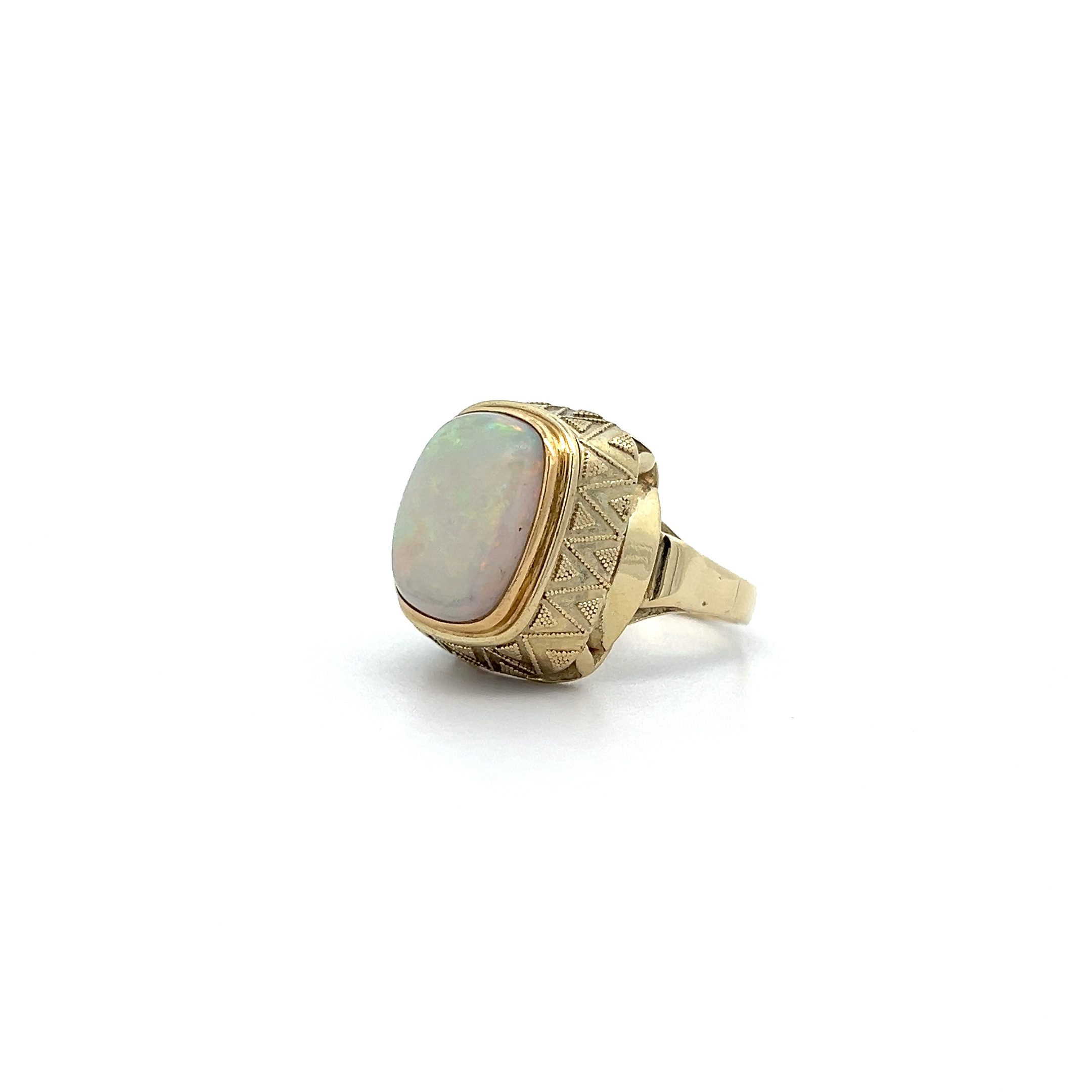 Dieser außergewöhnliche "Regenbogenlicht" - Vintage Ring aus 14kt Gelbgold mit Opal aus der exklusiven Kollektion von Juwelier Steiger ist ein Meisterwerk der Goldschmiedekunst. In kostbarem 585er Gelbgold gefasst, spiegelt er höchste Qualitätsansprüche wider. Ein Symbol für Perfektion und bleibende Werte.