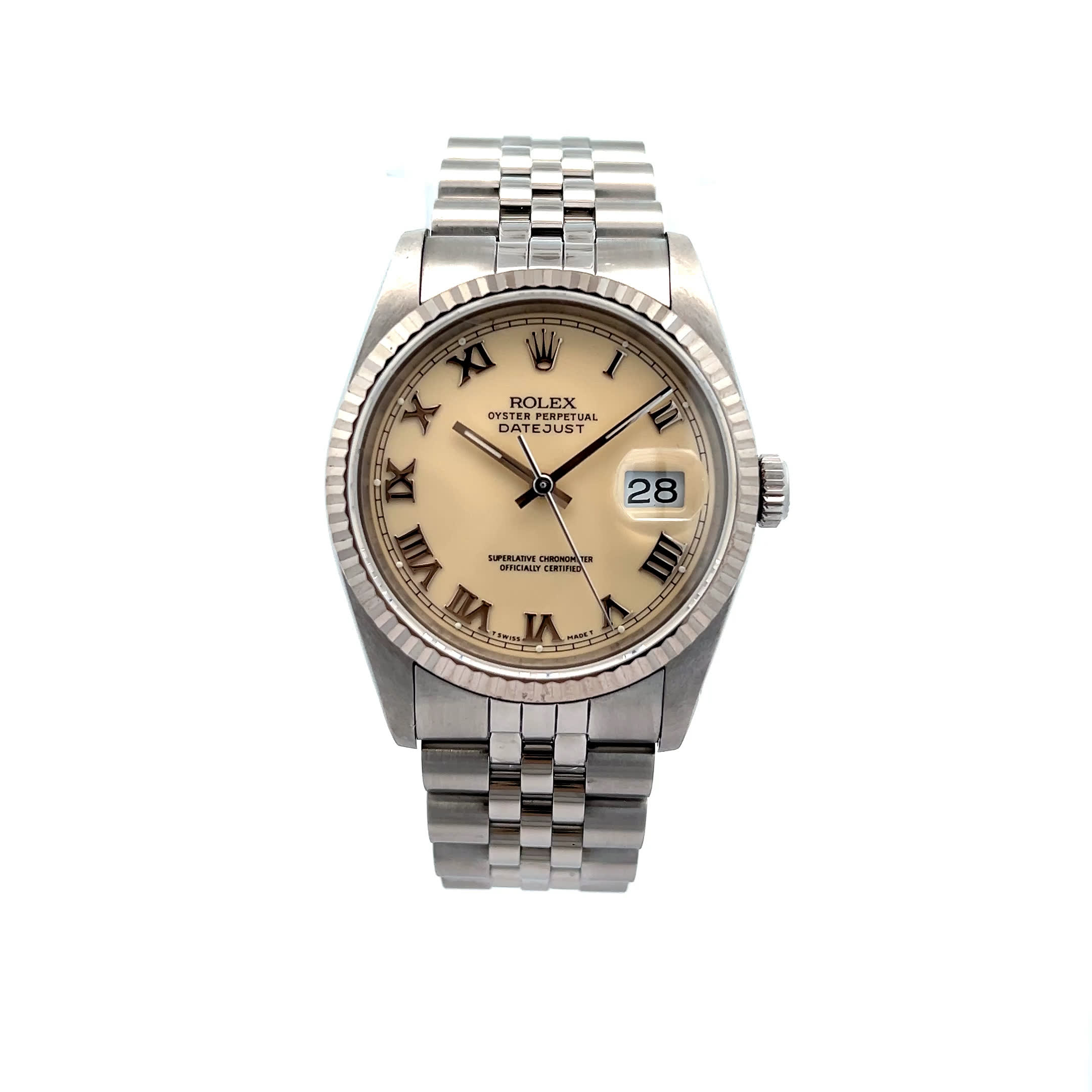 Eine Rolex Datejust aus dem Jahr 1989 – ein Zeuge großer Momente und stiller Triumphe, der seit über drei Jahrzehnten die Zeit nicht nur misst, sondern prägt. Ihr cremefarbenes Zifferblatt strahlt die Wärme unzähliger Erinnerungen aus, während das edle Stahlgehäuse von Beständigkeit und zeitloser Eleganz erzählt. An Ihrem Handgelenk wird sie zur Begleiterin neuer Kapitel – für Augenblicke, die Geschichte schreiben.