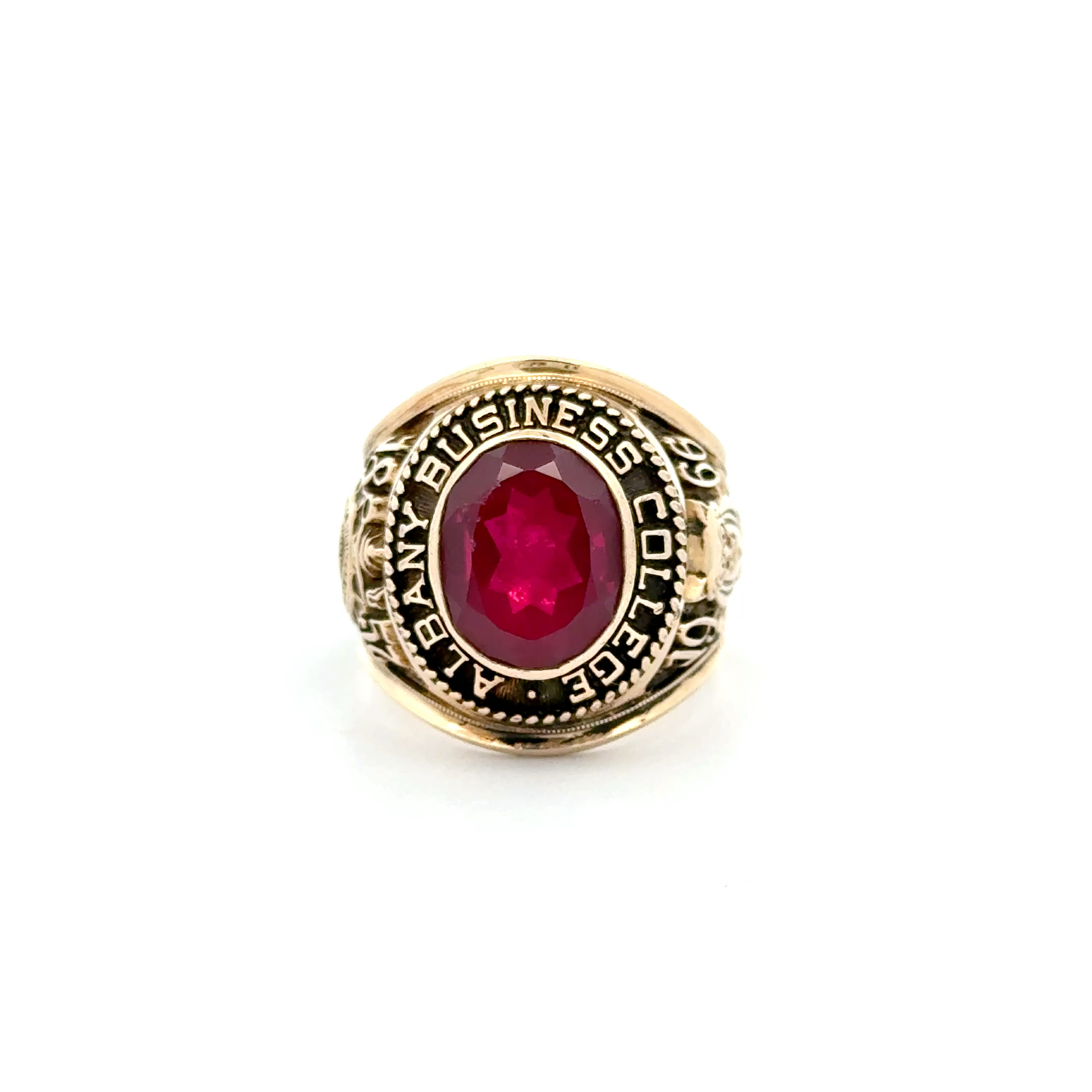 Der "Royal Ruby" trägt die Seele vergangener Zeiten in sich – ein College Ring, der von Stolz, Tradition und unvergesslichen Momenten der Jugend erzählt. Sein leuchtender Rubin im warmen 10 Karat Gelbgold flüstert Geschichten von Erfolg und Zusammengehörigkeit, während die sanften Gebrauchsspuren wie zarte Erinnerungen an gelebte Träume erscheinen. Ein Ring, der nicht nur getragen wird, sondern der zum treuen Begleiter wird – für alle, die ihre Vergangenheit ehren und ihre Zukunft mit Leidenschaft gestalten.