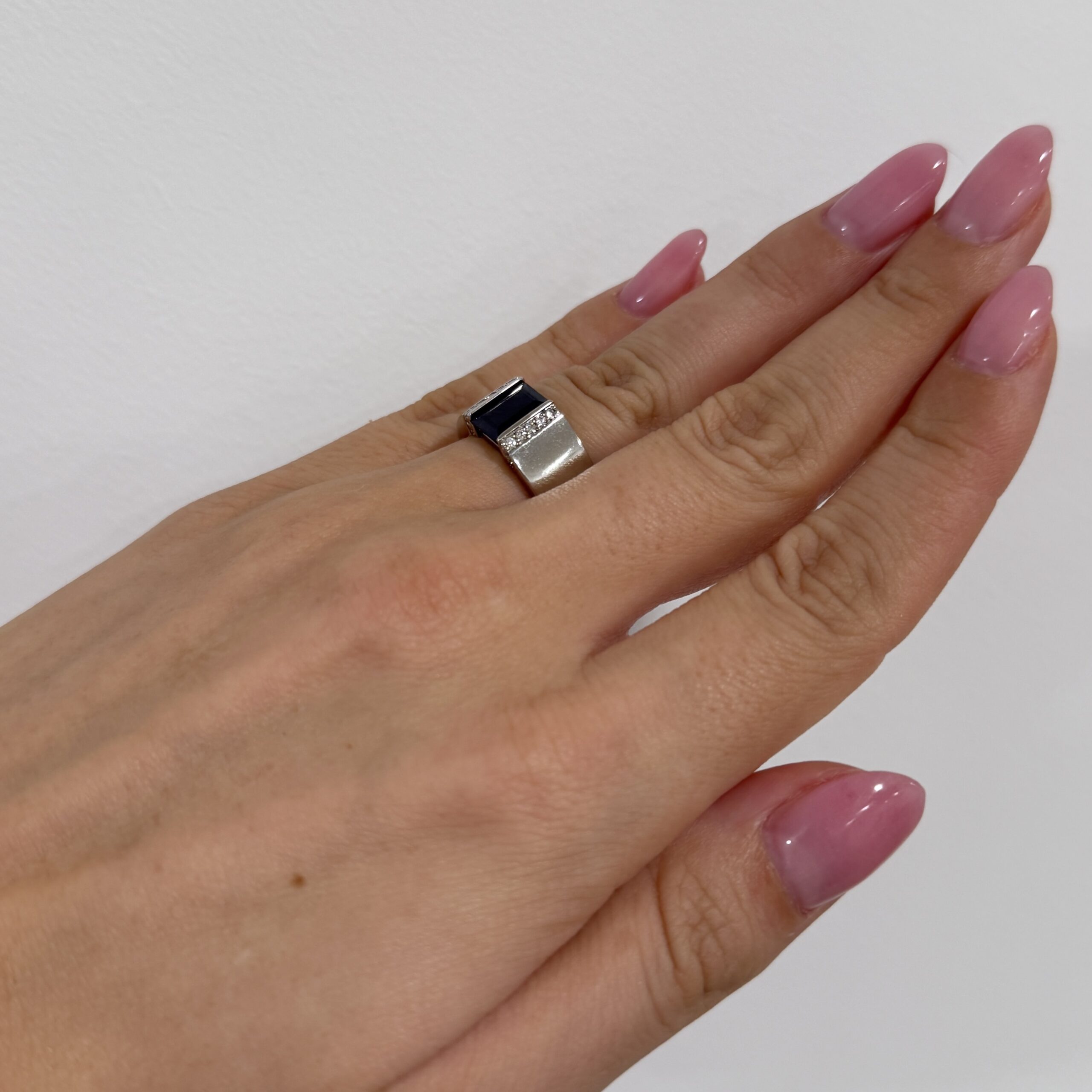 Der tiefblaue Saphir in diesem edlen Vintage-Ring erzählt Geschichten von ewiger Eleganz und stillen Momenten des Glücks. Sein sanftes Funkeln in zartem Weißgold wird Sie durch alle bedeutsamen Augenblicke Ihres Lebens begleiten. Ein Schmuckstück, das nicht nur getragen, sondern gefühlt wird – pure Poesie am Finger.