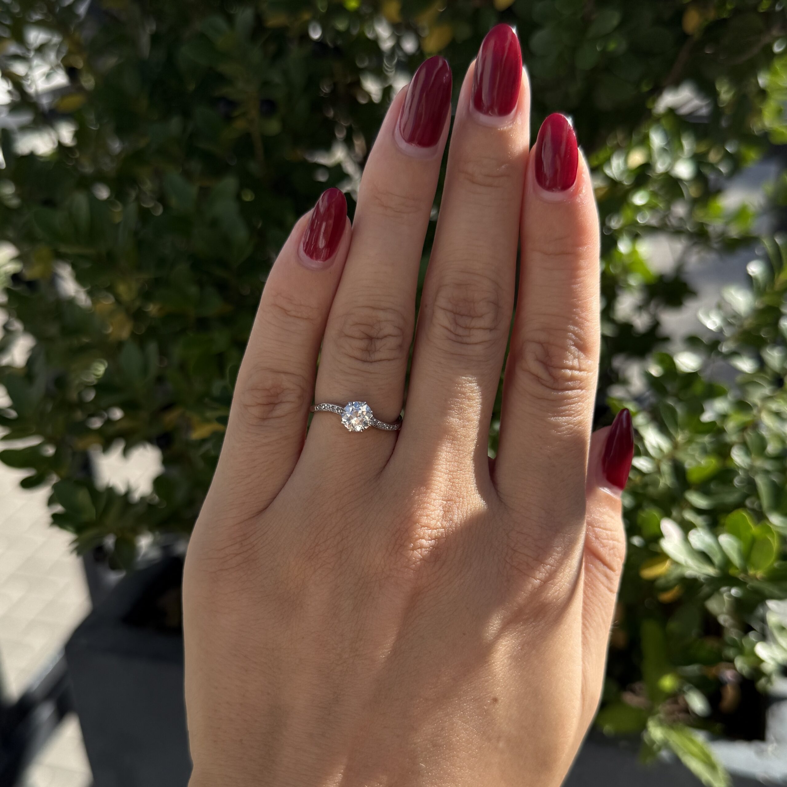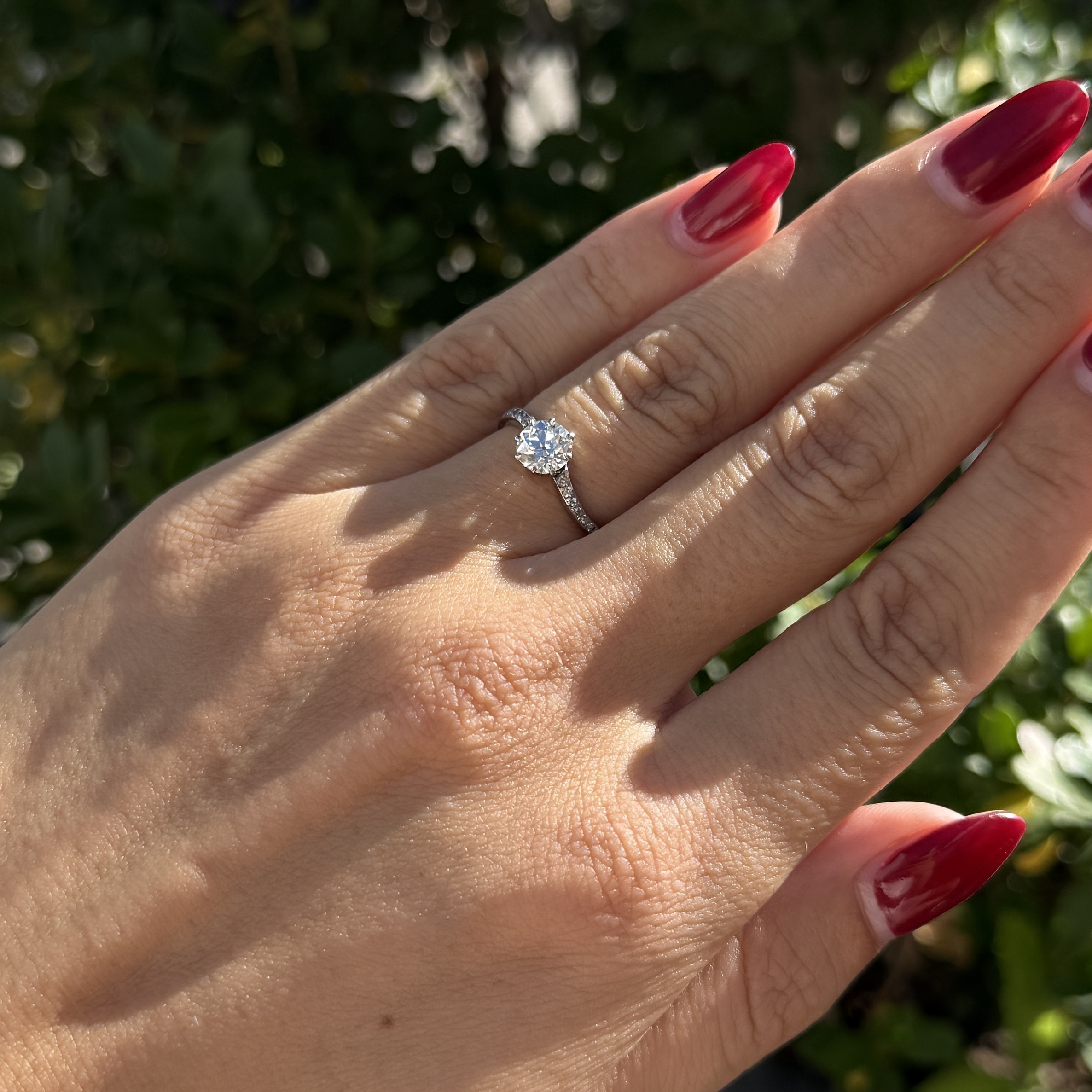 Ein Ring, der bereits ein Jahrhundert lang Liebesgeschichten begleitet hat – und nun darauf wartet, Ihre zu schreiben. Der seltene Altschliff-Diamant von 0,77 Karat strahlt mit der warmen Eleganz vergangener Zeiten, während das kostbare Platin ewige Verbundenheit verspricht. Spüren Sie, wie Geschichte und Zukunft in diesem außergewöhnlichen Solitär aus den goldenen Zwanzigern zu einem unvergesslichen Moment verschmelzen.