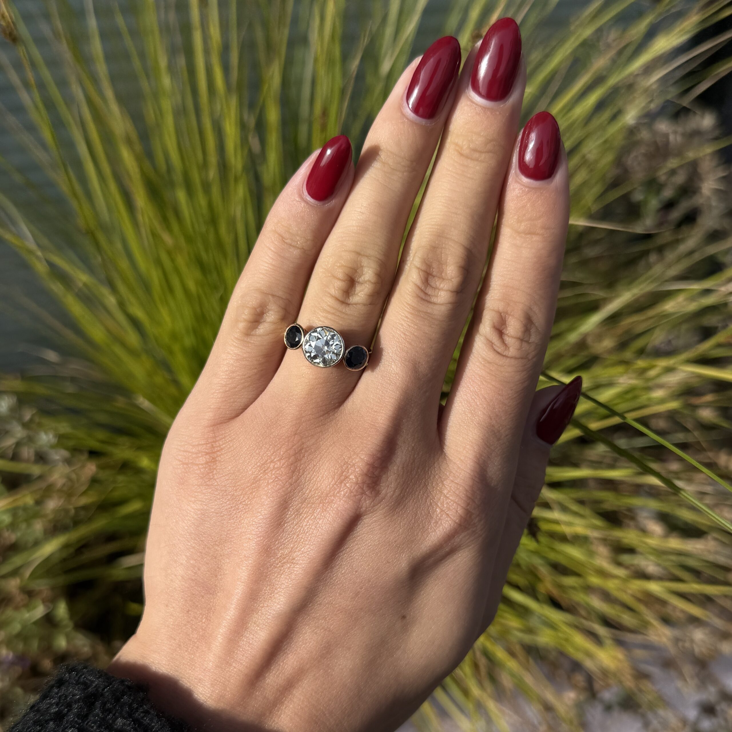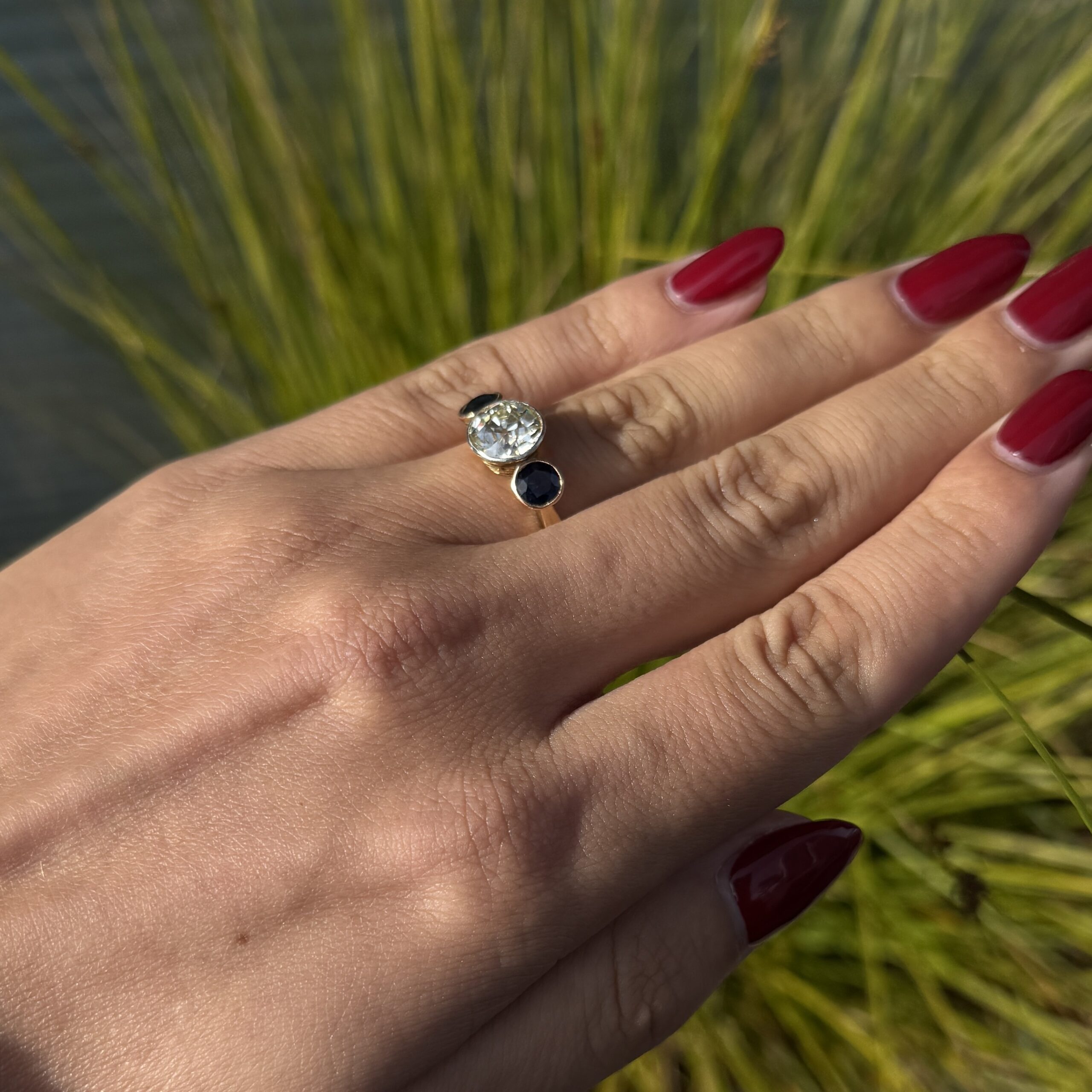 Wie ein Wunsch unter dem Sternenhimmel verwandelt der "Stern der Nacht" jeden Moment in pure Magie – sein 2,50 Karat Diamant im Altschliff funkelt zwischen blauen Saphiren wie ein Versprechen ewiger Liebe. Dieser antike Schatz aus 18 Karat Gold trägt die Seele vergangener Epochen in sich und wird zum stillen Begleiter Ihrer kostbarsten Augenblicke. Ein Ring, der nicht nur getragen, sondern gefühlt wird – wie das sanfte Flüstern einer Liebeserklärung an Ihrem Finger.